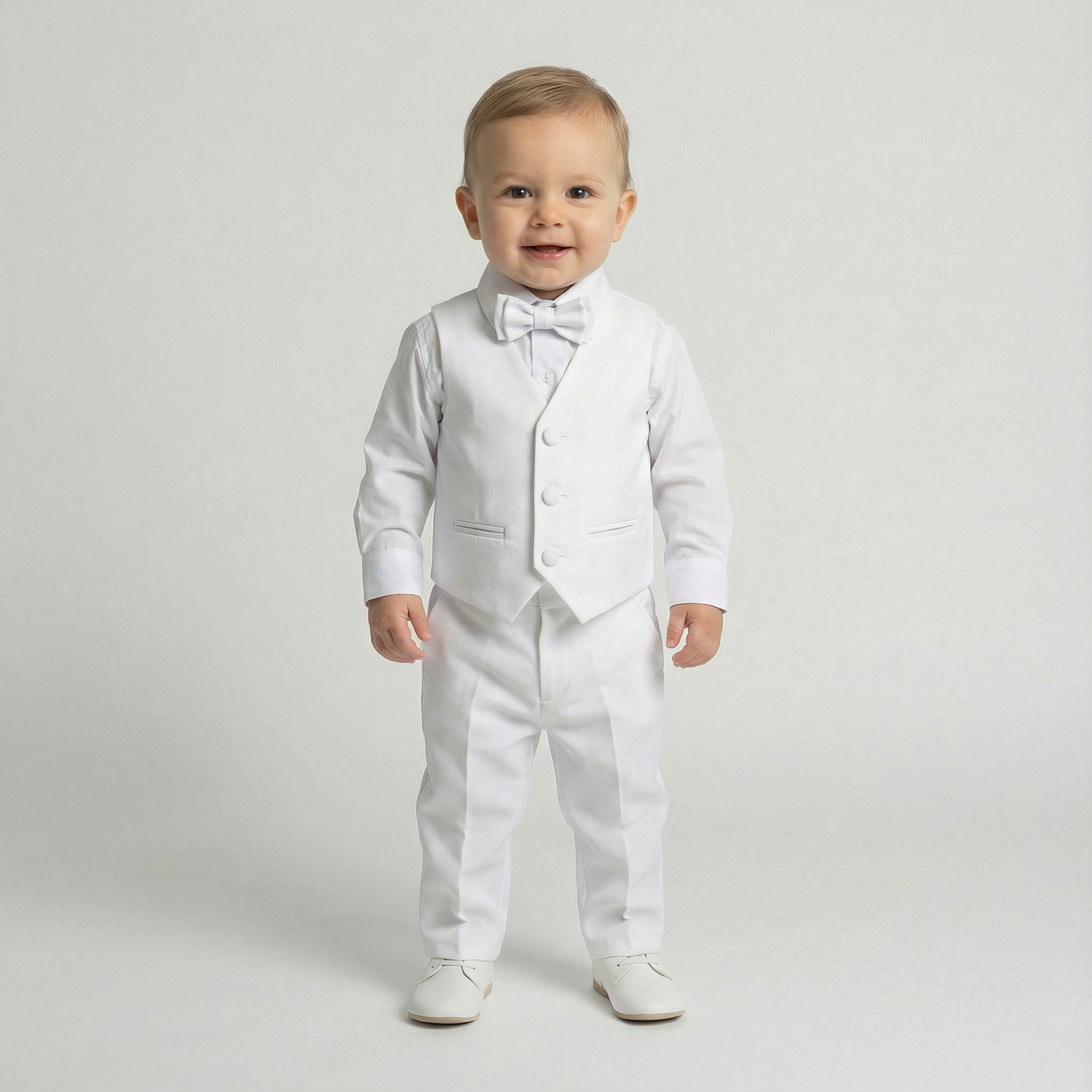 White toddler loafer with beige sole, textured strap detail, and small metallic logo accent, designed for comfort and casual dress wear.