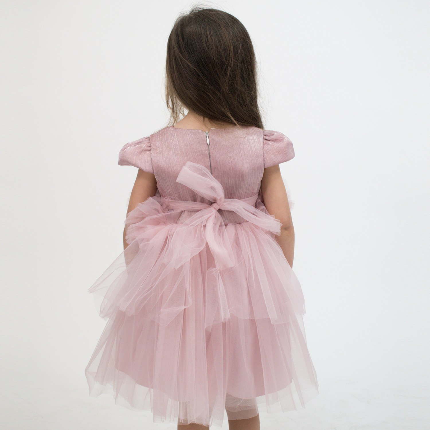 Superbe robe de bébé avec le bas en tulle superposée, des mancherons et des fleurs bouffantes à la taille. Sa doublure en coton la rendra très confortable pour votre petite fille. Parfait pour l'utiliser comme robe de baptême! Une création exclusive de JuniorKids!