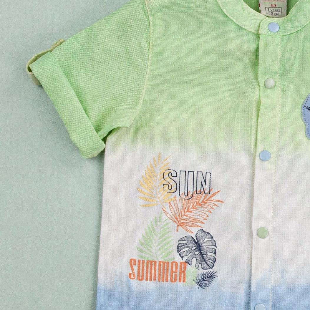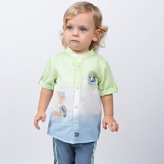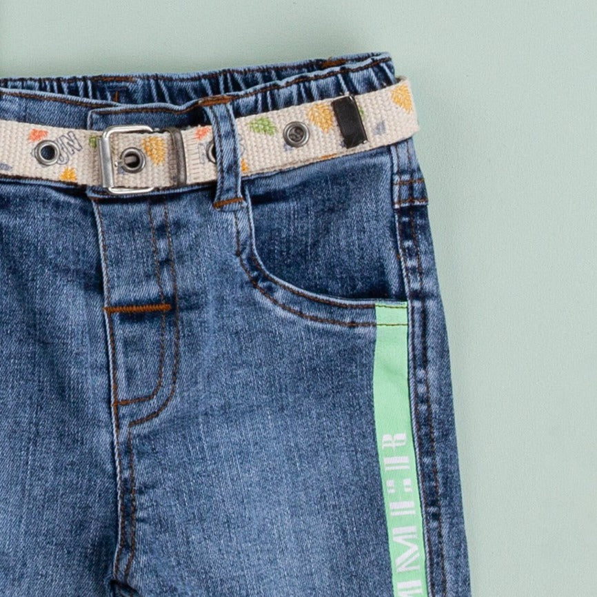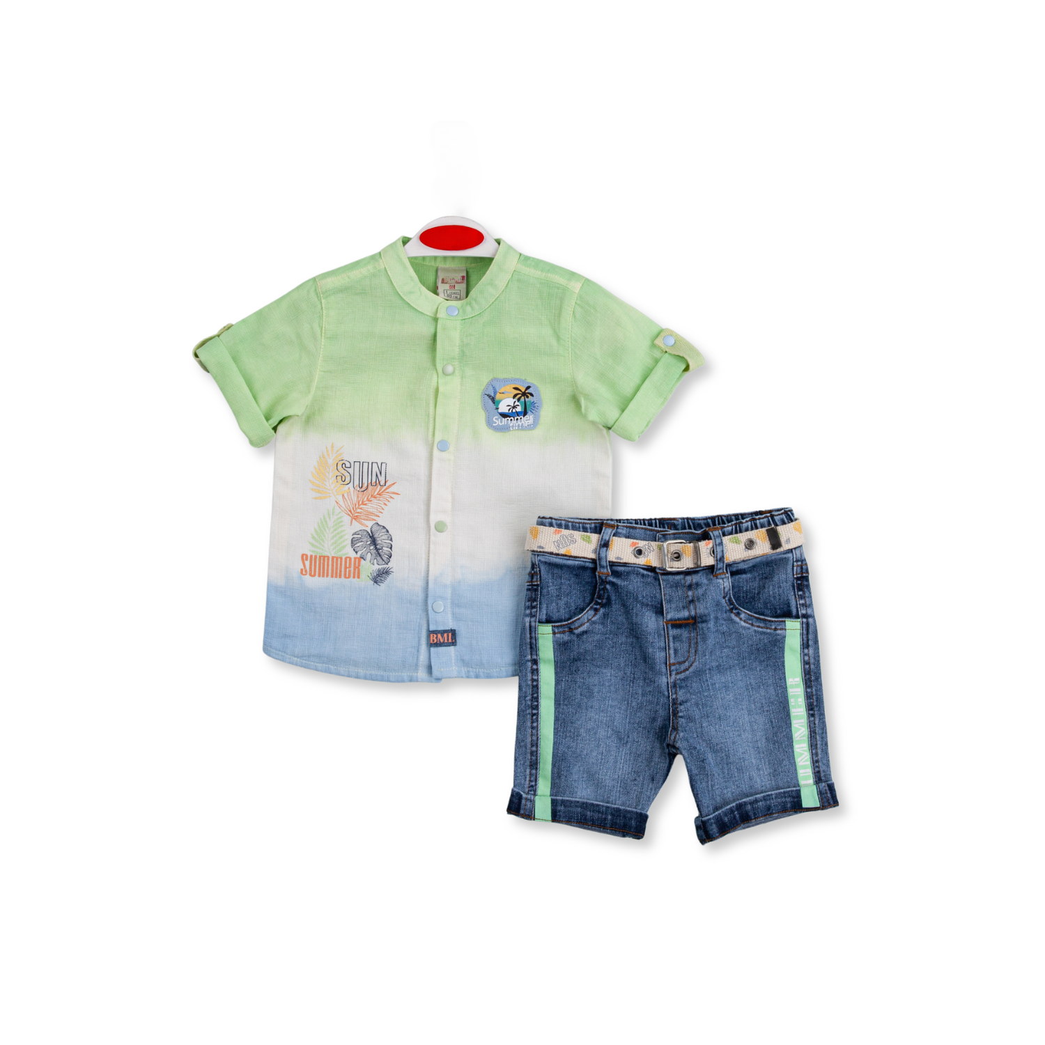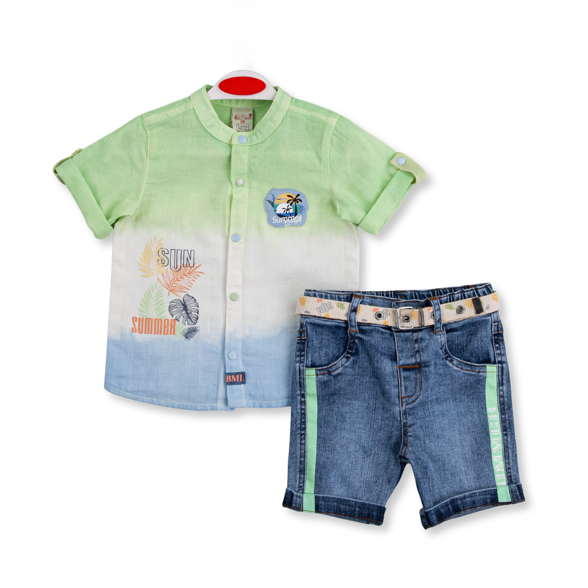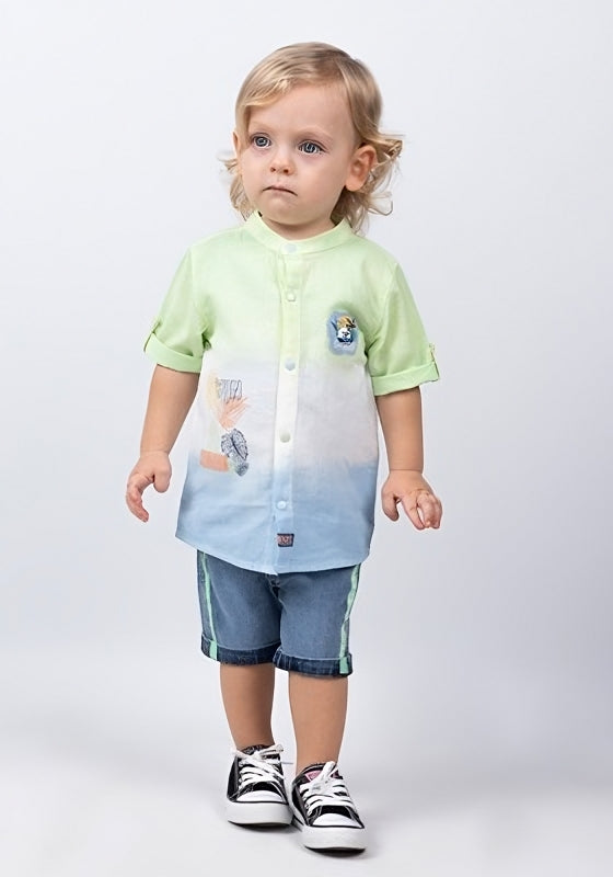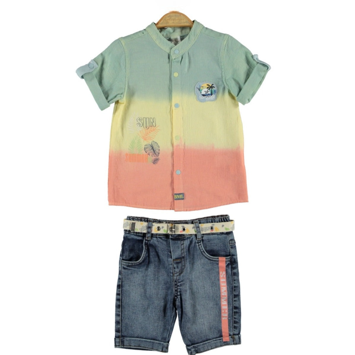 Un nouveau look pour votre petit homme composé d'une chemise imprimée en coton doux (100% coton), d'un short en denim ajusté et taille ajustable (100% coton) et d'une ceinture.