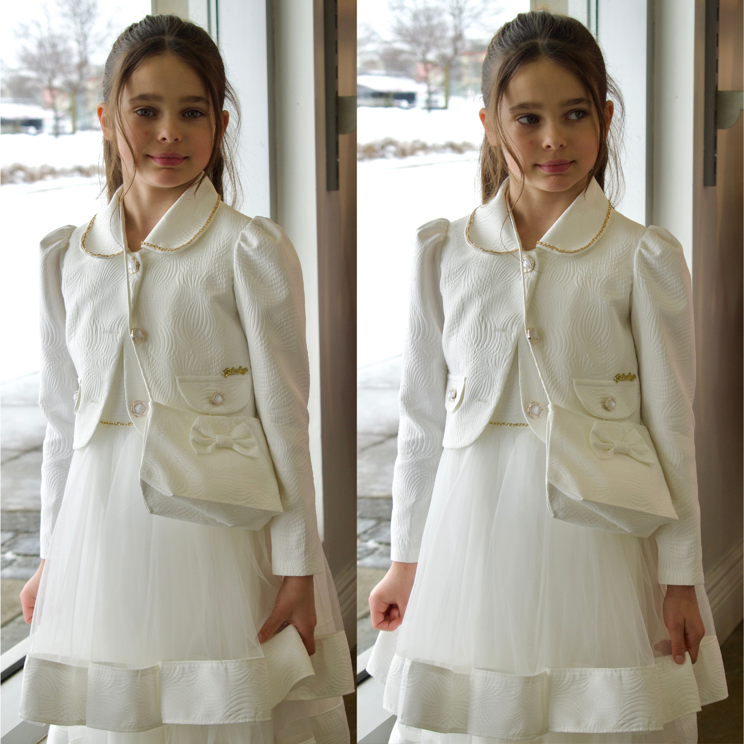 Revêtez votre petite fille avec style grâce à cet adorable ensemble pour filles ! Cette robe courte sans manches est confectionnée avec une doublure en coton pour un ajustement confortable et est accompagnée d'un blazer assorti et d'un sac à main, créant la tenue parfaite pour toute occasion spéciale. Le design charmant et les accessoires coordonnés en font un choix délicieux pour votre princesse à la mode. Assistez à toute occasion spéciale avec style, grâce à JuniorKids !