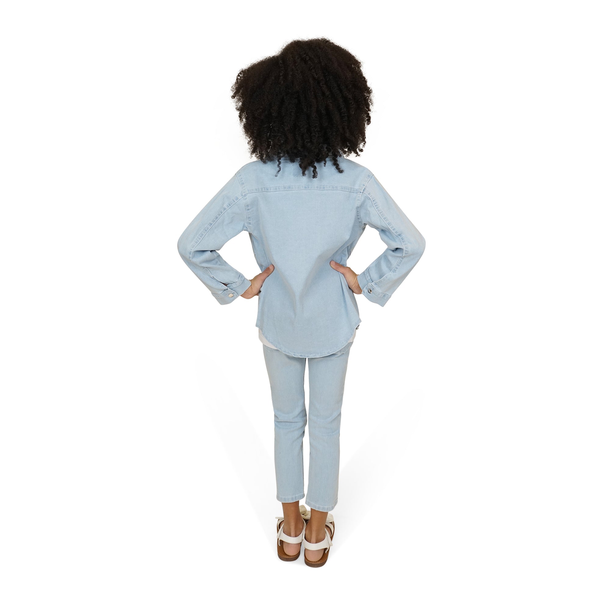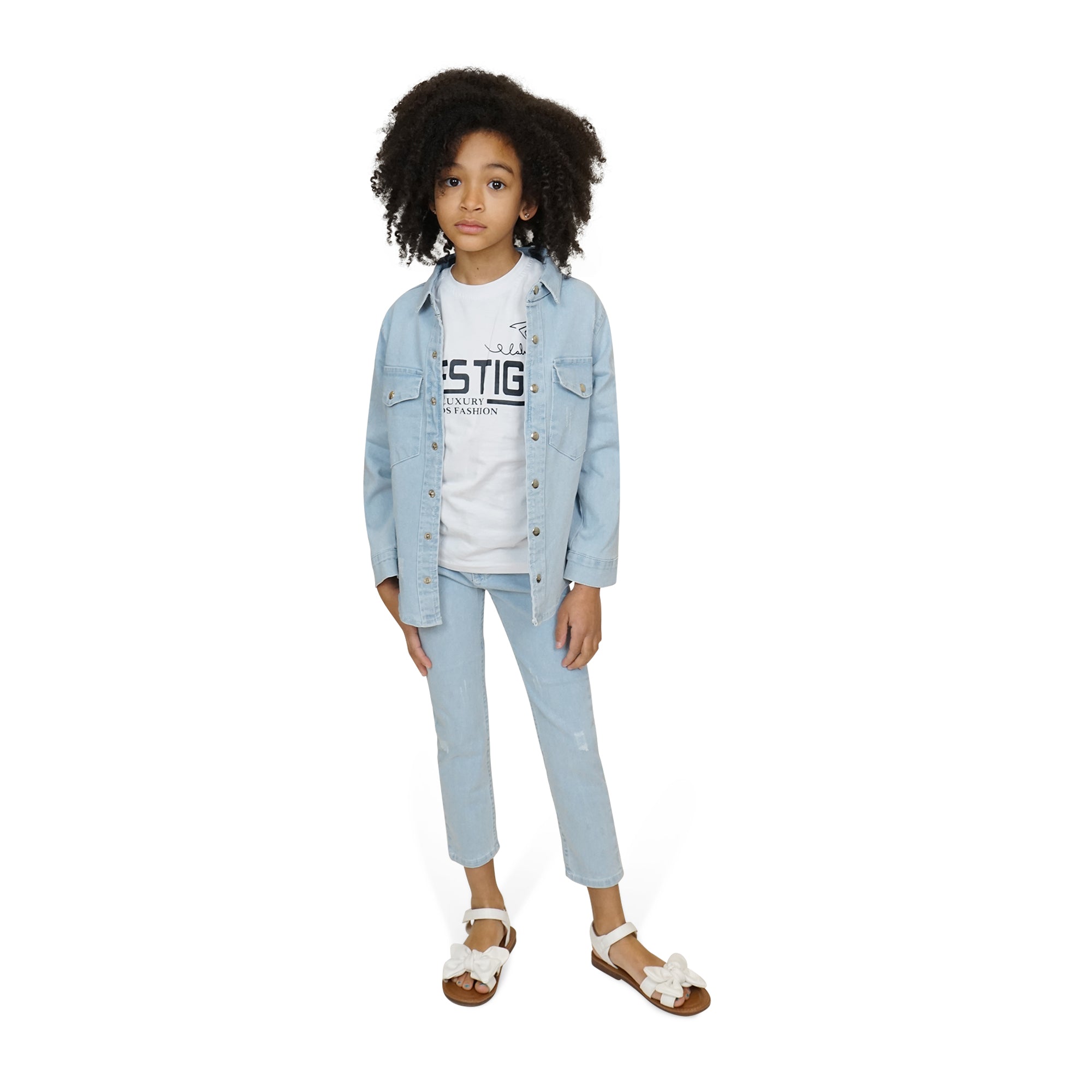 Ensemble en jean simple et tendance pour votre petite chérie comprenant une veste en jean tricotée, un t-shirt imprimé et un jean skinny à taille élastique (100 % coton).