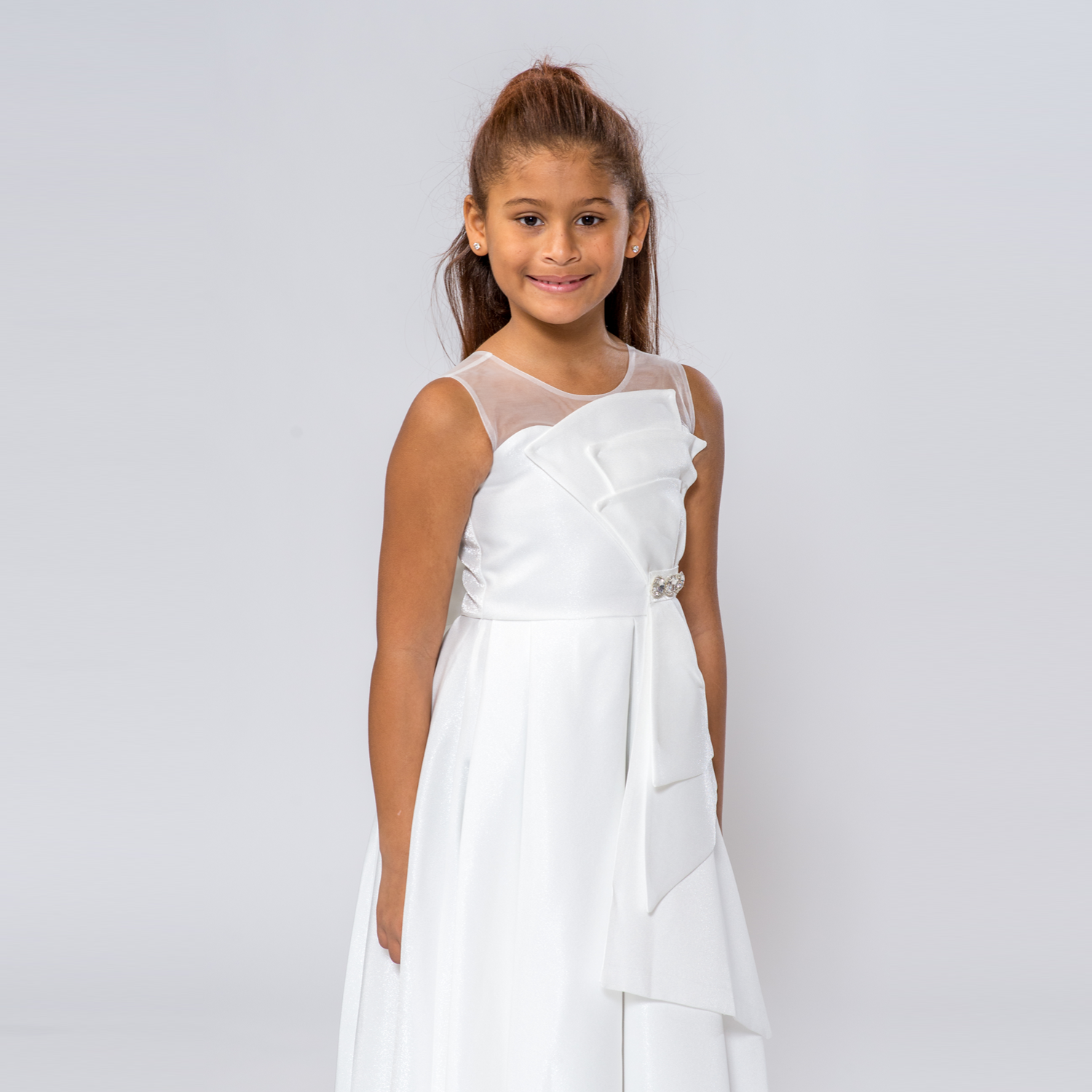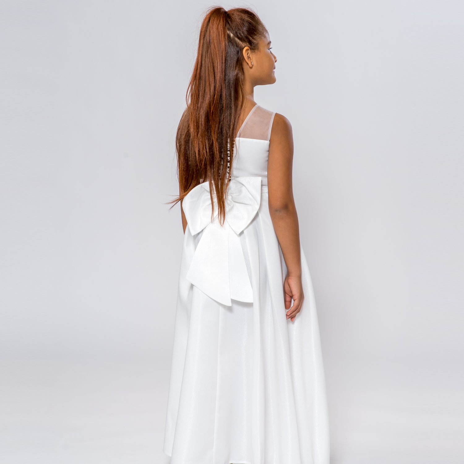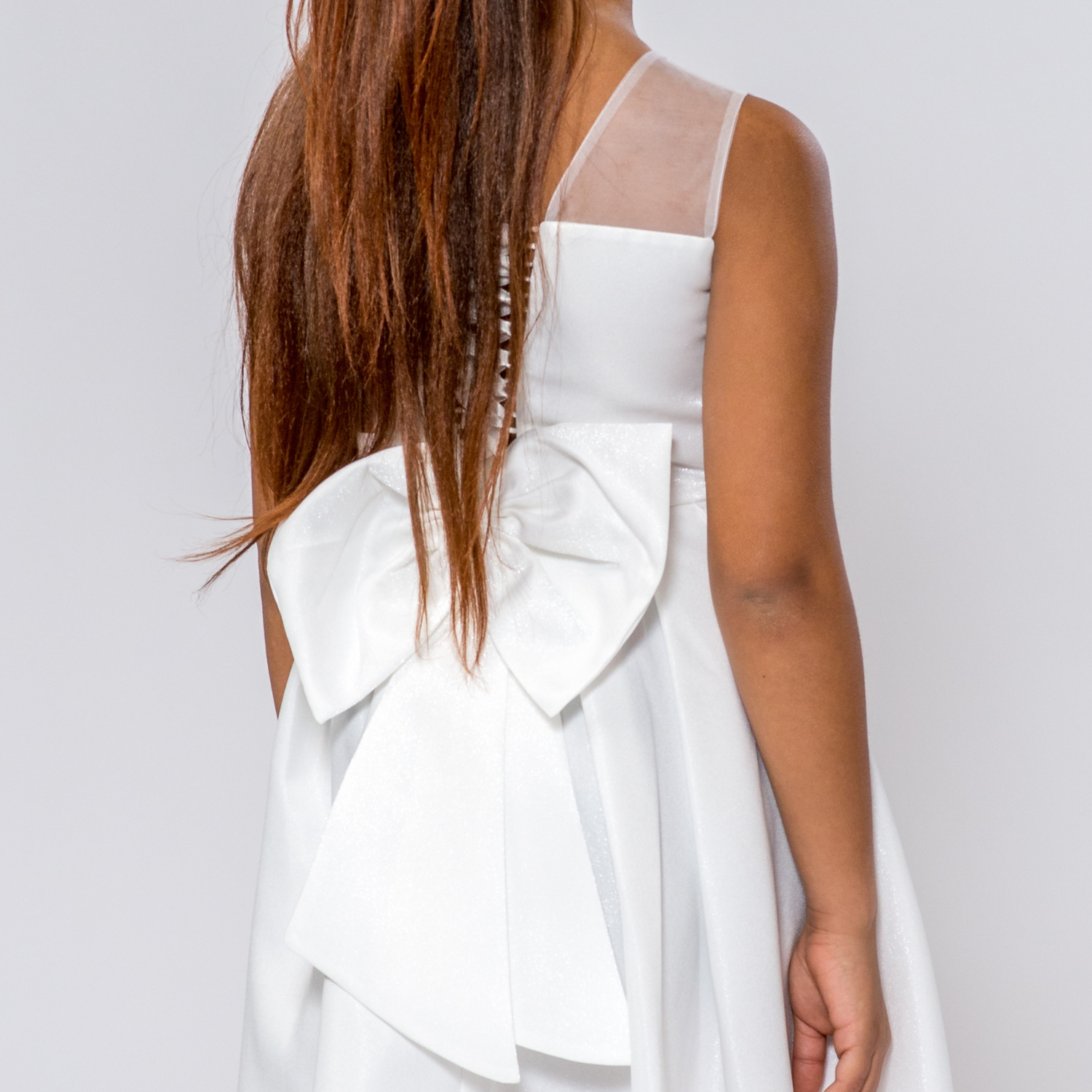 Inspirez la crainte et l’admiration avec cette création exclusive JuniorKids - une robe A-Line en satin de cristal à couper le souffle ornée d’un grand arc digne des célébrités et d’ornements en strass étincelants. Votre petite princesse se sentira comme un roi dans cette robe unique, avec un ajustement parfait grâce au concept de dos corset. Faites-la se sentir comme une star avec cette magnifique pièce!