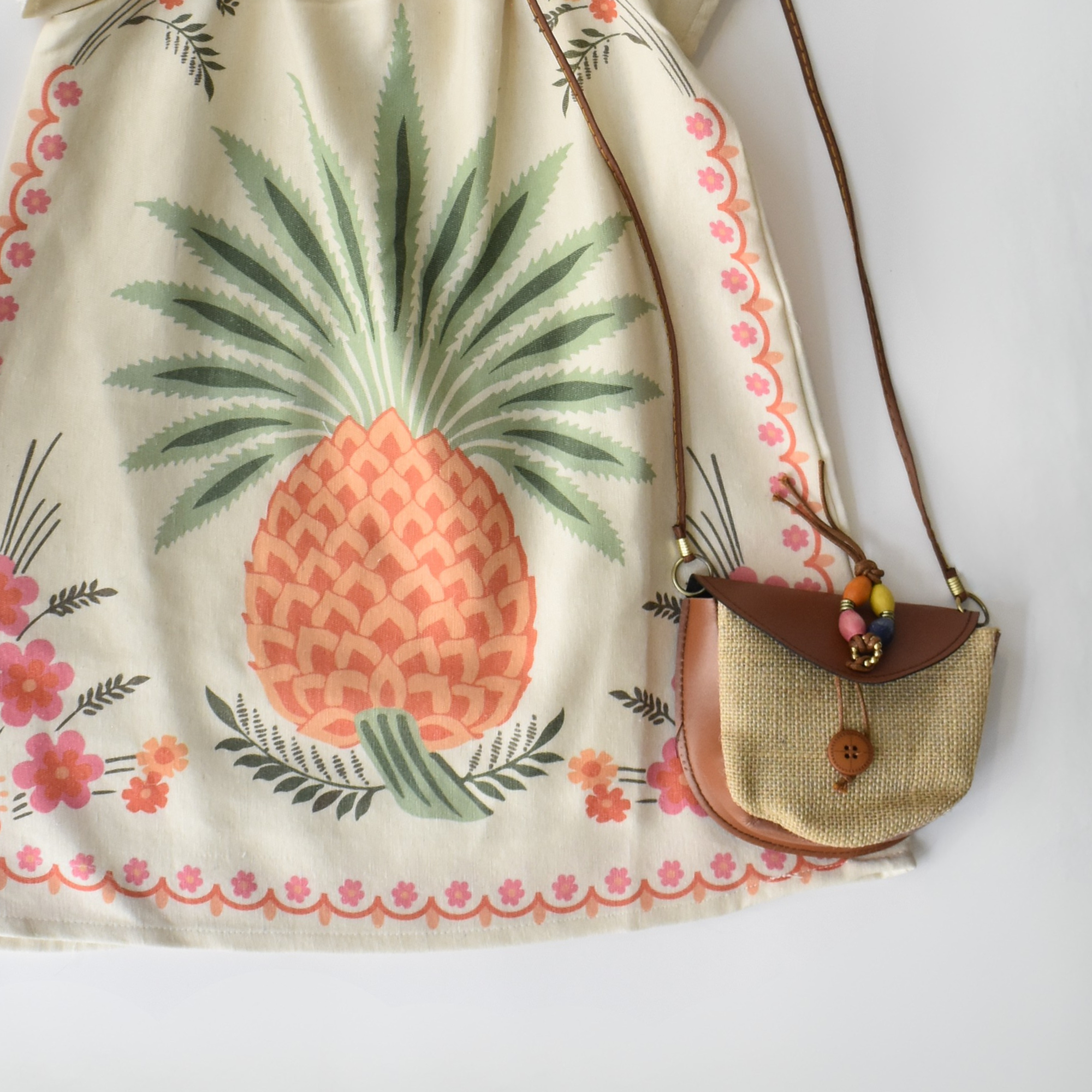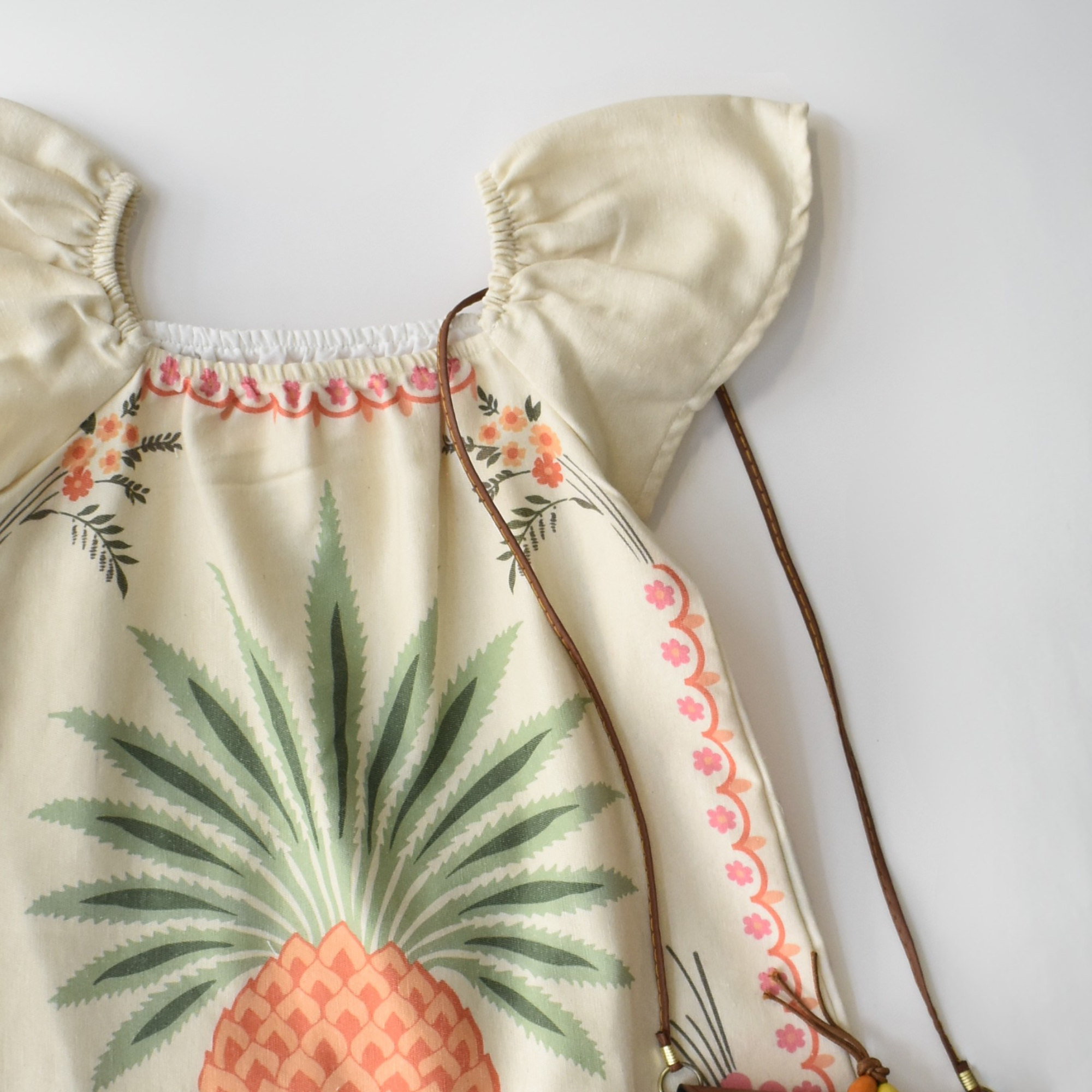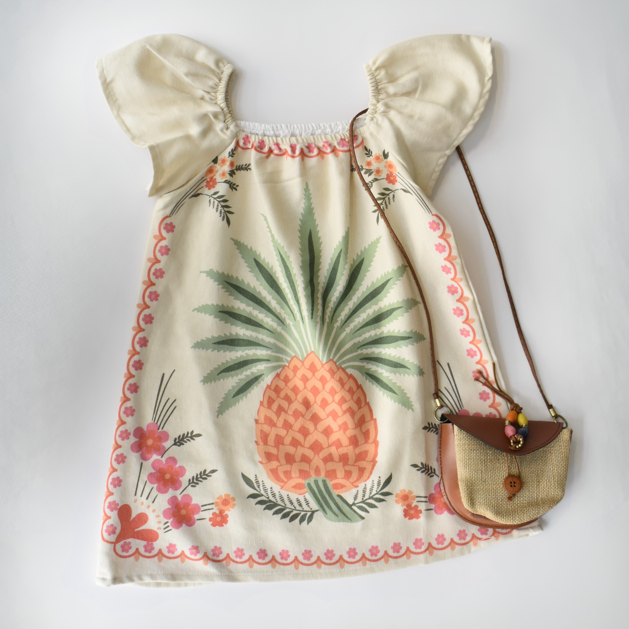 Cette robe en coton légère et aérée est idéale pour l’été ! Disponible en deux superbes versions : un motif tropical d’ananas et un élégant imprimé floral. Ses manches bouffantes et sa coupe fluide offrent à la fois confort et style, parfaite pour les sorties décontractées, les vacances ou les occasions festives.