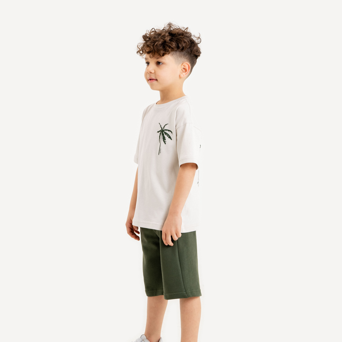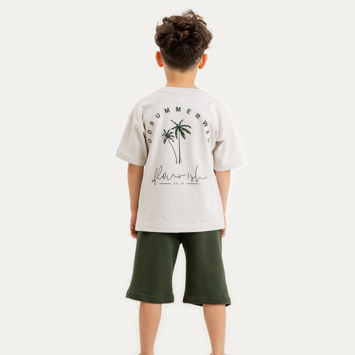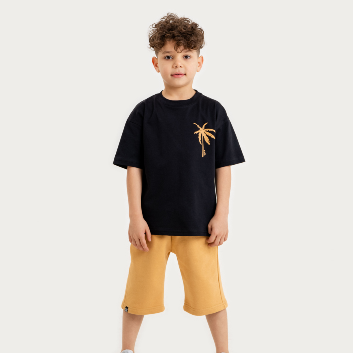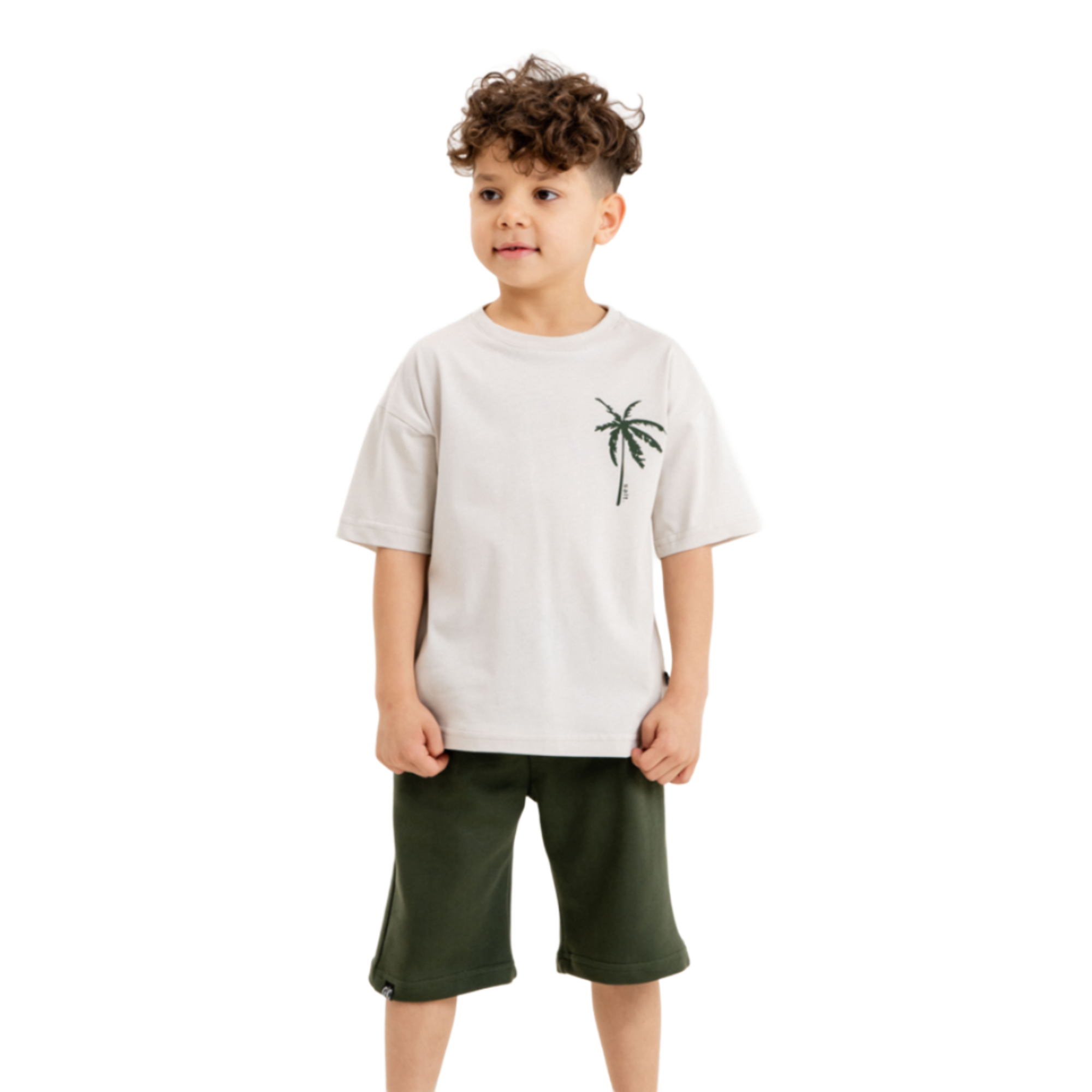 Préparez-vous pour les aventures estivales avec notre ensemble pour garçons ! Cet ensemble comprend un t-shirt en coton confortable avec un design élégant d'arbres palmiers, accompagné d'un short assorti en coton. Parfait pour des journées remplies de plaisir sous le soleil !