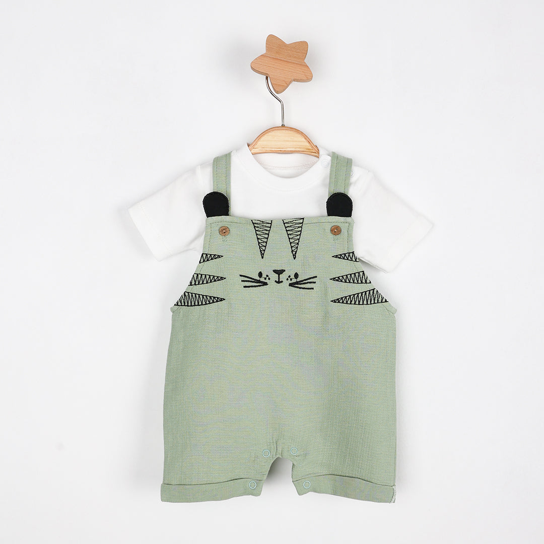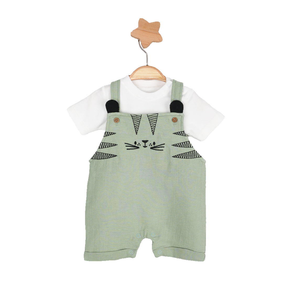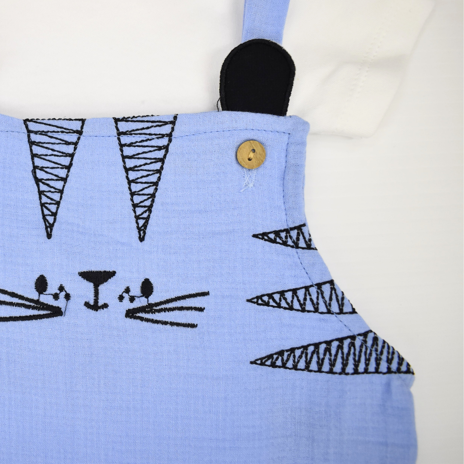 Découvrez notre adorable salopette courte pour bébé avec une touche ludique ! Regardez votre petit rebondir de bonheur dans ce jumper confortable et mignon orné d'un charmant motif de chat. Fabriqué avec un tissu doux et respirant, il garantit une expérience douillette pendant le temps de jeu de votre bébé. Les bretelles ajustables et l'ajustement sécurisé en font le choix idéal pour les bébés actifs explorant le monde.