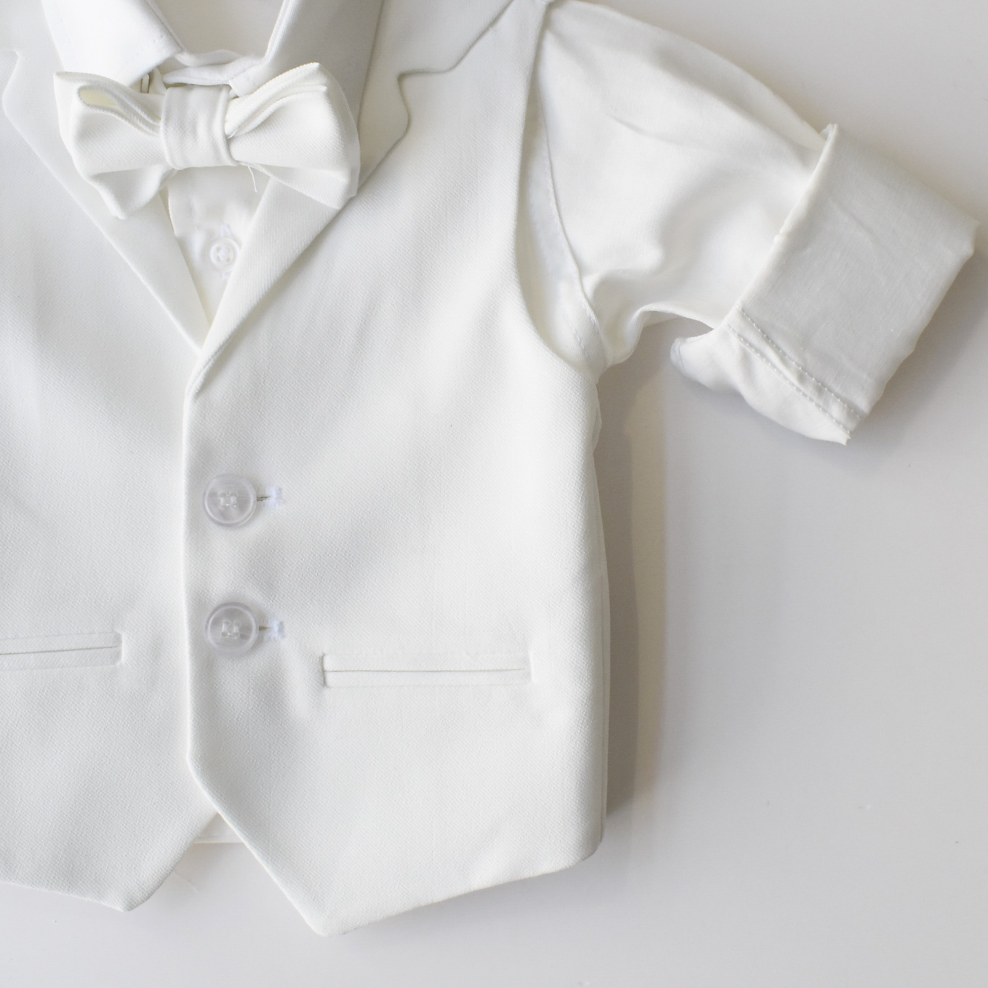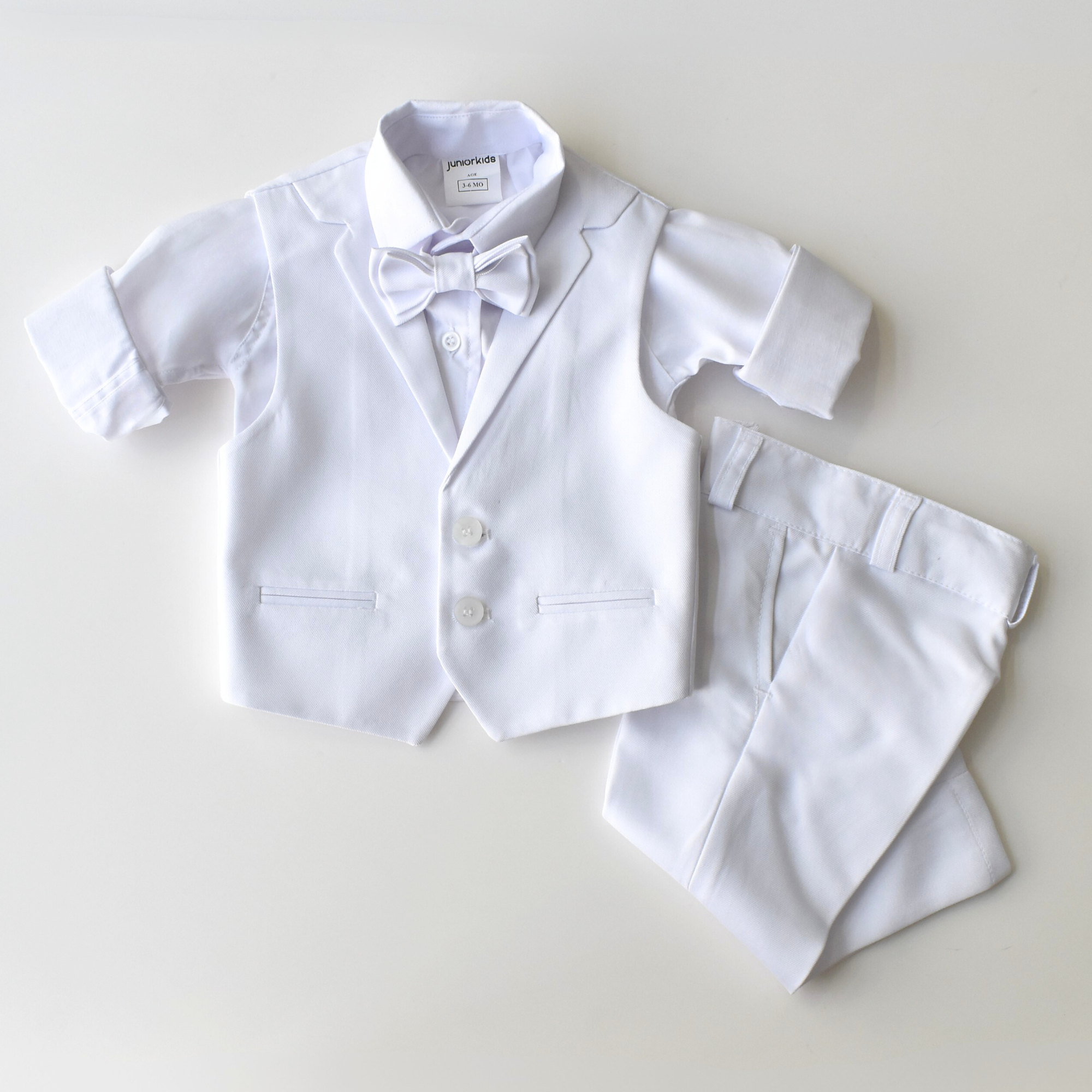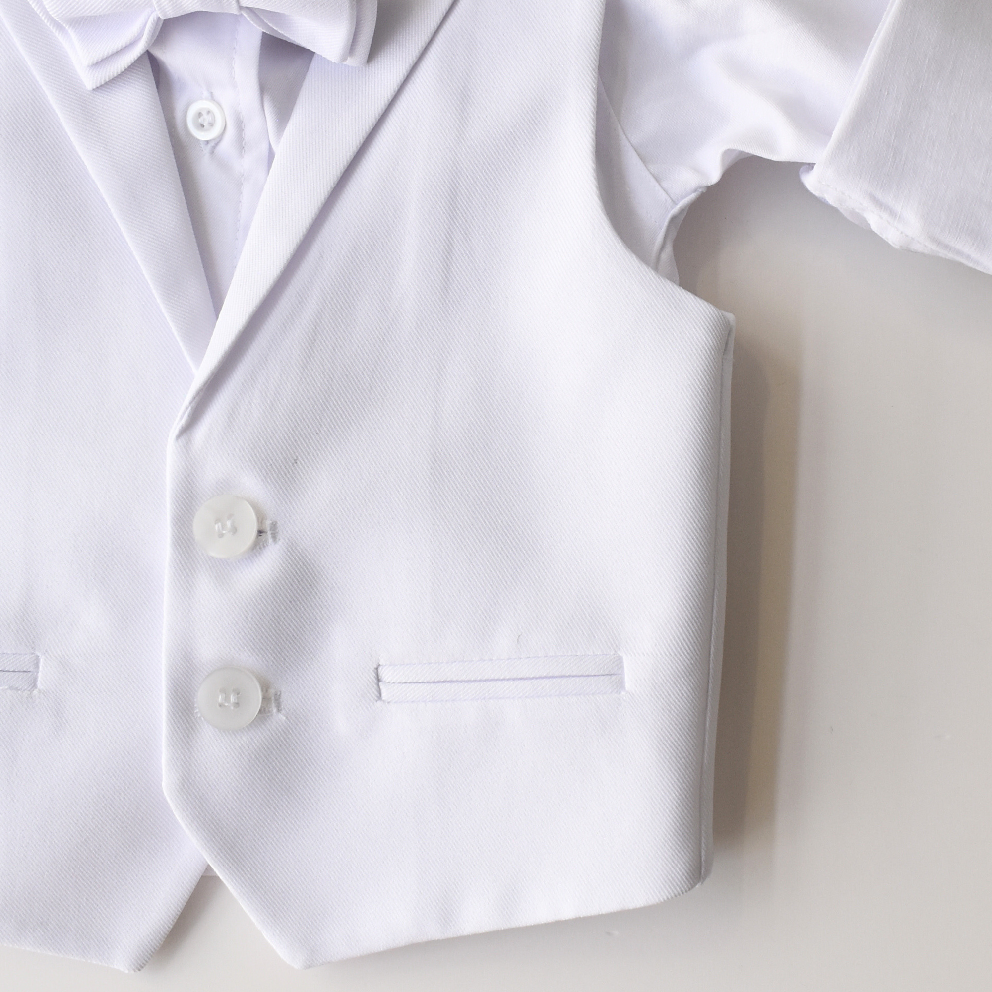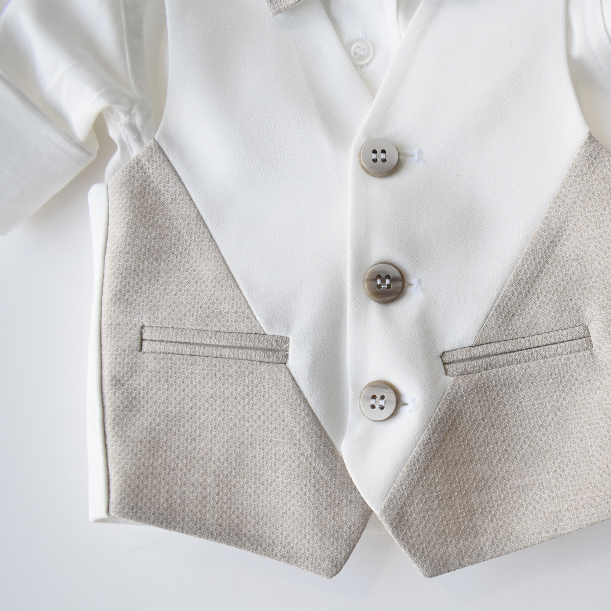 Ensemble de gilet élégant, y comprenant un gilet sans manches, une chemise en coton doux, un pantalon de coton à taille ajustable, slim fit et un noeud. Une vraie superstar JuniorKids !
