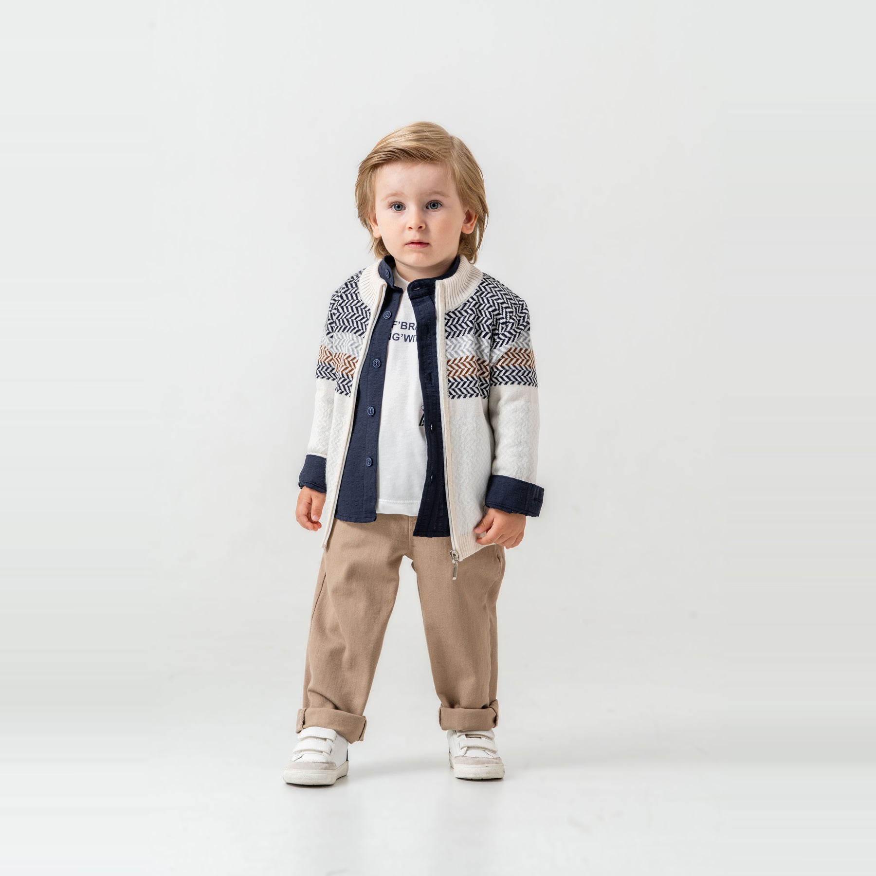 Renouvelez la garde-robe de votre enfant avec cet ensemble exclusif de 4 pièces comprenant une chemise en coton à carreaux, un t-shirt imprimé, un cardigan et un jean. Les tissus soigneusement sélectionnés et les coupes ajustées offrent un confort et un style optimaux.