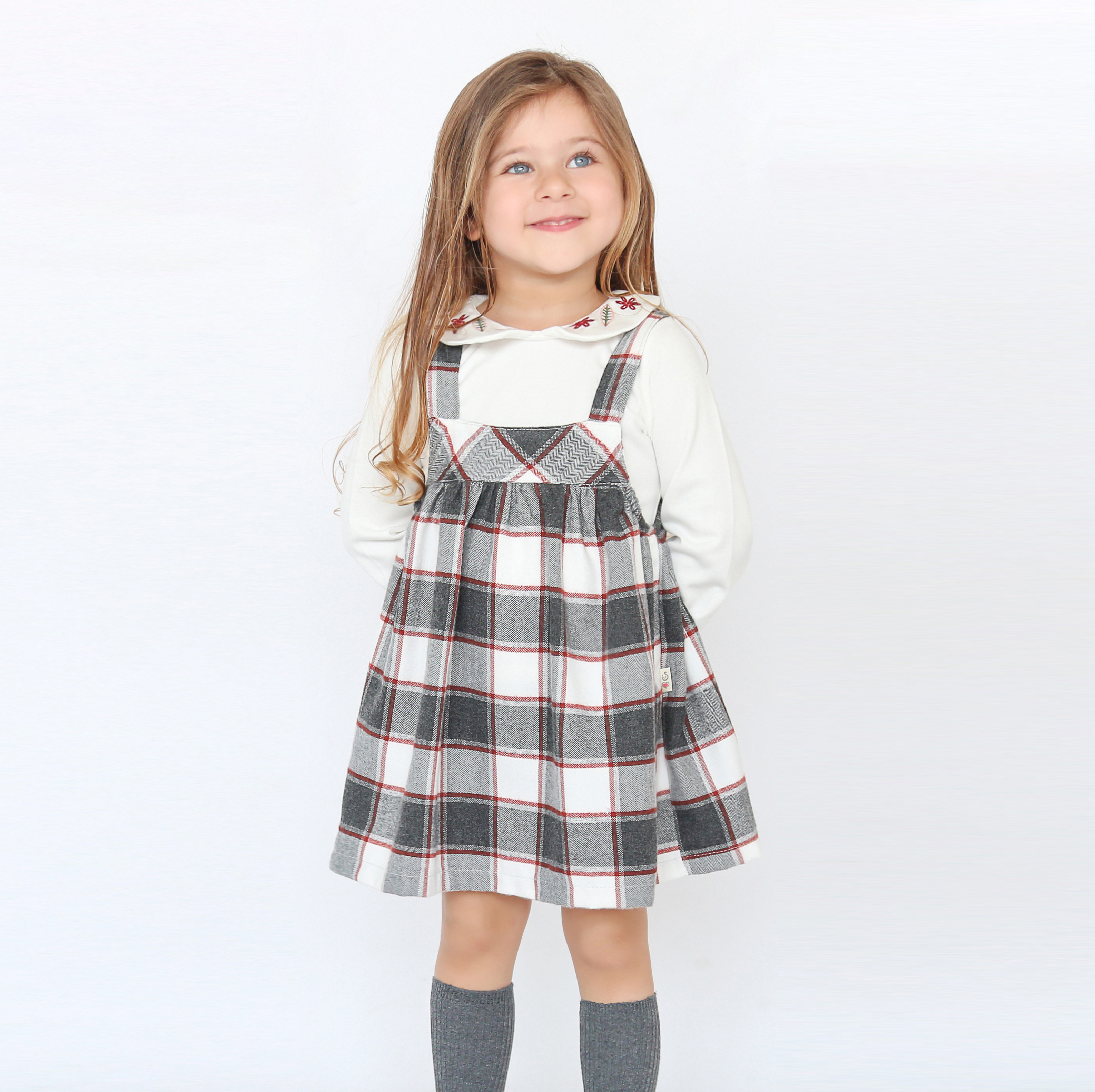 Superbe robe très originale en coton à carreaux (100% coton) pour votre petite chérie avec un haut col anglais en coton tout doux pour tous vos événements des fêtes !