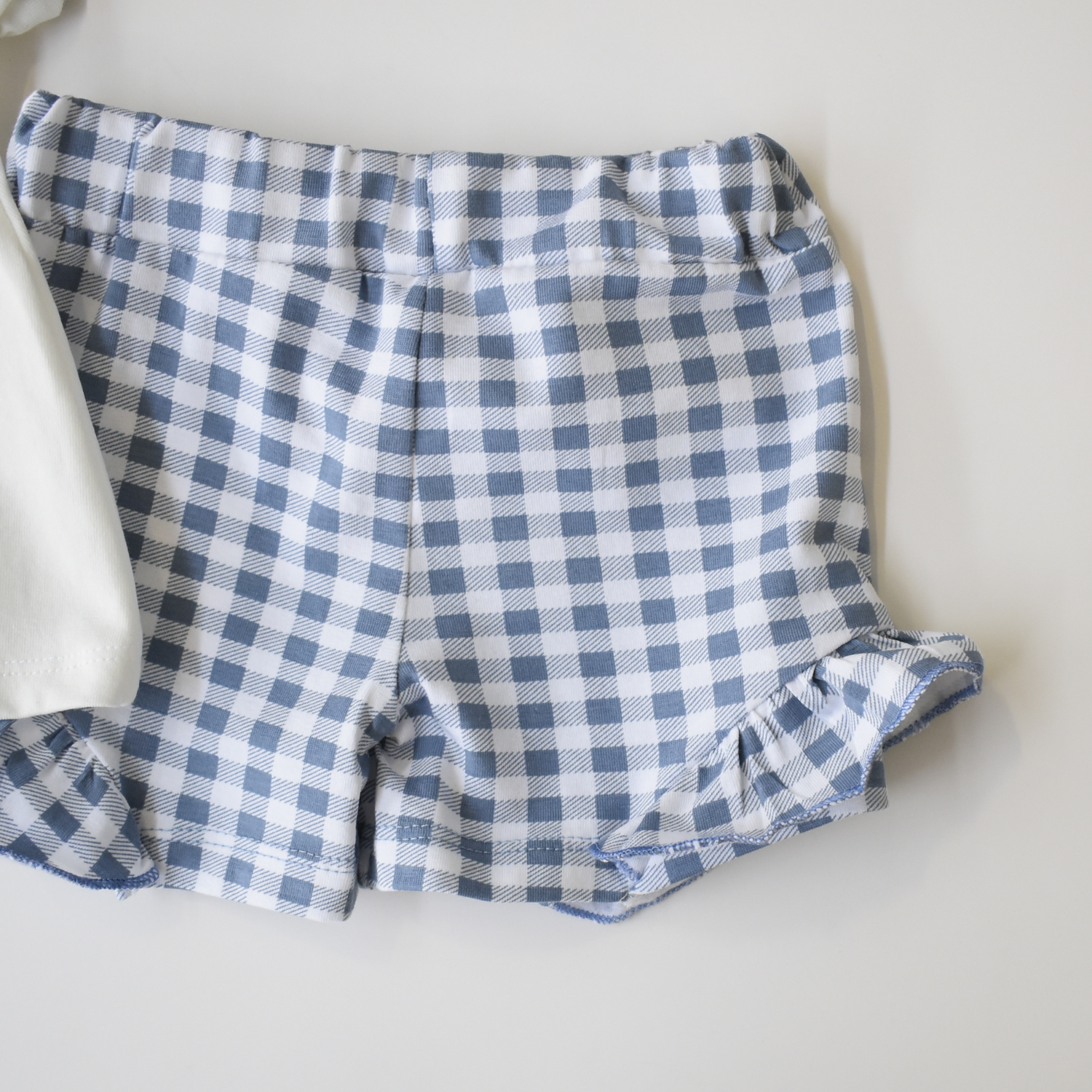 Offrez à votre petite modeuse confort et style avec cet ensemble adorable ! Confectionné en 100 % coton doux et respirant, cet ensemble comprend un T-shirt simple mais élégant et un short assorti avec un motif carré. Parfait pour les sorties décontractées, les moments de jeu ou pour se détendre, cet ensemble allie facilité et style pour les filles en mouvement.