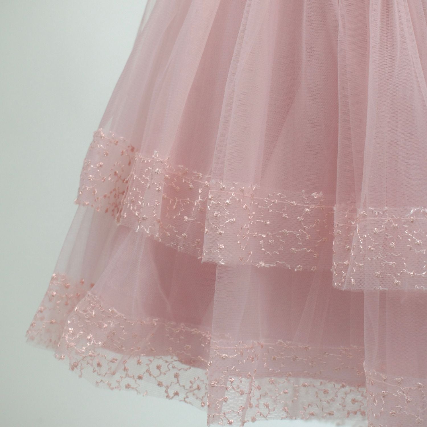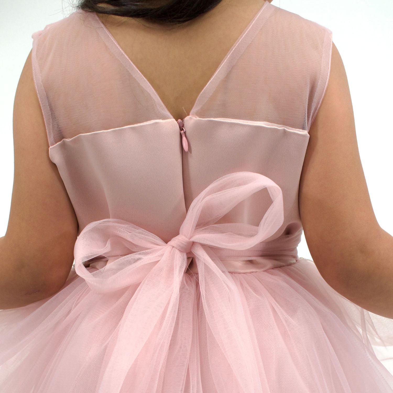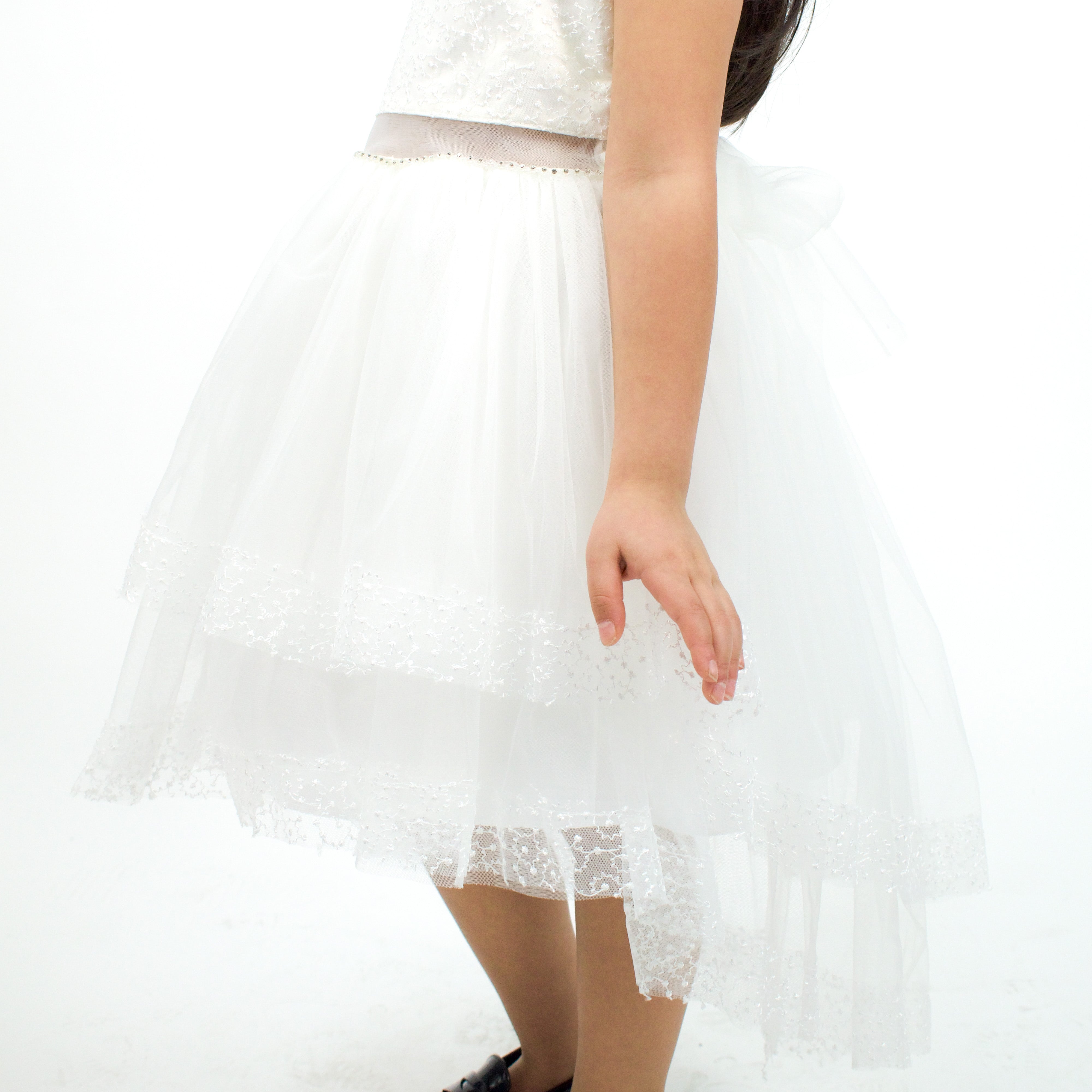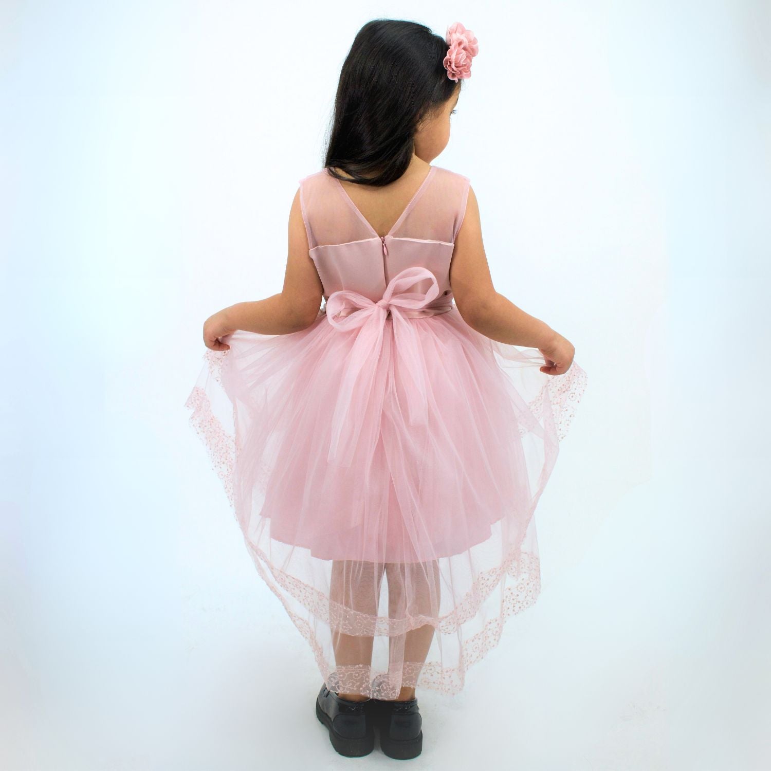 L'élégance à son paroxysme! Belle robe plissée en tulle brillant avec bordure en strass à la taille et bas à volants. Une exclusivité JuniorKids
