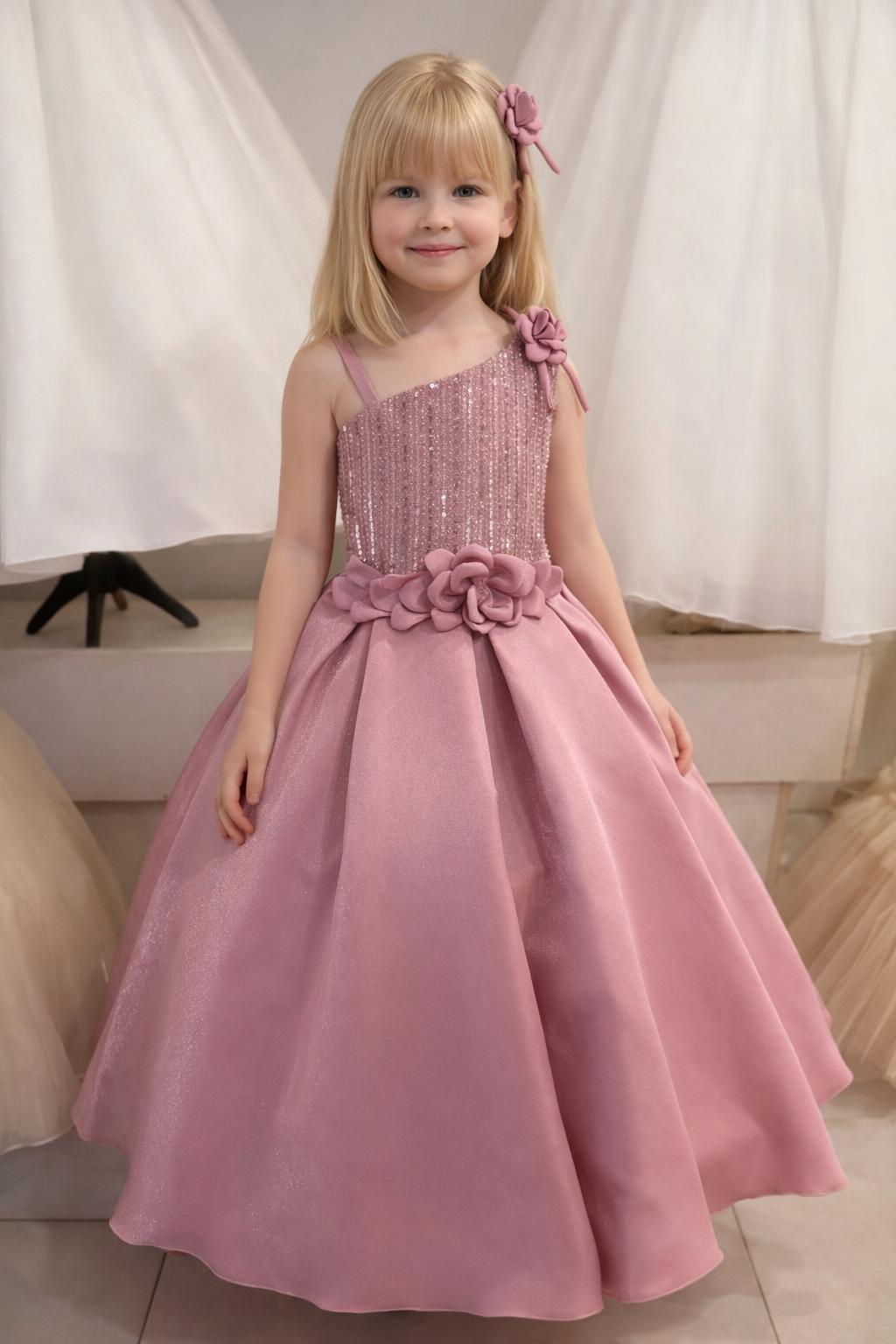 Délicate, élégante et raffinée, la Mia Fleur Princess Dress est conçue pour rendre chaque occasion spéciale encore plus mémorable. Cette magnifique robe rose poudré présente un corsage texturé légèrement scintillant et une jupe longue et ample qui crée une silhouette digne d’une véritable princesse.