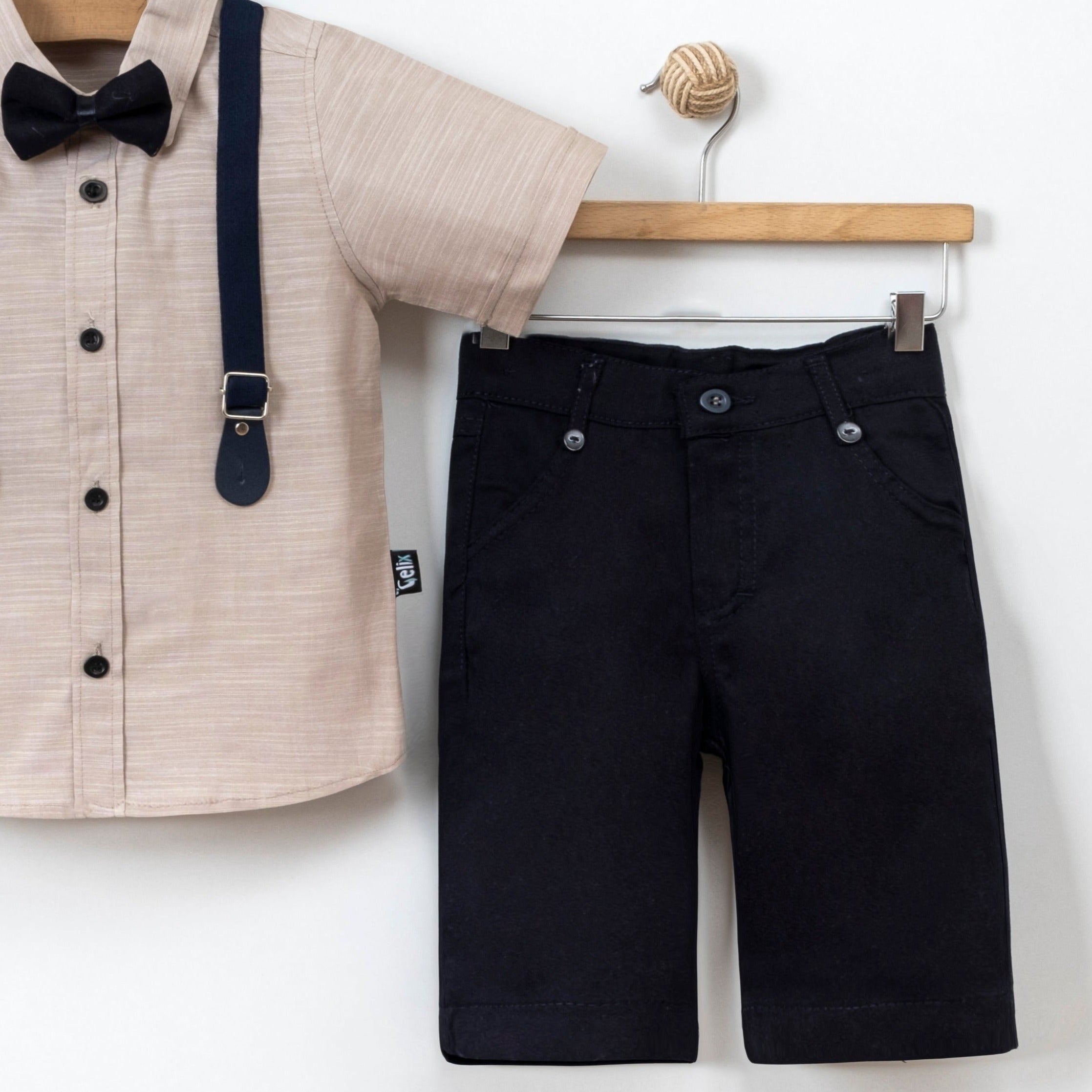 Découvrez notre style contemporain, alliant coton et chic intemporel. Notre chemise en coton doux et épuré met en valeur la silhouette. Des bretelles discrètes ajoutent une touche d'originalité, un short en coton offre un confort optimal et un nœud papillon assorti.