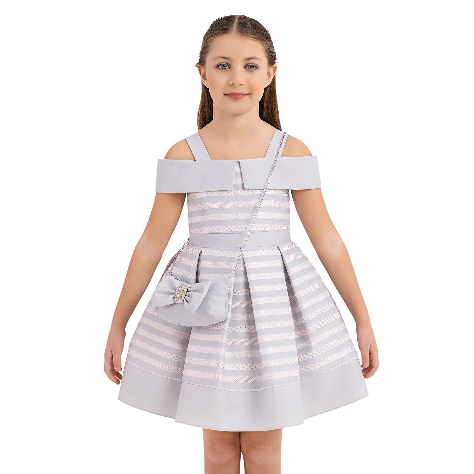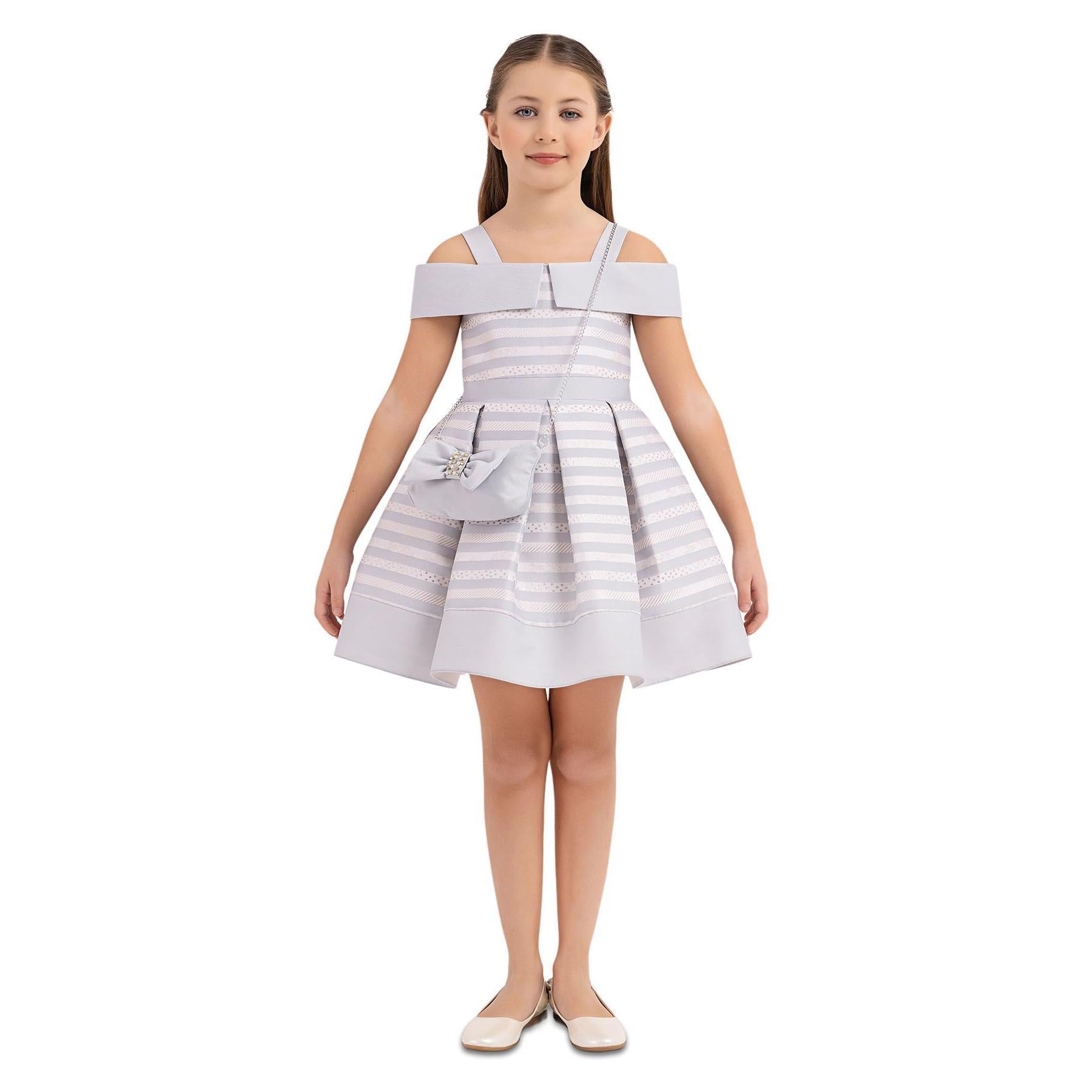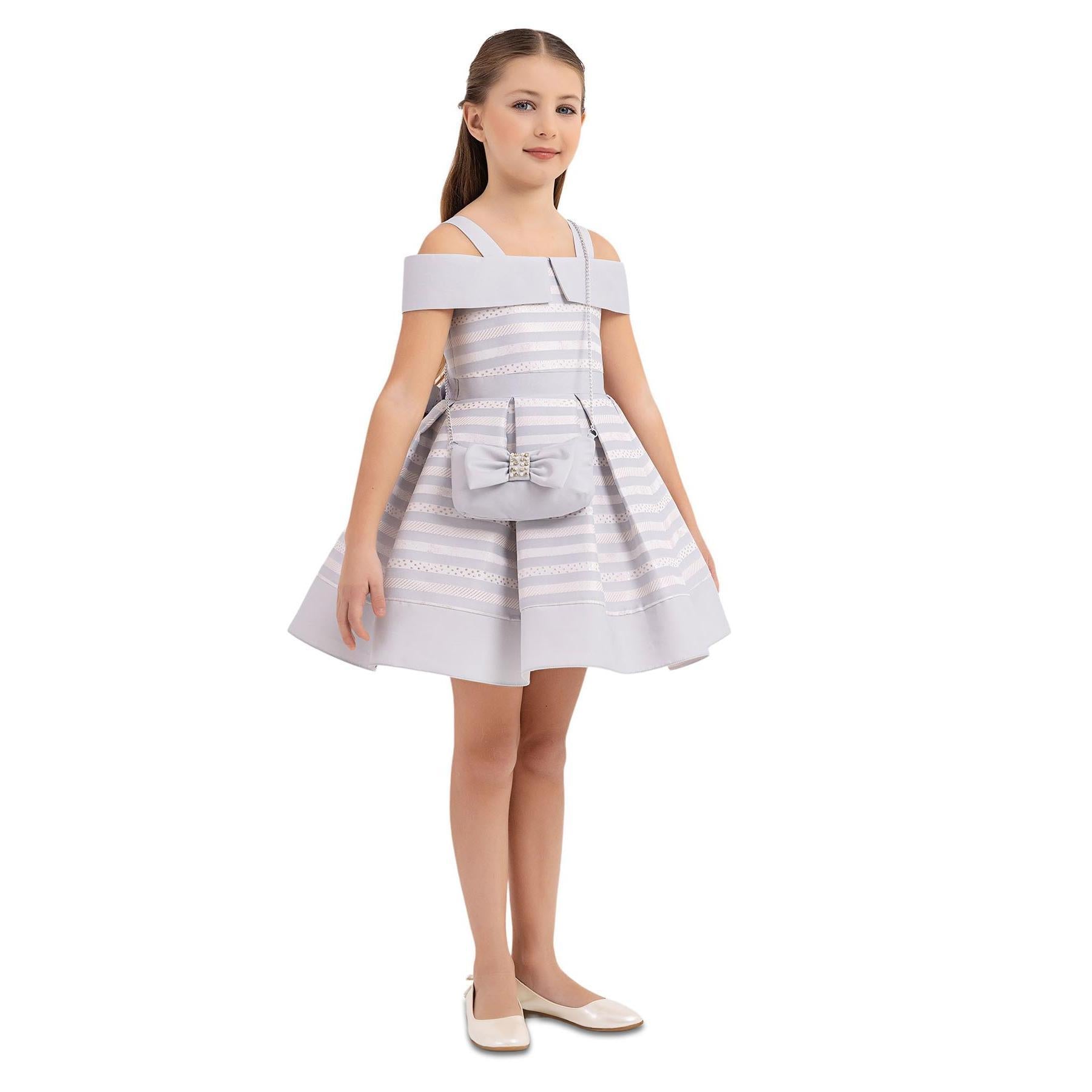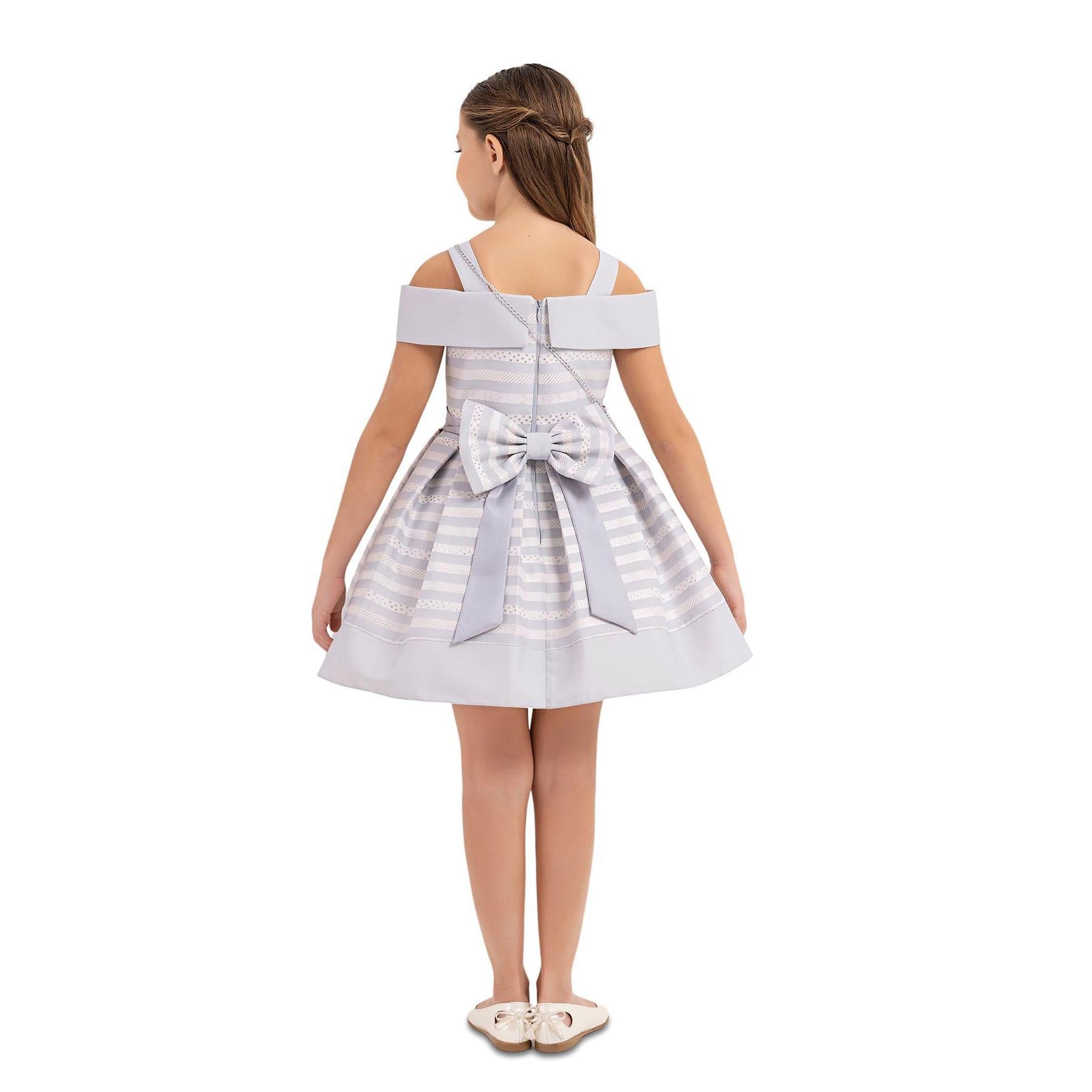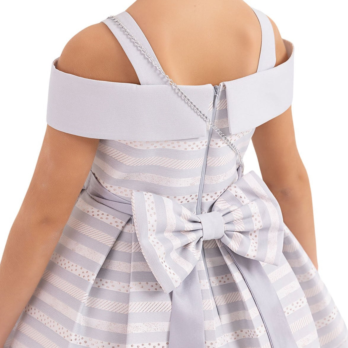 Élégante robe asymétrique à épaules dénudées avec des paillettes douces, un grand noeud et un bandeau assorti.