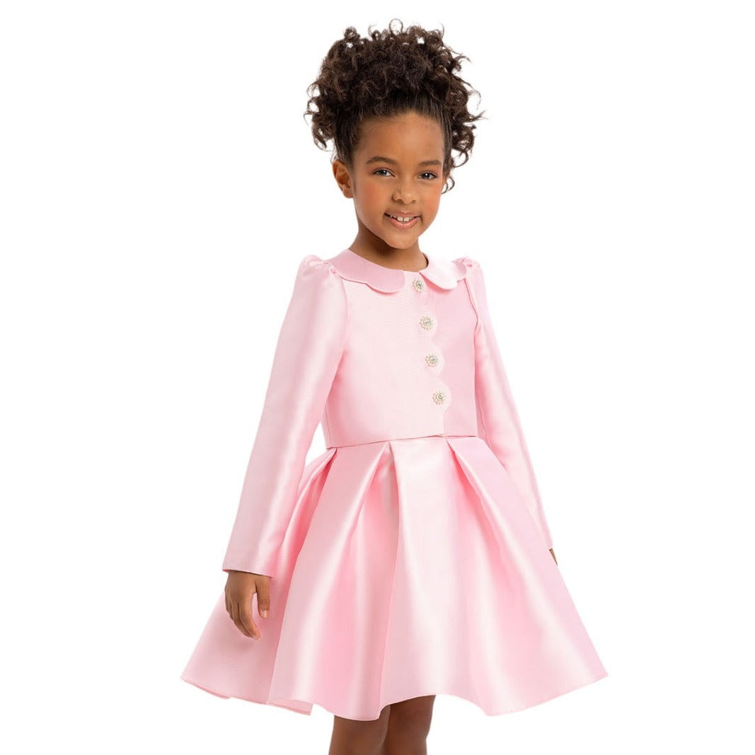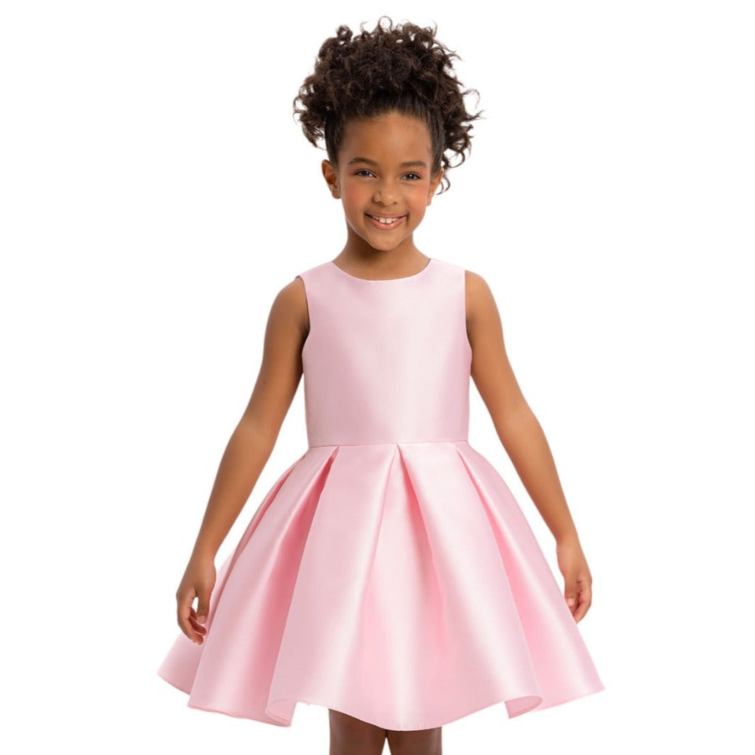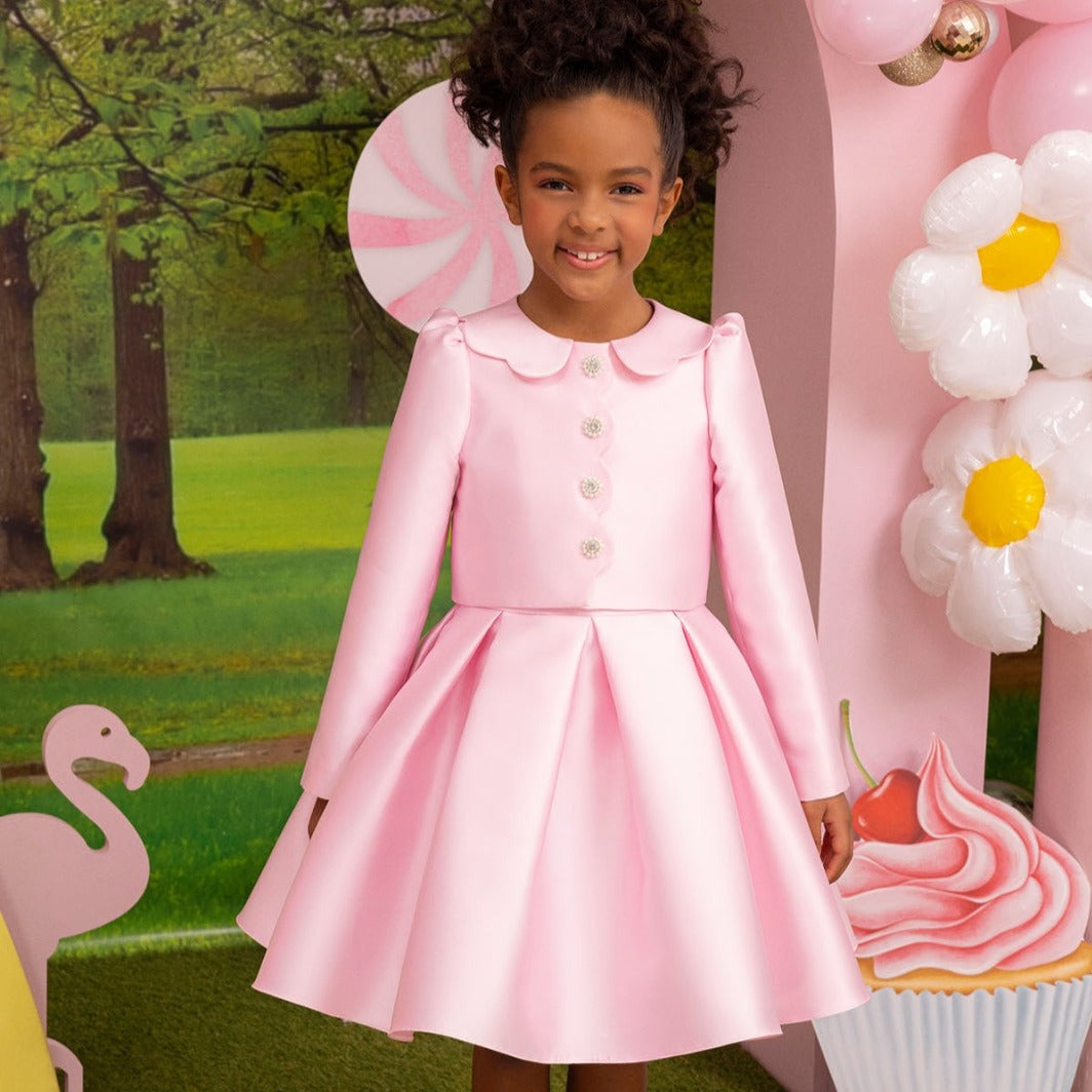 Rehaussez le style de votre petite princesse avec notre charmante robe pour filles ! Cette robe courte à ligne A est confectionnée dans un satin luxueux, sans manches pour plus de confort, et est accompagnée d'un cardigan assorti en satin pour un look chic sans effort.