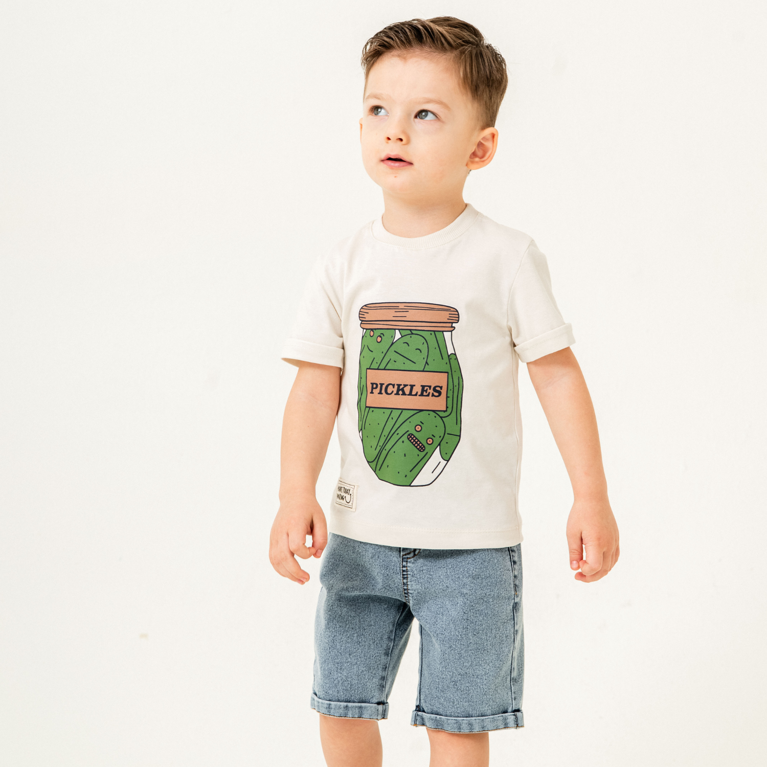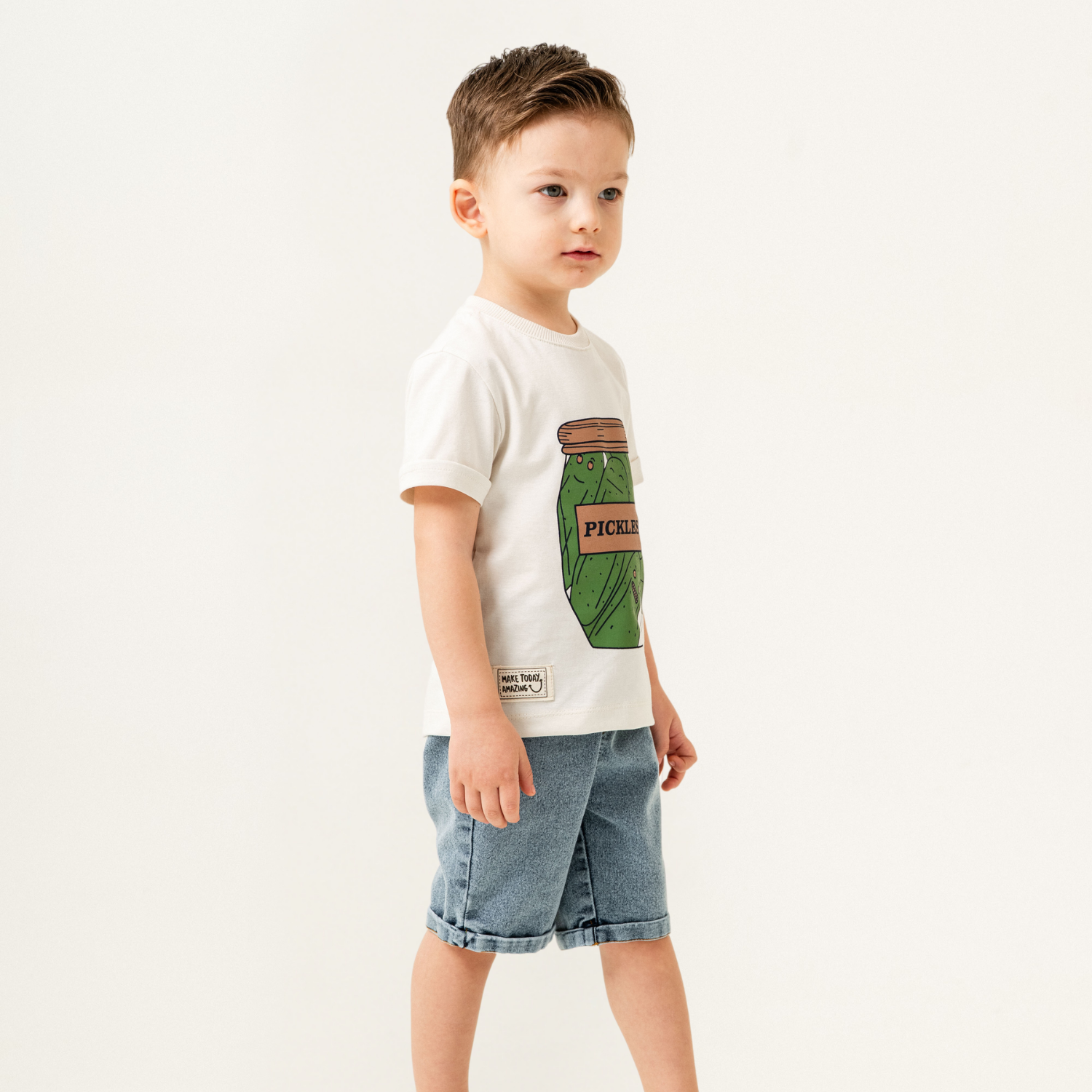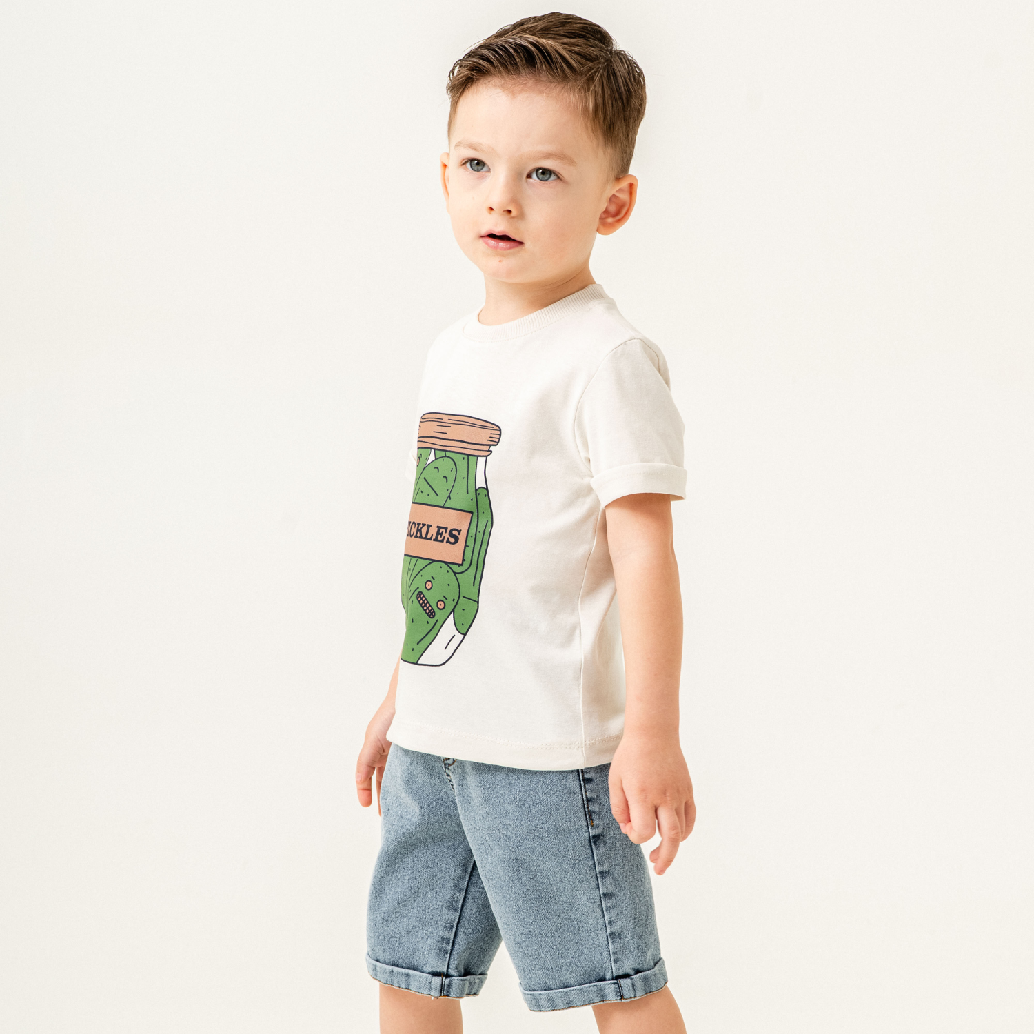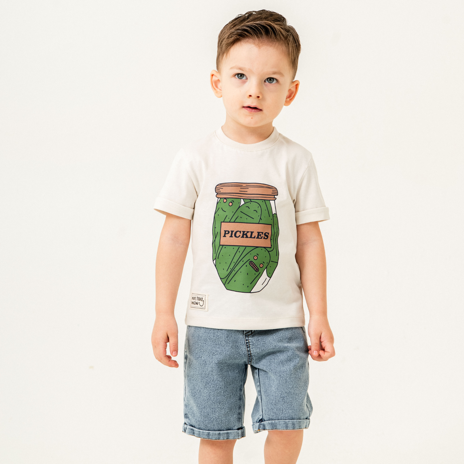 Préparez votre petit pour l'aventure avec cet ensemble amusant et stylé ! Le t-shirt en coton doux arbore un imprimé original de pot de cornichons, ajoutant une touche ludique à sa garde-robe. Assorti à un short en jean classique, cet ensemble allie confort et résistance pour toutes les activités du quotidien. Idéal pour les sorties décontractées, les jeux et les journées ensoleillées !
