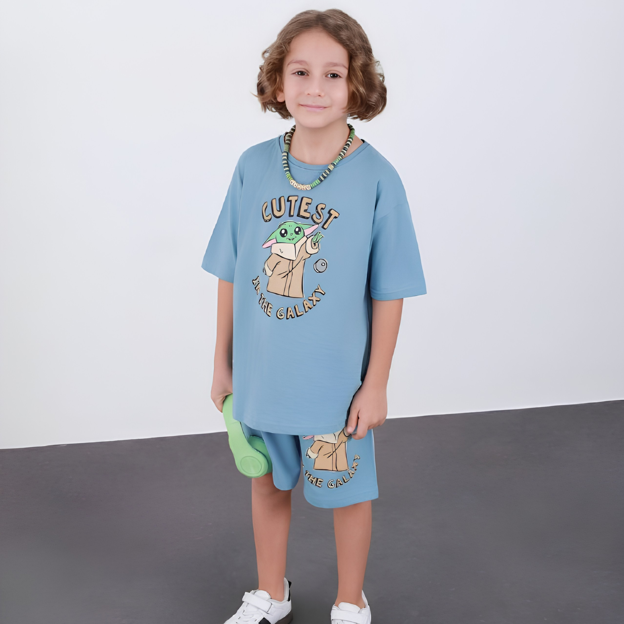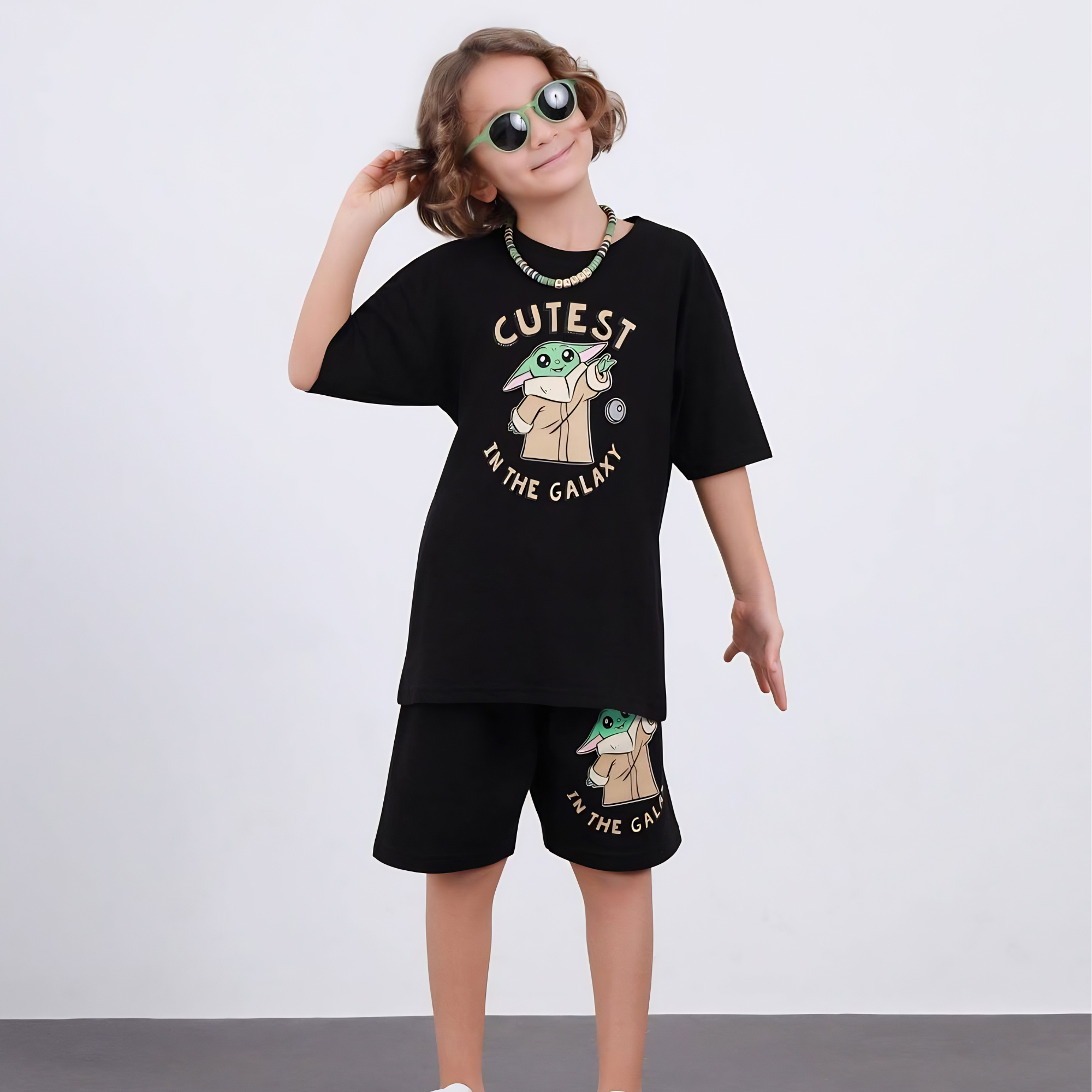 Cet ensemble deux pièces ludique est conçu pour le confort et les aventures du quotidien. Le t-shirt à manches courtes présente un imprimé audacieux à l’avant ainsi qu’un design marquant au dos, pour une touche dynamique. Le short assorti est doté d’une taille élastique avec cordon de serrage pour un ajustement optimal, ainsi que d’un détail graphique coordonné. Léger et facile à porter, cet ensemble est idéal pour les journées actives, les sorties et les moments décontractés.