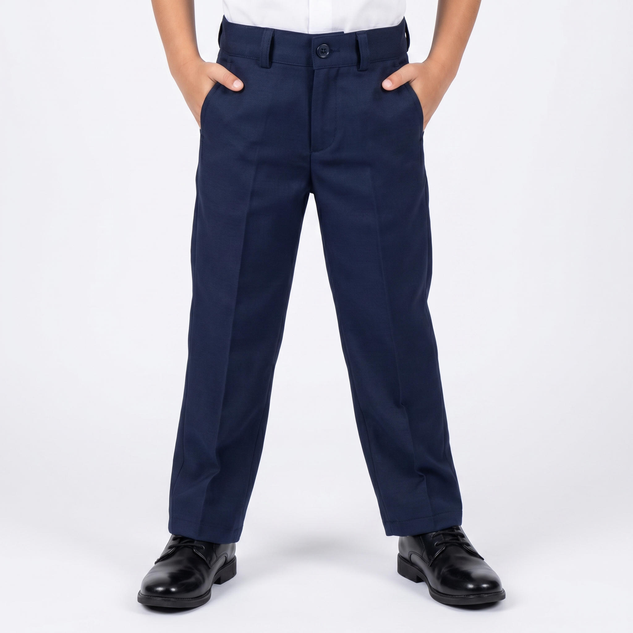 Ensemble gilet formel en cotton, chemise en coton à motifs, pantalon slim fit marine a taille ajustable et nœud papillon. Une création exclusive JuniorKids!
