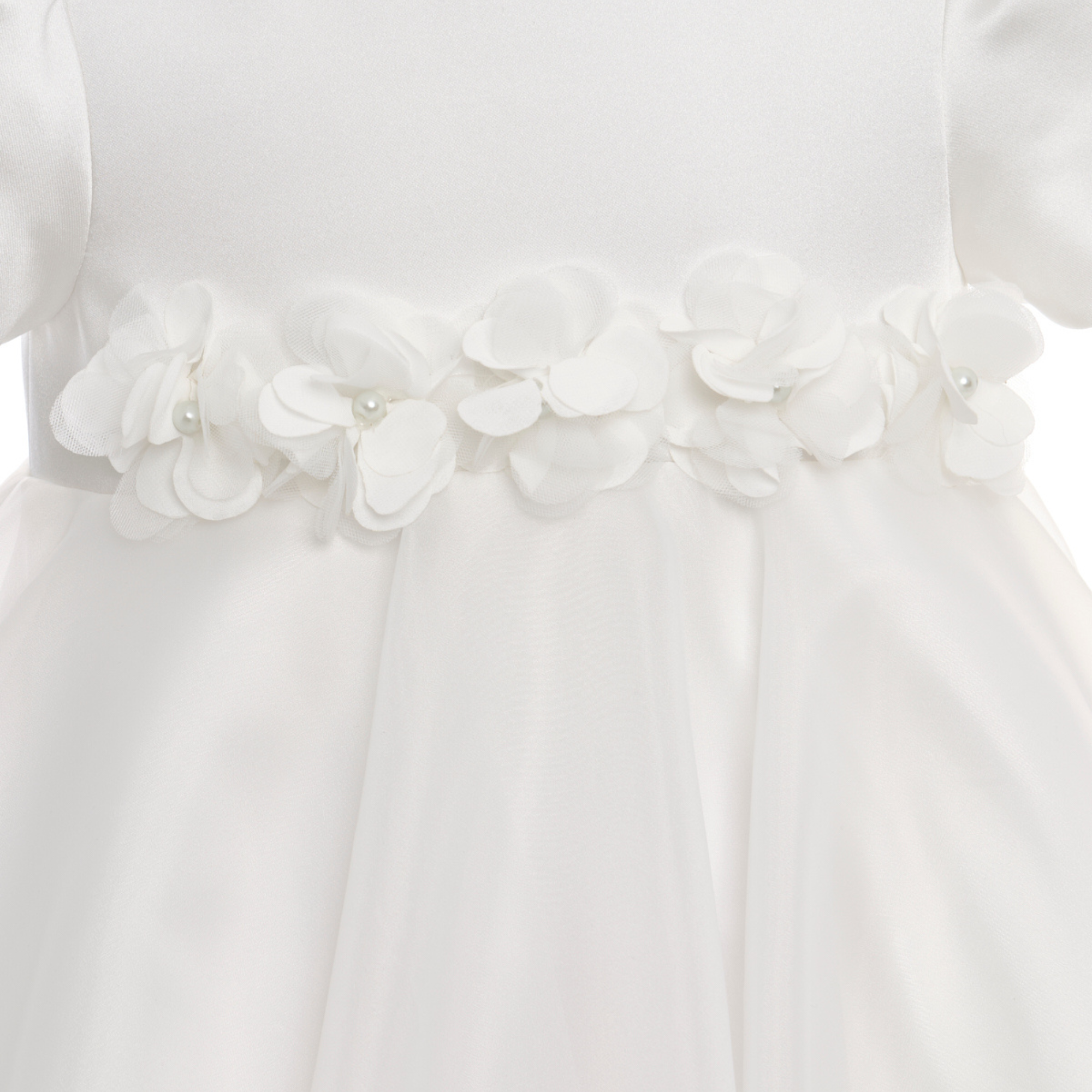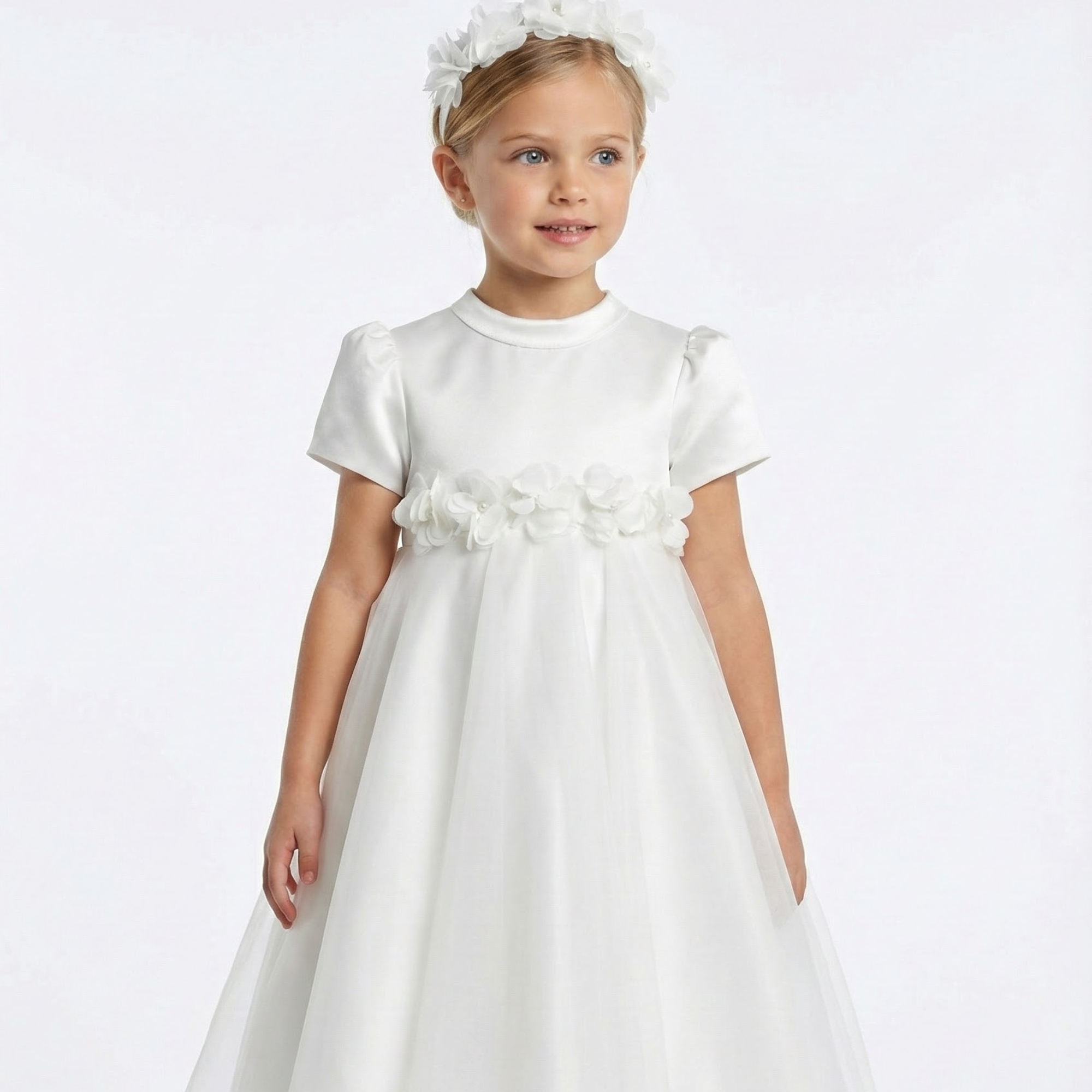 Soft, radiant, and beautifully refined, the Arc of Light Girls Dress is designed to capture a pure and timeless elegance. Crafted in an elegant off-white tone, this dress features delicate floral appliqué details along the waistline, creating a gentle and graceful silhouette. The airy tulle skirt adds volume and movement, giving the dress a light, ethereal feel.