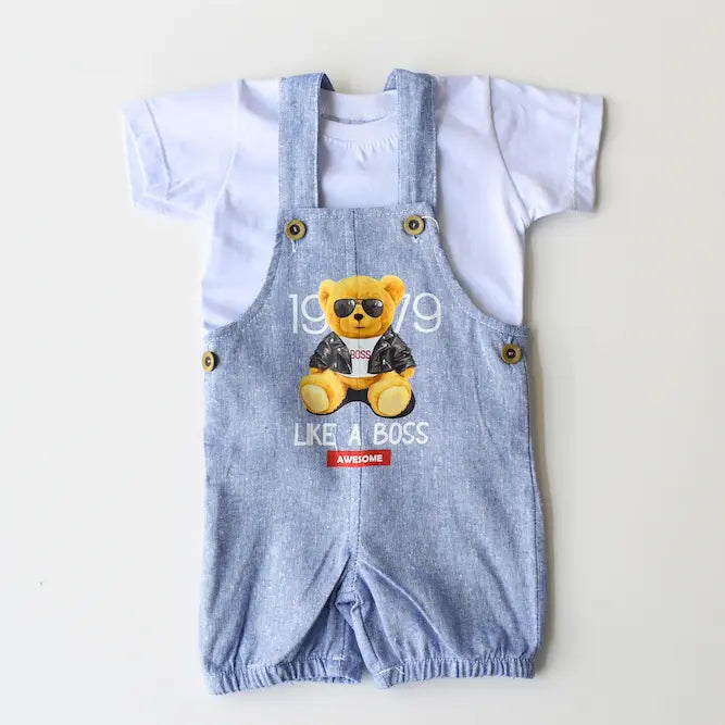 Give your little explorer the ultimate blend of comfort and style with our adorable baby boy overall set! This charming outfit features a soft, breathable cotton T-shirt paired with a cozy overall designed for all-day play. The highlight? A cute bear print on the front, adding a touch of fun and warmth to your baby's wardrobe. Whether it's for a day out or cozy moments at home, this set is a must-have for every little adventurer!