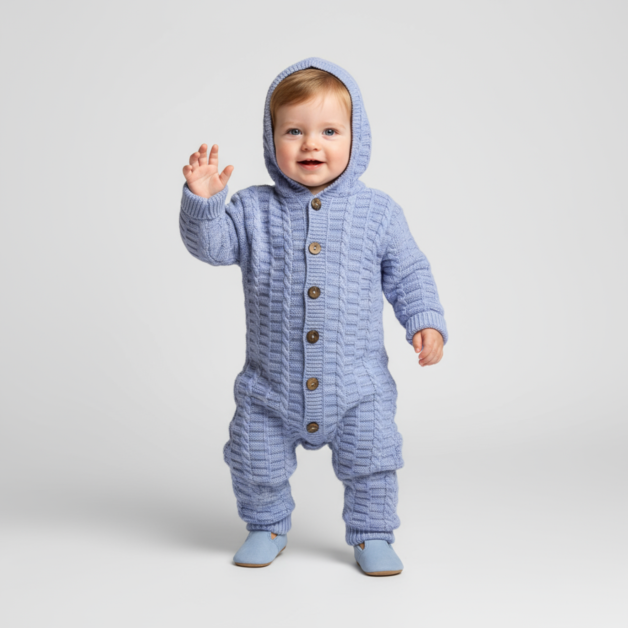 Keep your baby warm and cozy with this knit hooded romper. Made from 100% soft cotton, it’s designed for all-day comfort while adding an adorable, classic look.