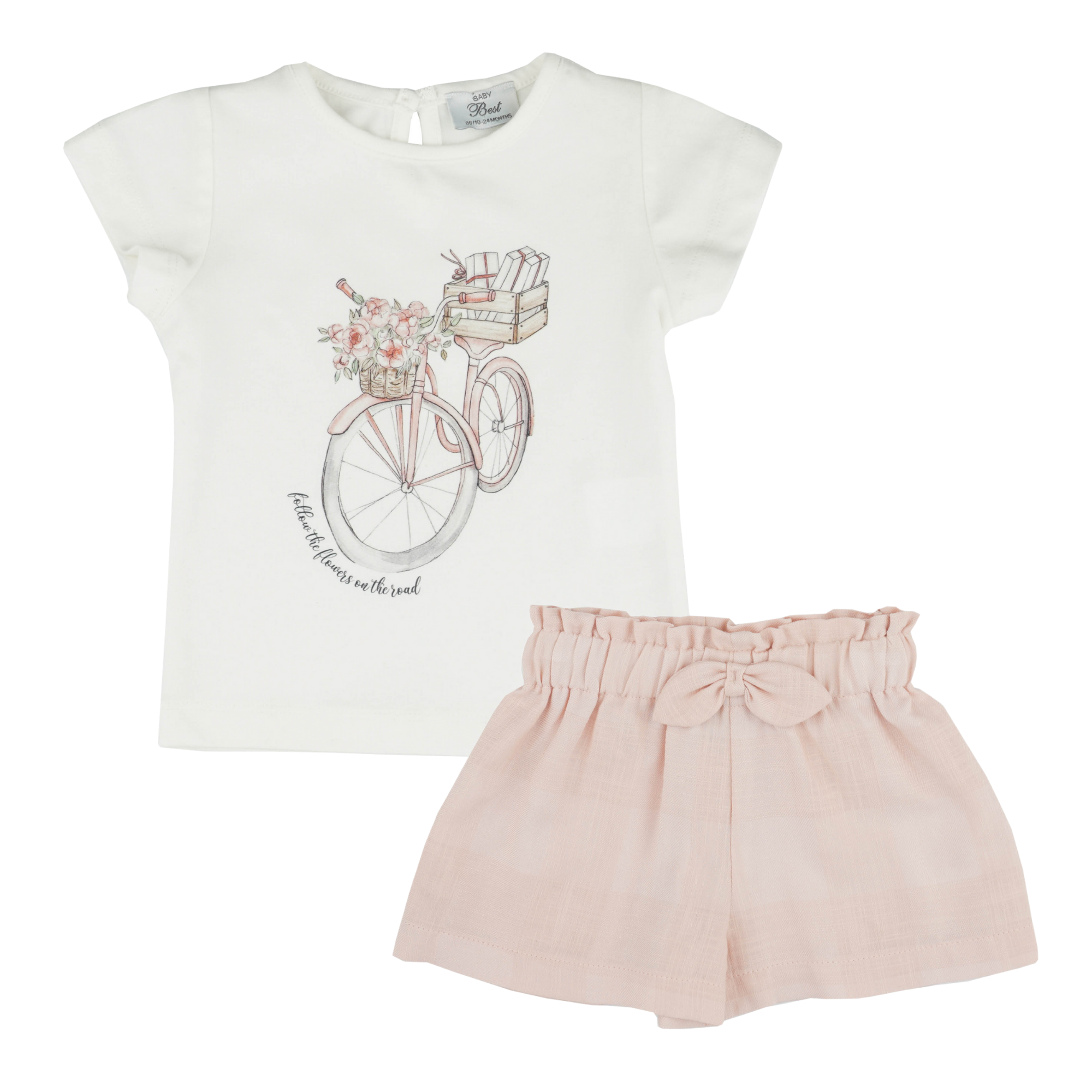 Perfect summer set for your little princess including a soft cotton tshirt with light and very stylish shorts (60% viscose / 40% cotton).