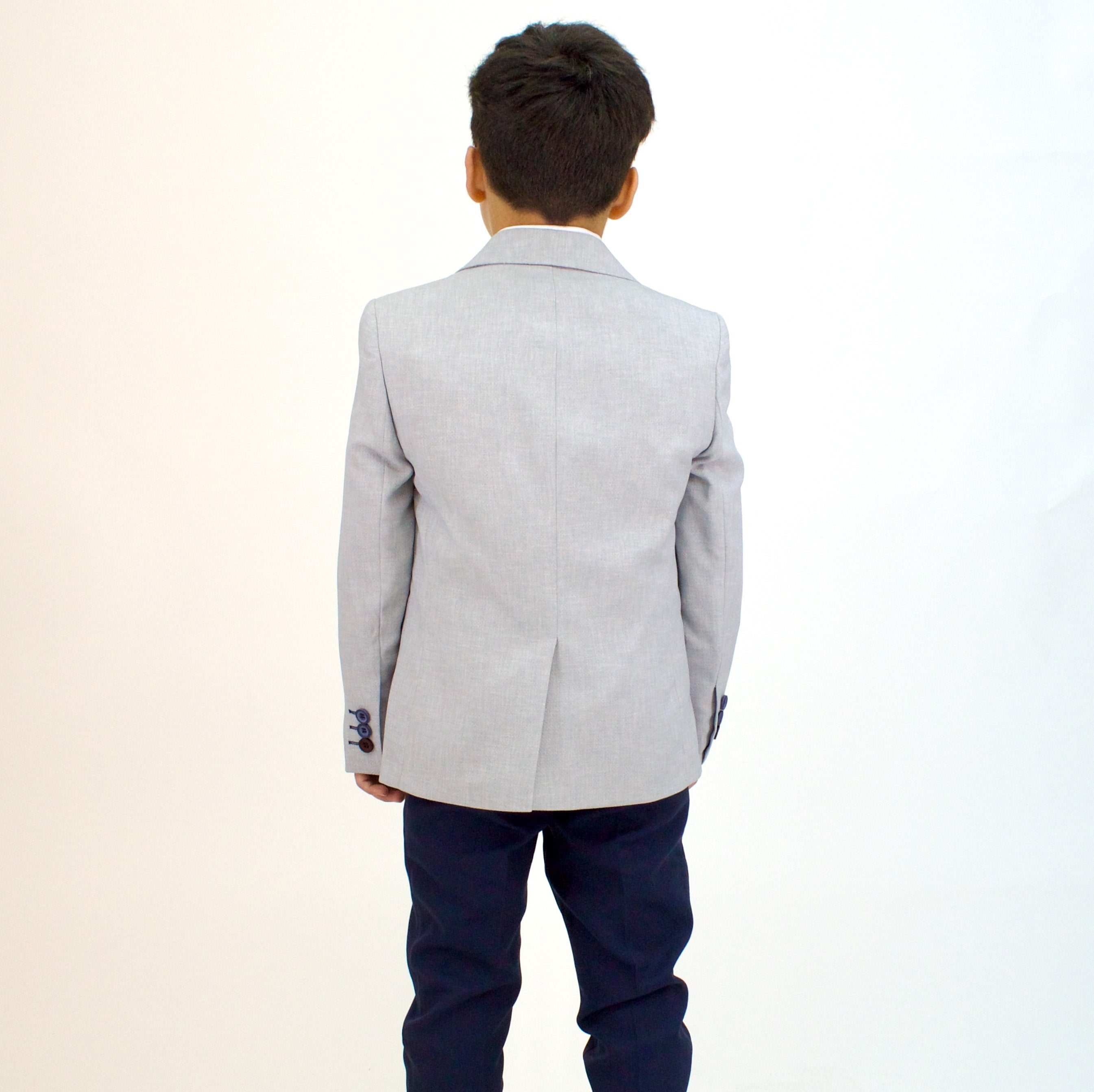 Knit Cotton Blazer: The blazer is crafted from high-quality knit cotton, offering a smooth and comfortable fit. Its sleek design and soft texture make it a versatile and stylish choice, suitable for both formal and semi-formal events. The subtle stretch ensures that your child can move freely while looking sharp.