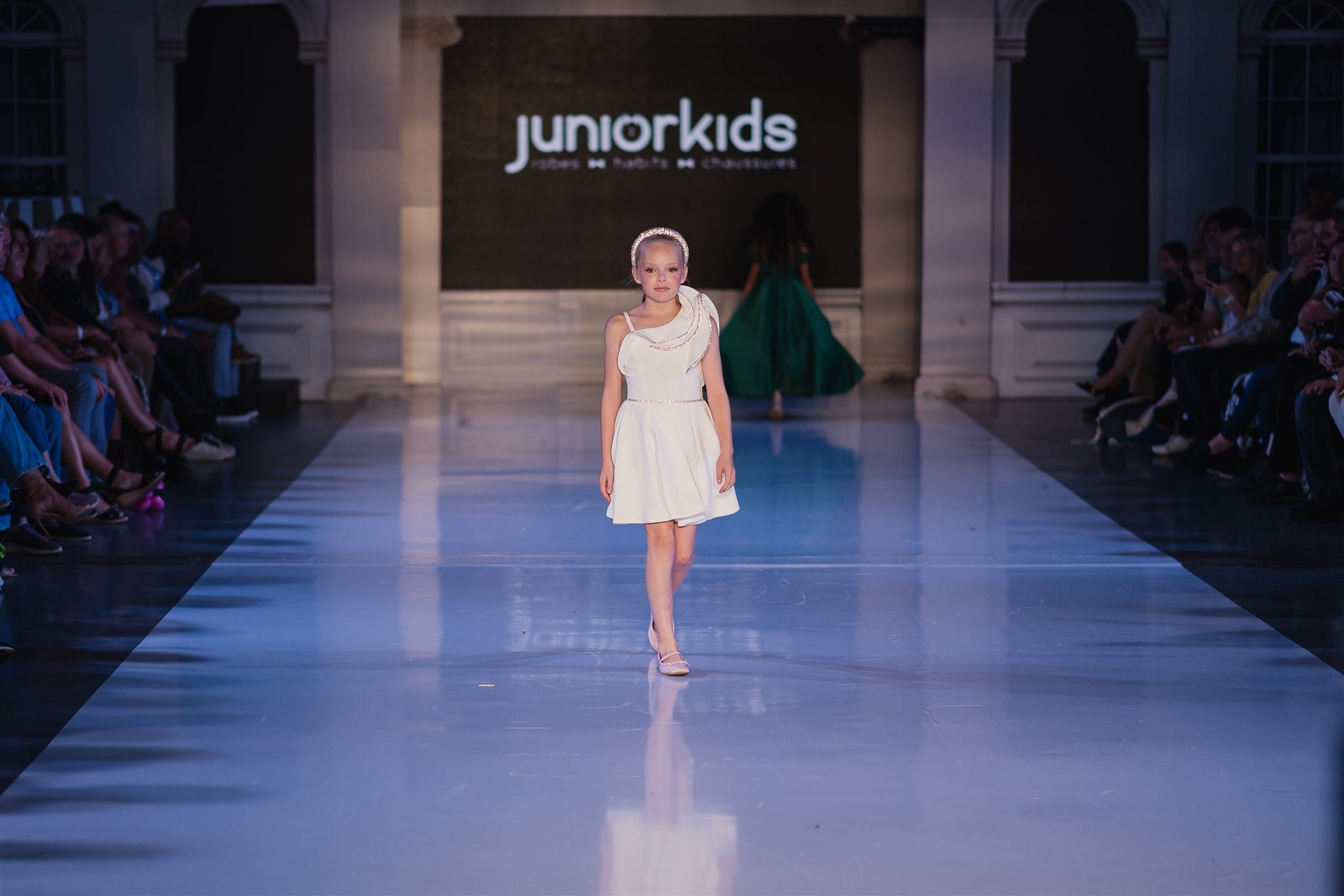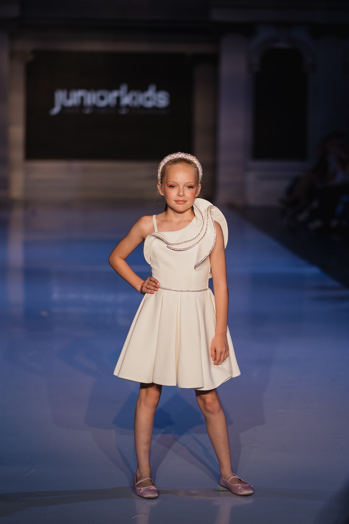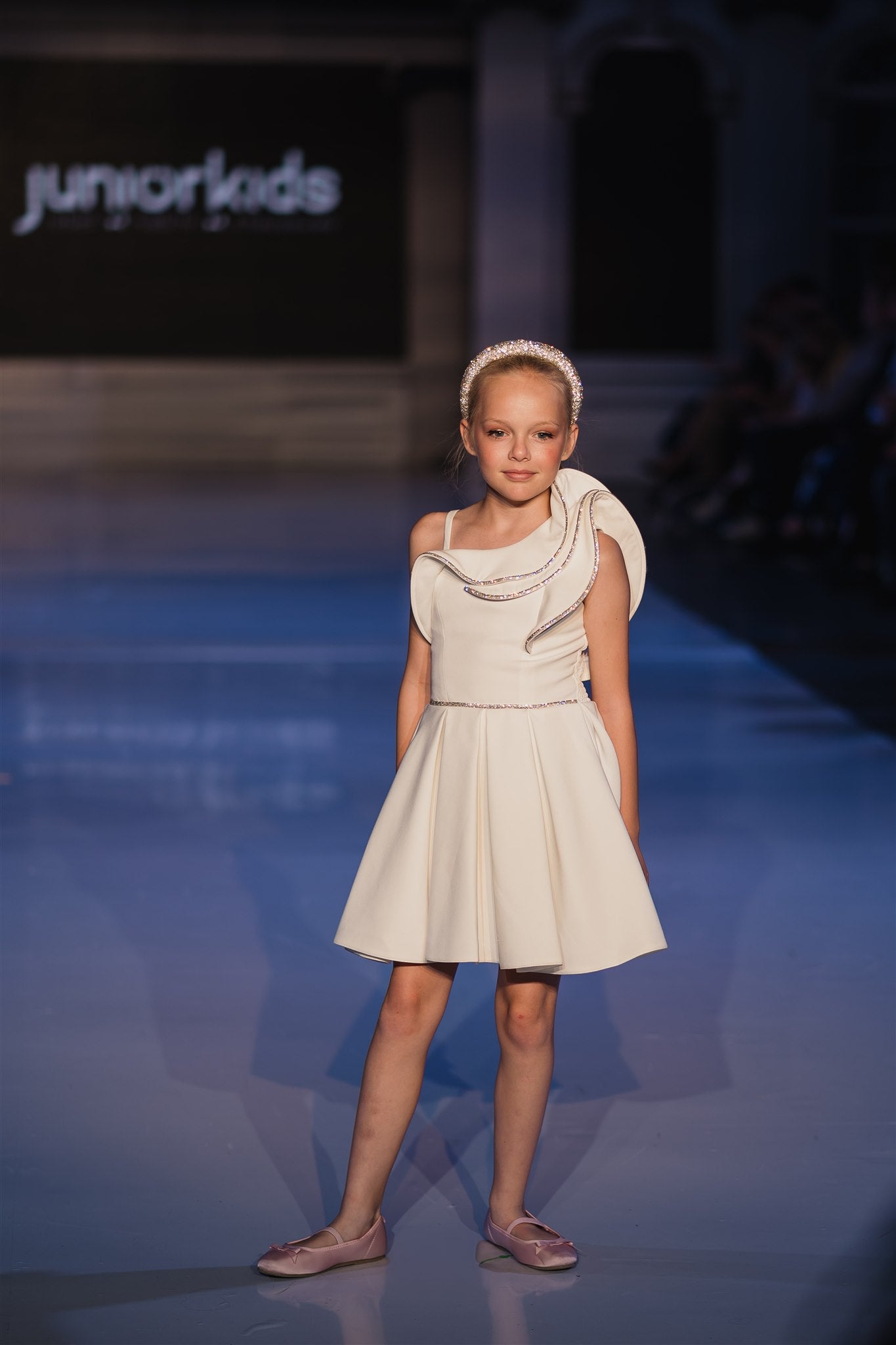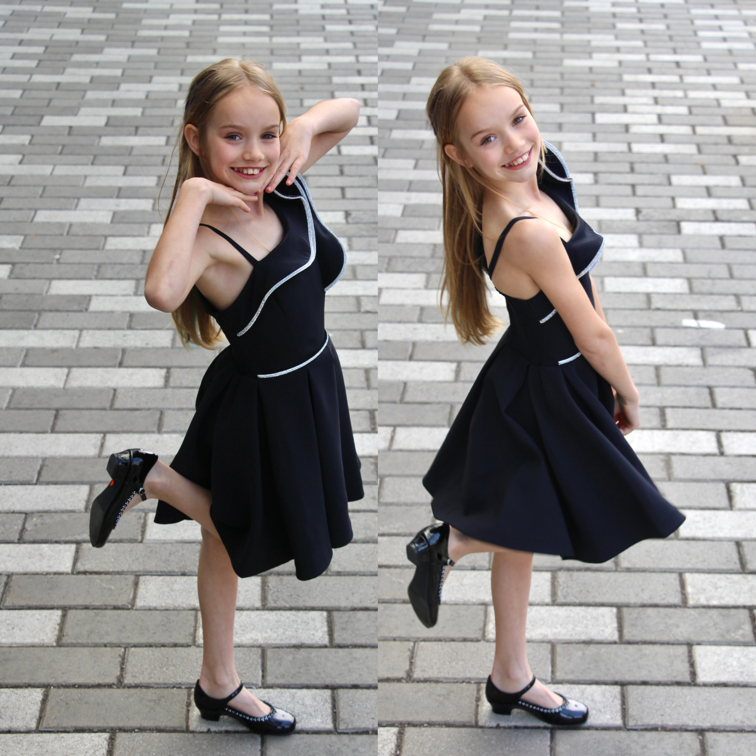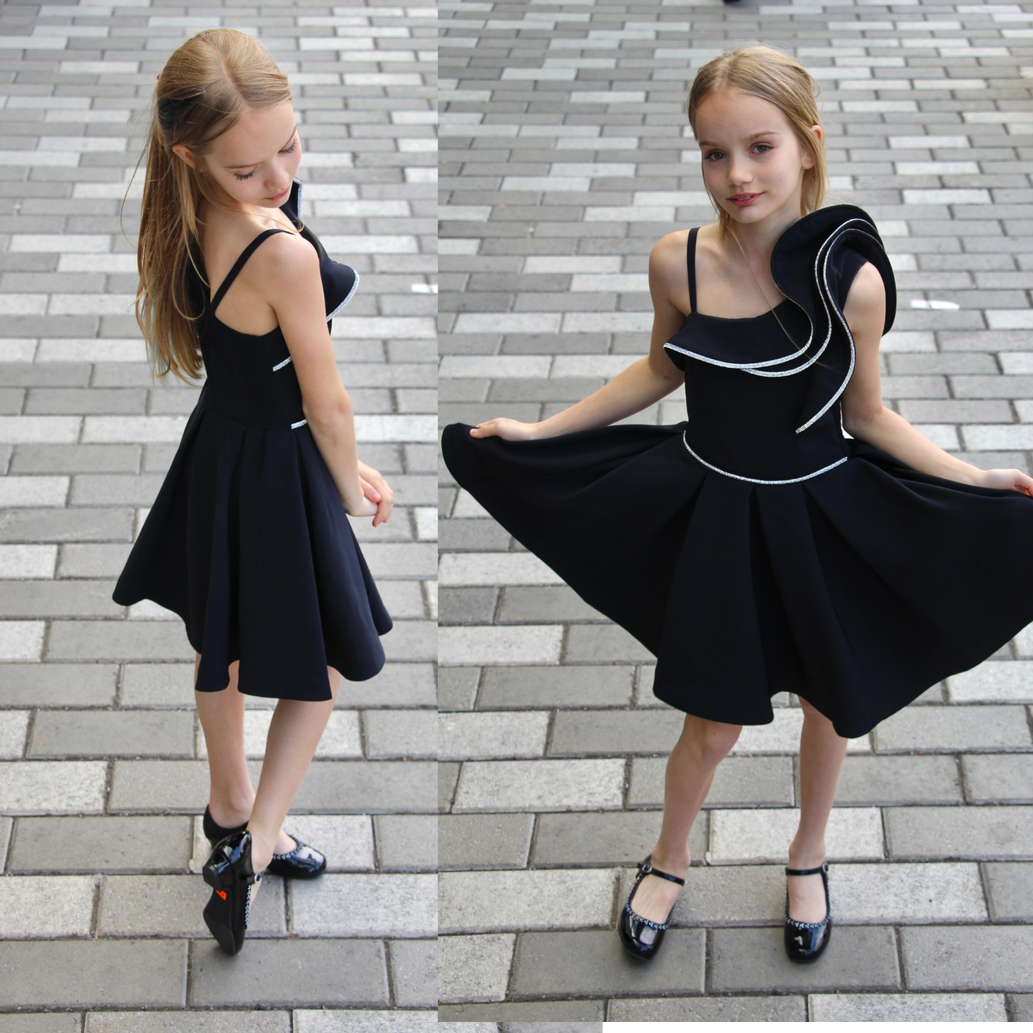 Elevate your little girl's style with our charming sleeveless dress! This short and sweet dress features a shiny trim line at the waist, adding a touch of glamour to her look. Perfect for any special occasion or a day out, this dress is a delightful addition to her wardrobe.