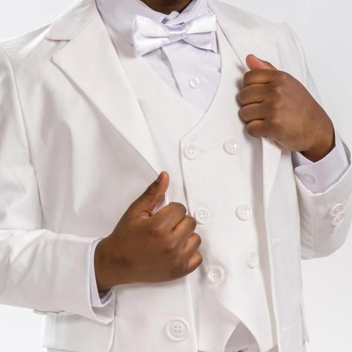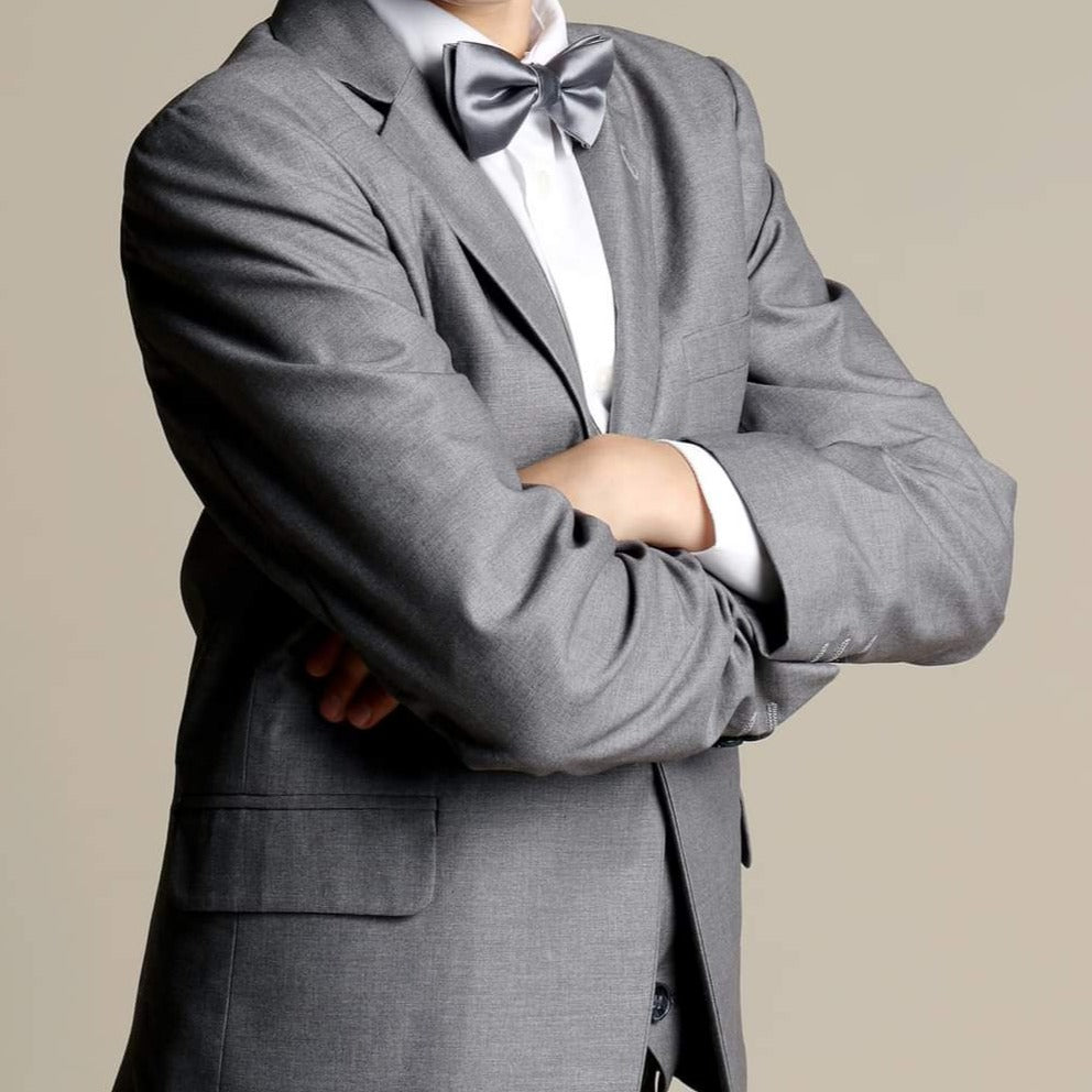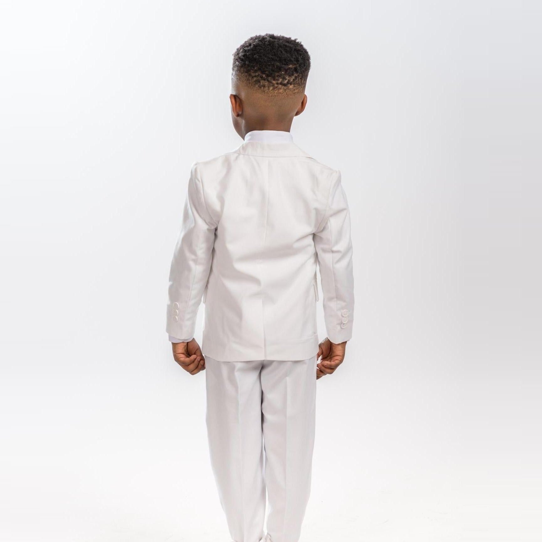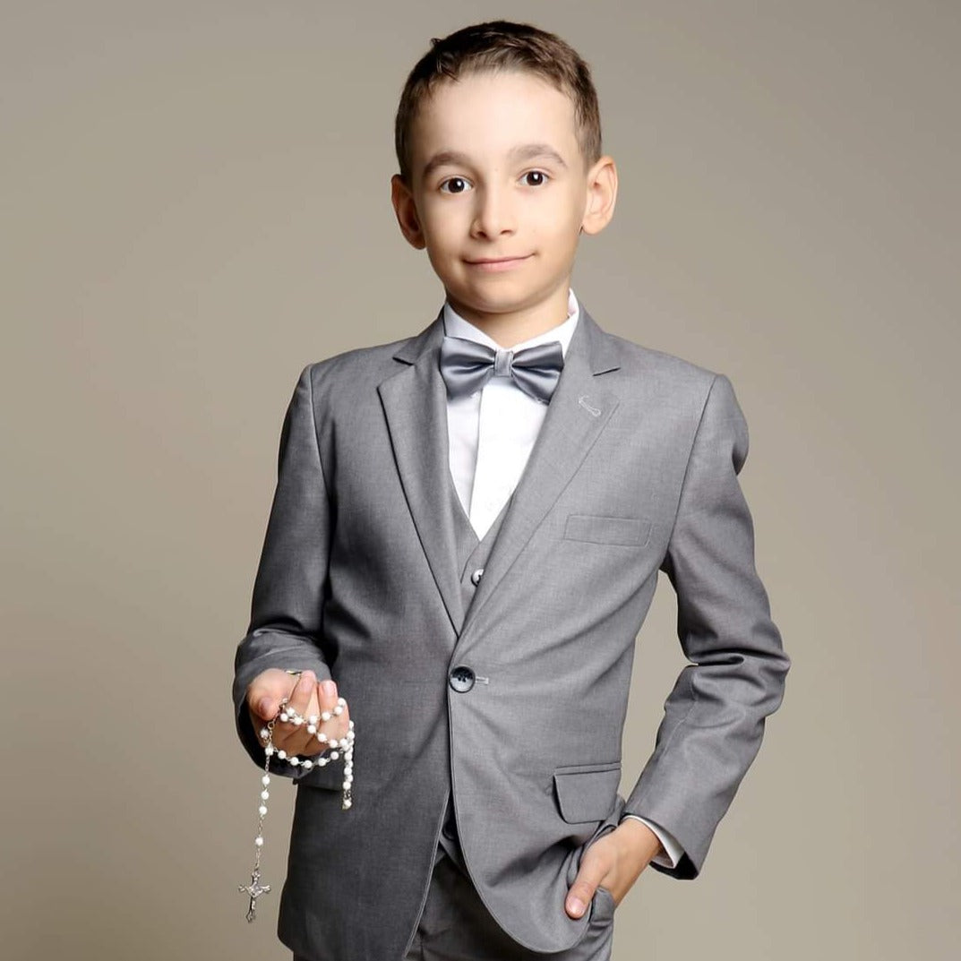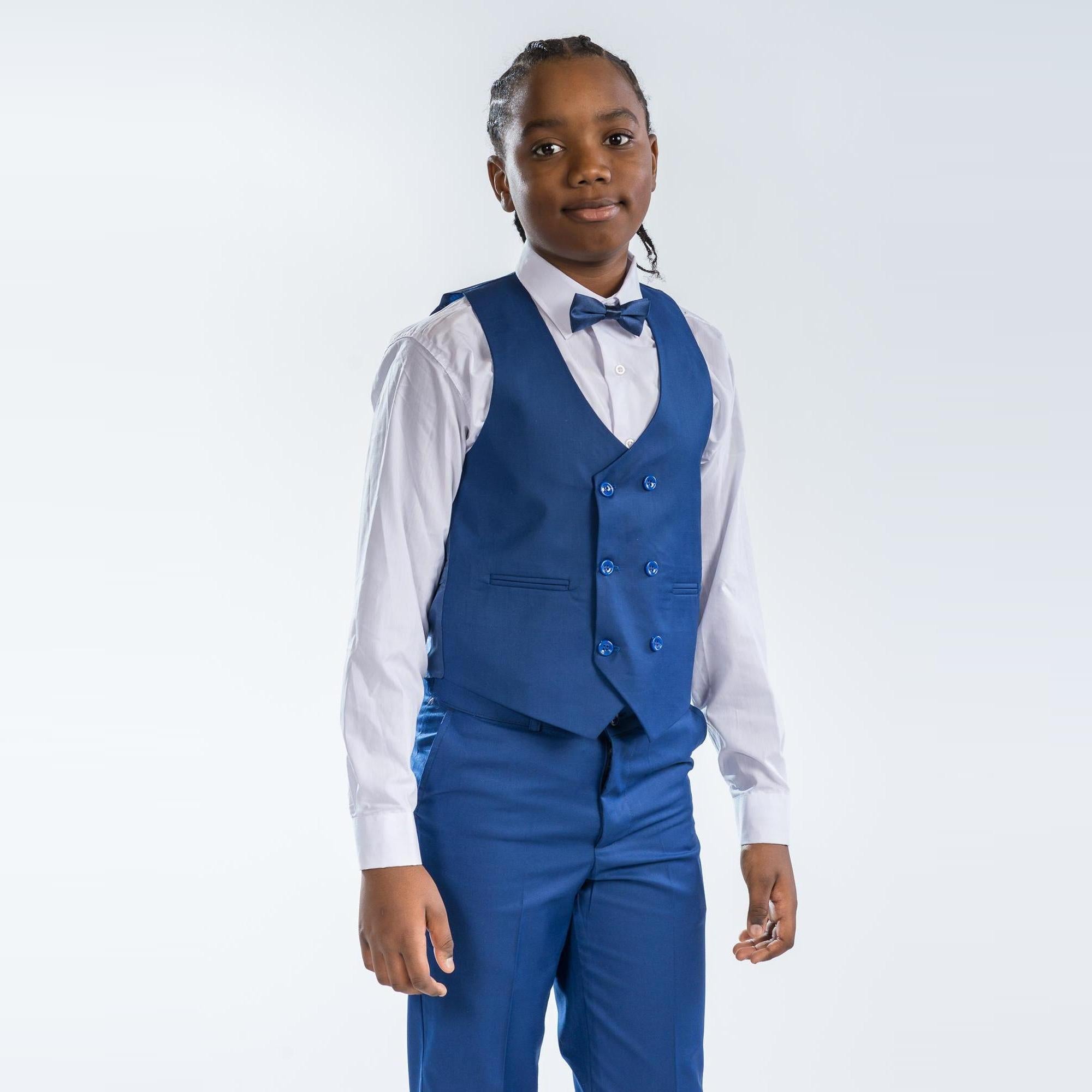 Straight out of a magazine, this superb slim-fit classic suit includes a blazer (70% Polyester / 30% Viscose), slim pants (70% Polyester / 30% Viscose), a 3-button waistcoat (70% Polyester / 30% Viscose), a skinny shirt (95% cotton / 5% lycra) and bow tie—ideal as a groom boys suit and versatile for kids groom suits at weddings and formal events, with slim tailoring that photographs well.