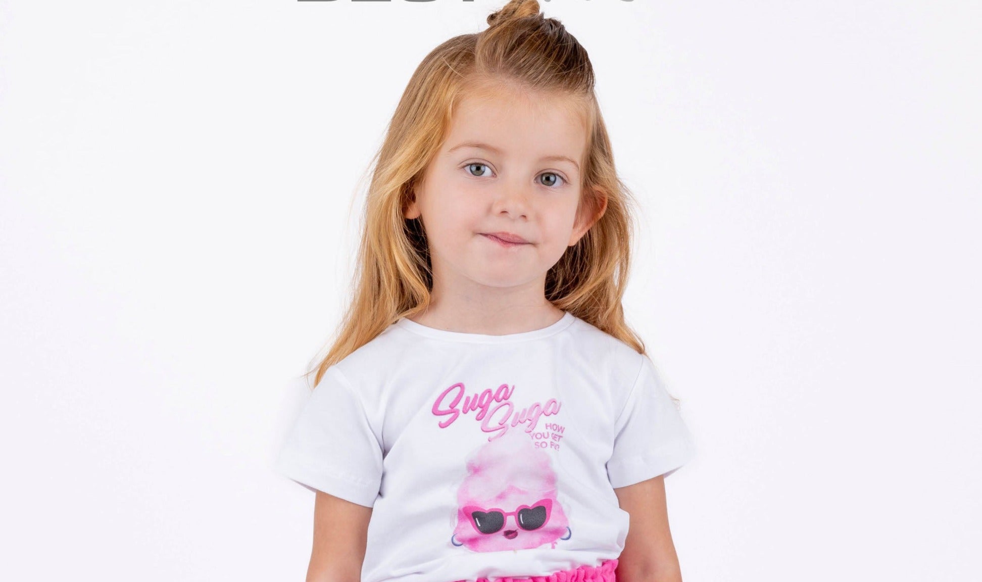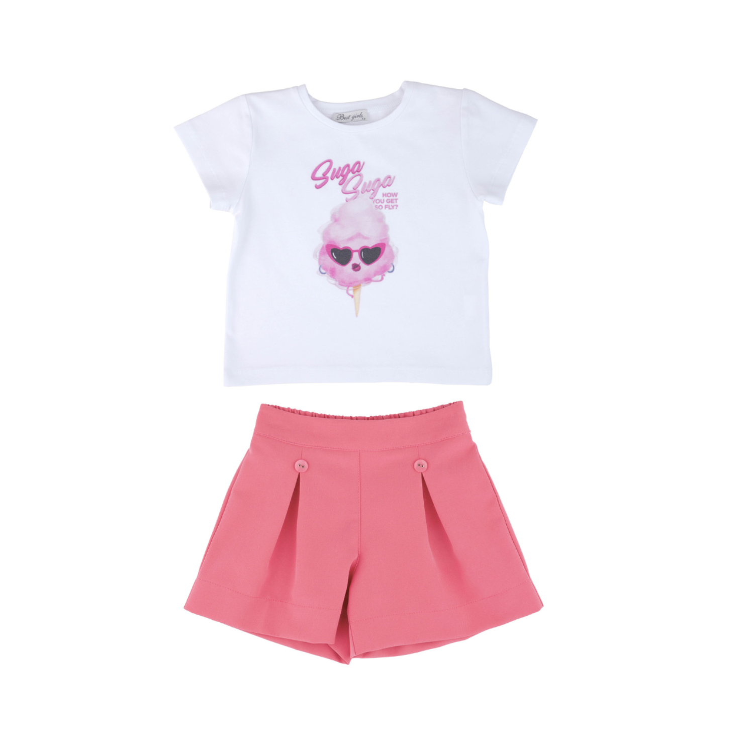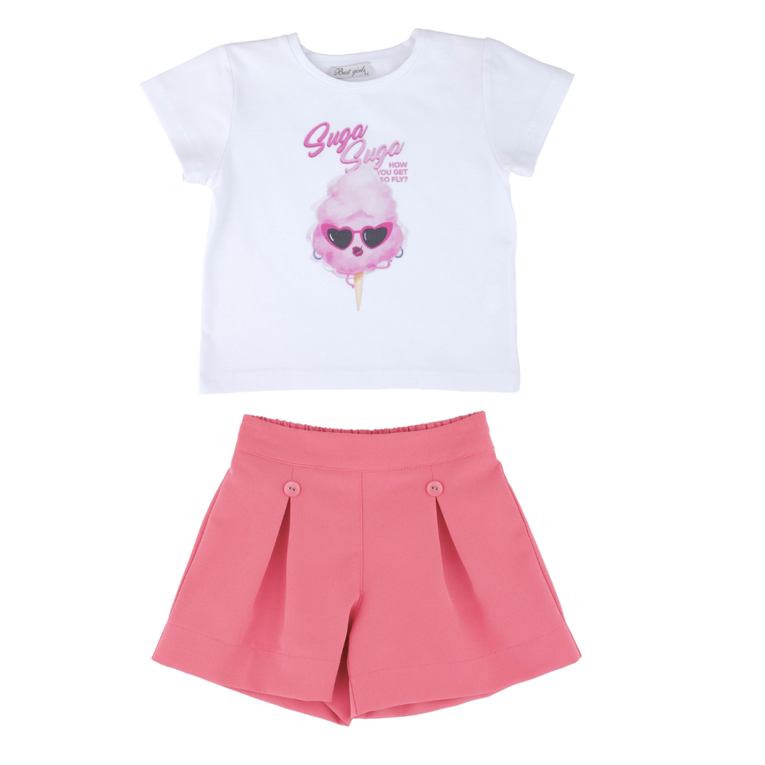 Beautiful summer set dressed for perfect family outings including a soft cotton t-shirt (100% cotton) and light and very stylish shorts (100% cotton)