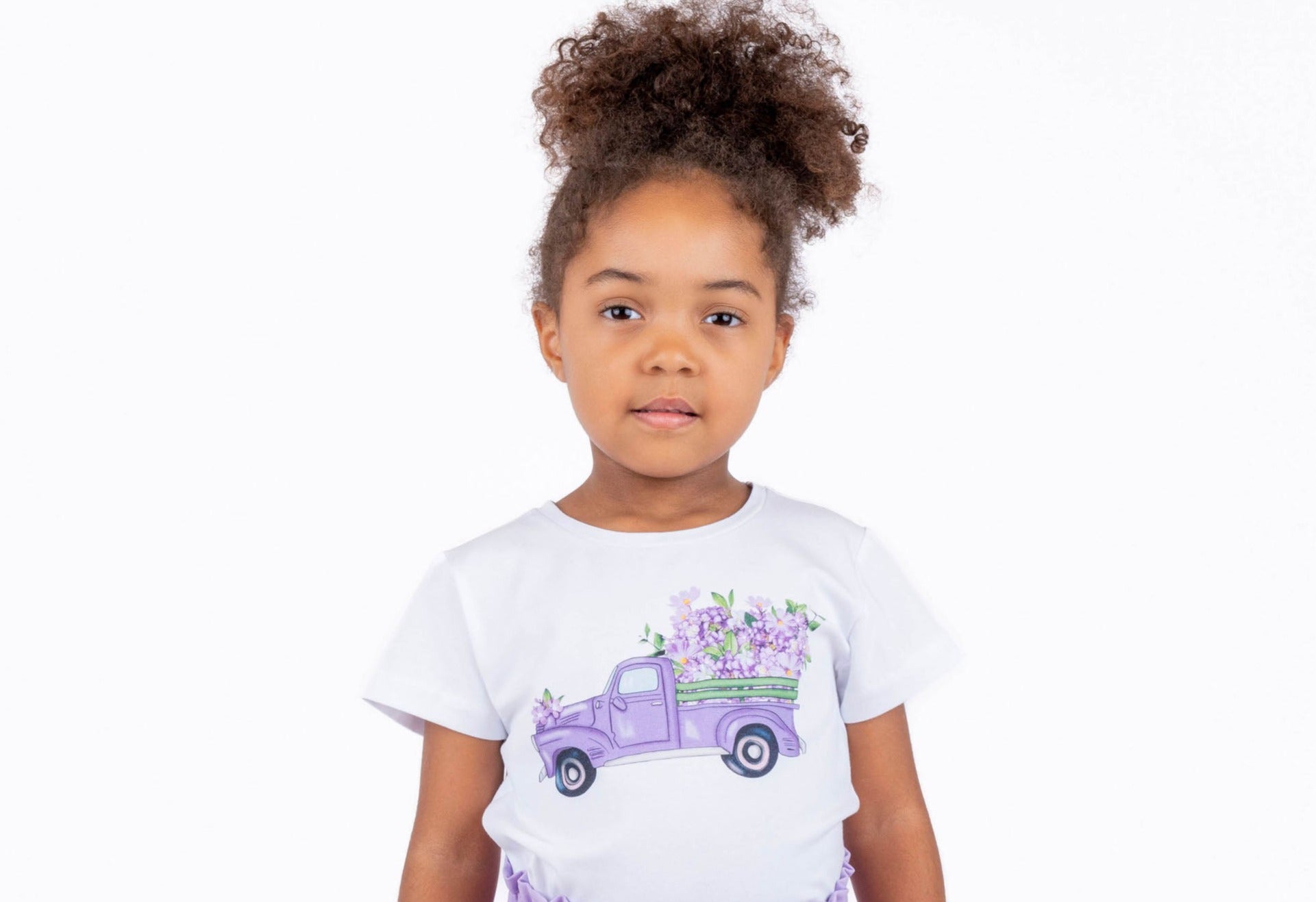 Beautiful dressy summer set for perfect family outings including a soft coton top (95% Cotton / 5% Lycra) and formal shorts (100% Polyester).