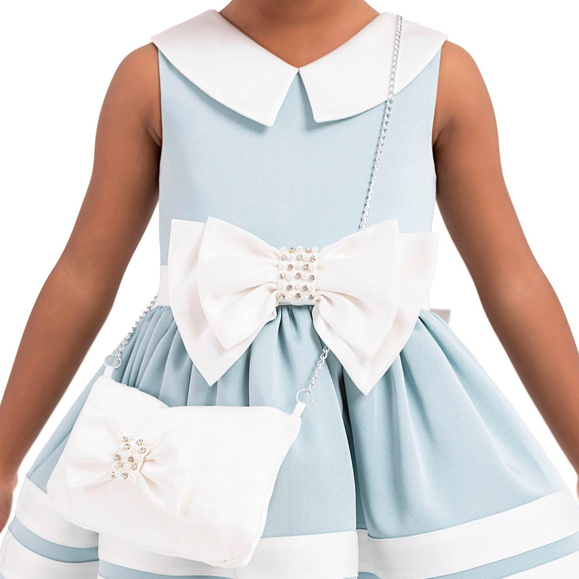Turn heads in this sleeveless A-line short dress with English collar for your little superstar with cotton lining for extra comfort. It is a very good choice for any special occasion. JuniorKids's latest exclusive creation!