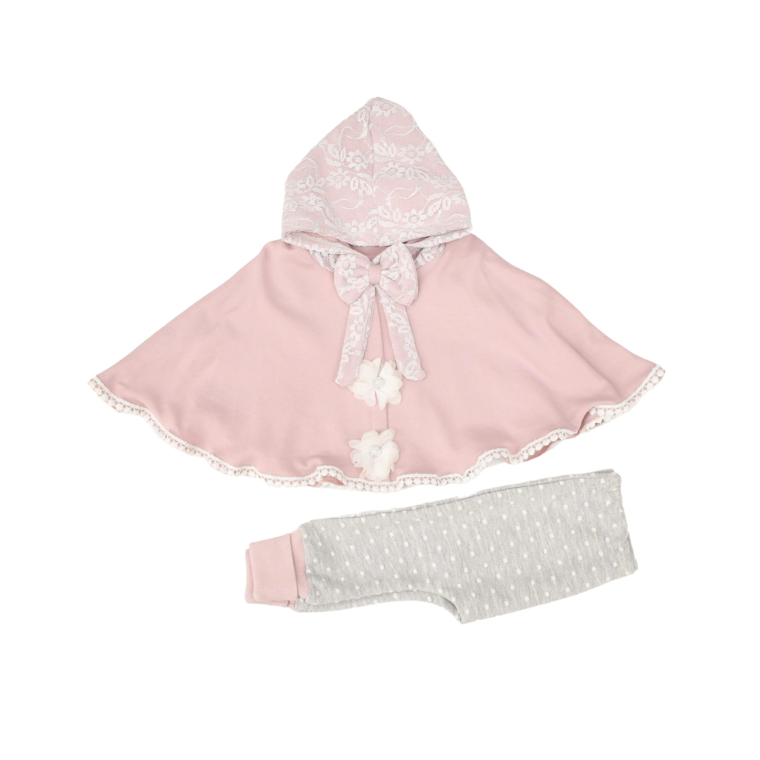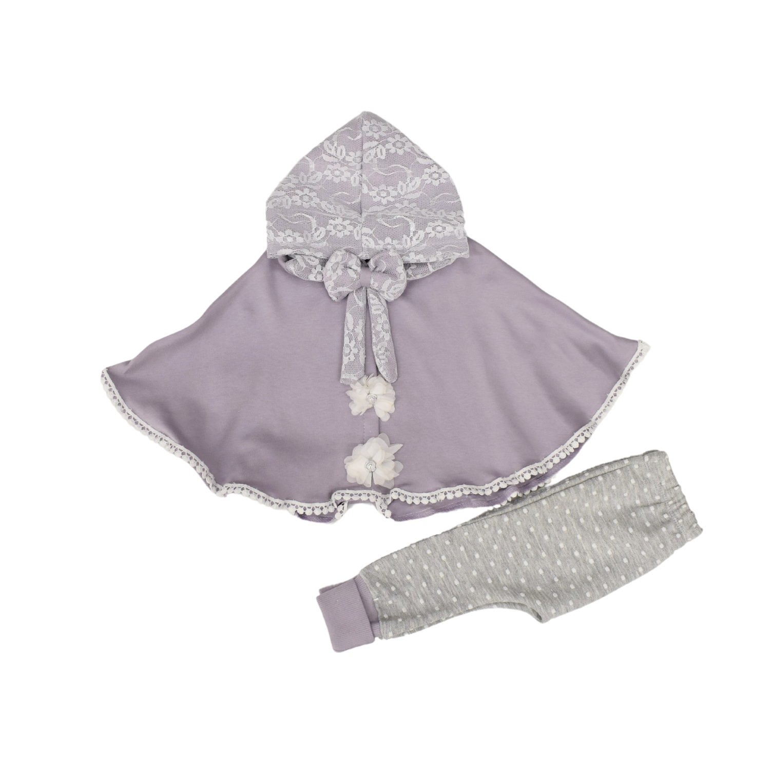 Keep your little one cozy and stylish with our adorable baby girl's poncho and pants set. Made with soft and breathable fabric, this set is perfect for playdates or just lounging at home. The poncho features a cute design, comes with a long sleeve shirt and matching pants ensure ultimate comfort. Dress your baby girl in this charming ensemble for a delightful day of fun and warmth (100% Cotton).