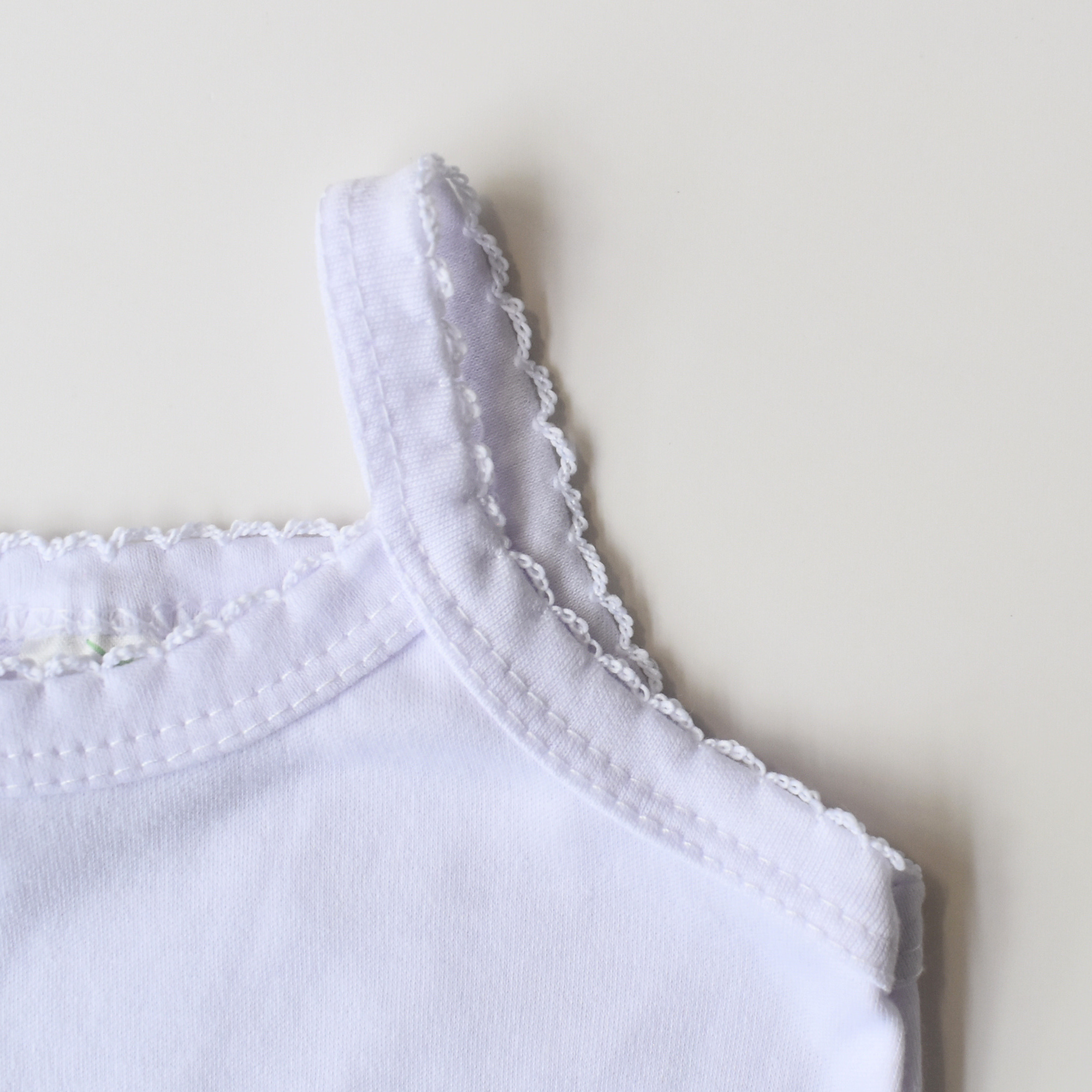 Super soft, pre-shrunk, cotton, thin strap diapervest in organic cotton jersey (100% COTTON). Perfect for under sleeveless dresses and tops!
