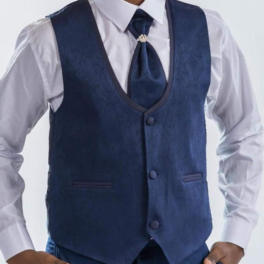 V-Shaped Vest: The tuxedo includes a V-shaped vest made from the same premium fabric. The design adds structure and elegance to the outfit, giving it a more formal and polished look, perfect for important events.