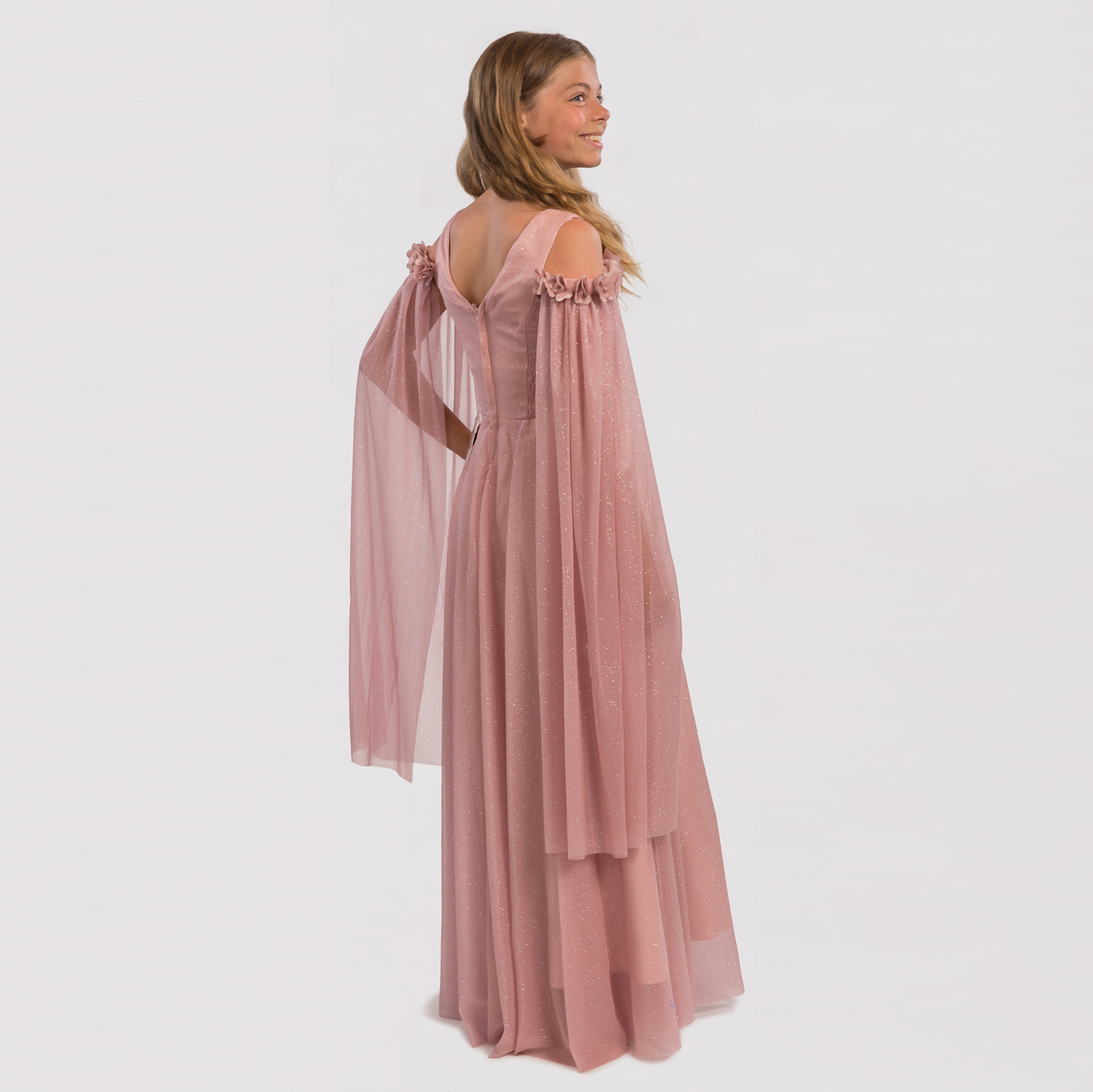 Certainement unique en son genre, votre pré-ado sera superbe dans cette magnifique robe longue en tulle brillant, avec les manches pendant ornées de fleurs. Une création signée JuniorKids!