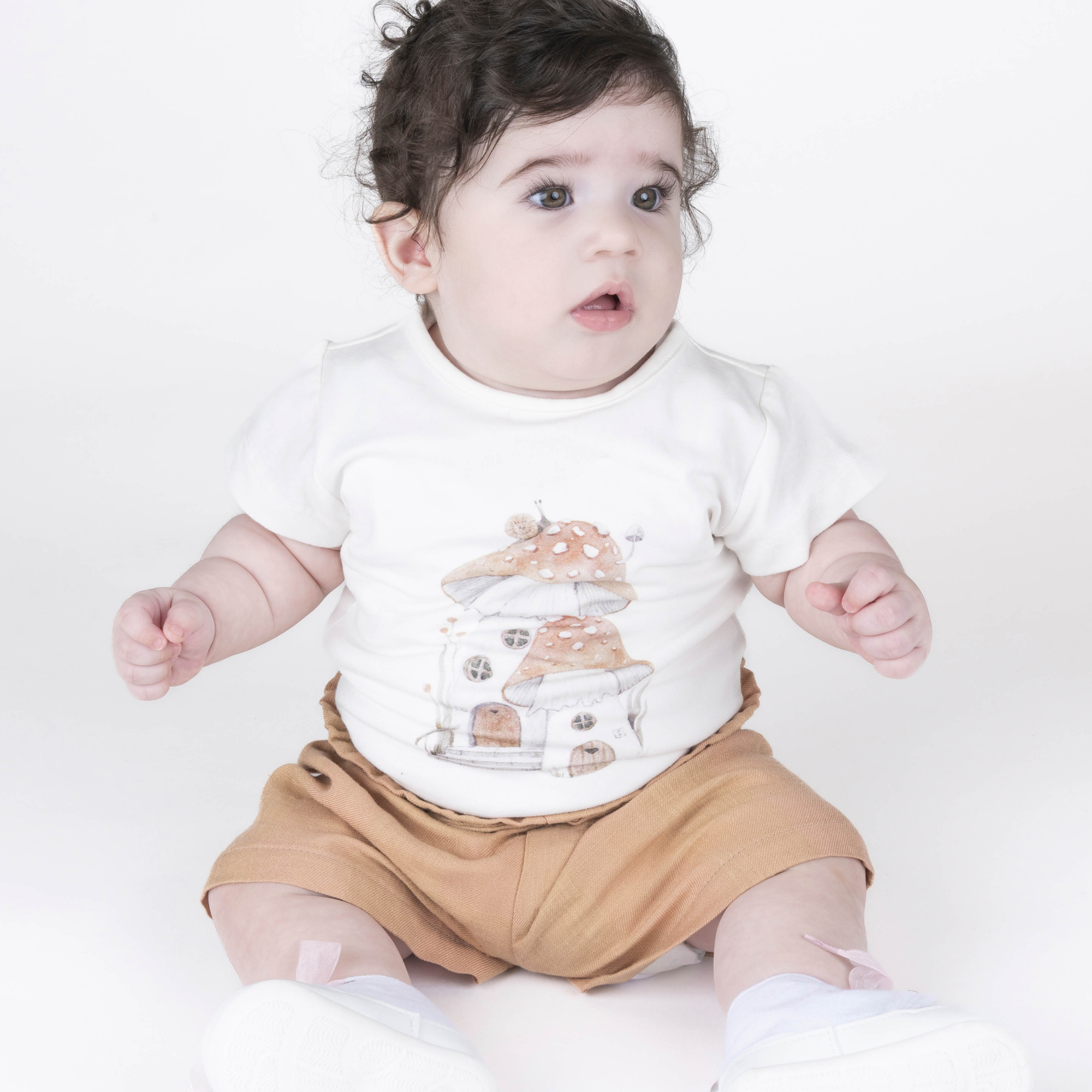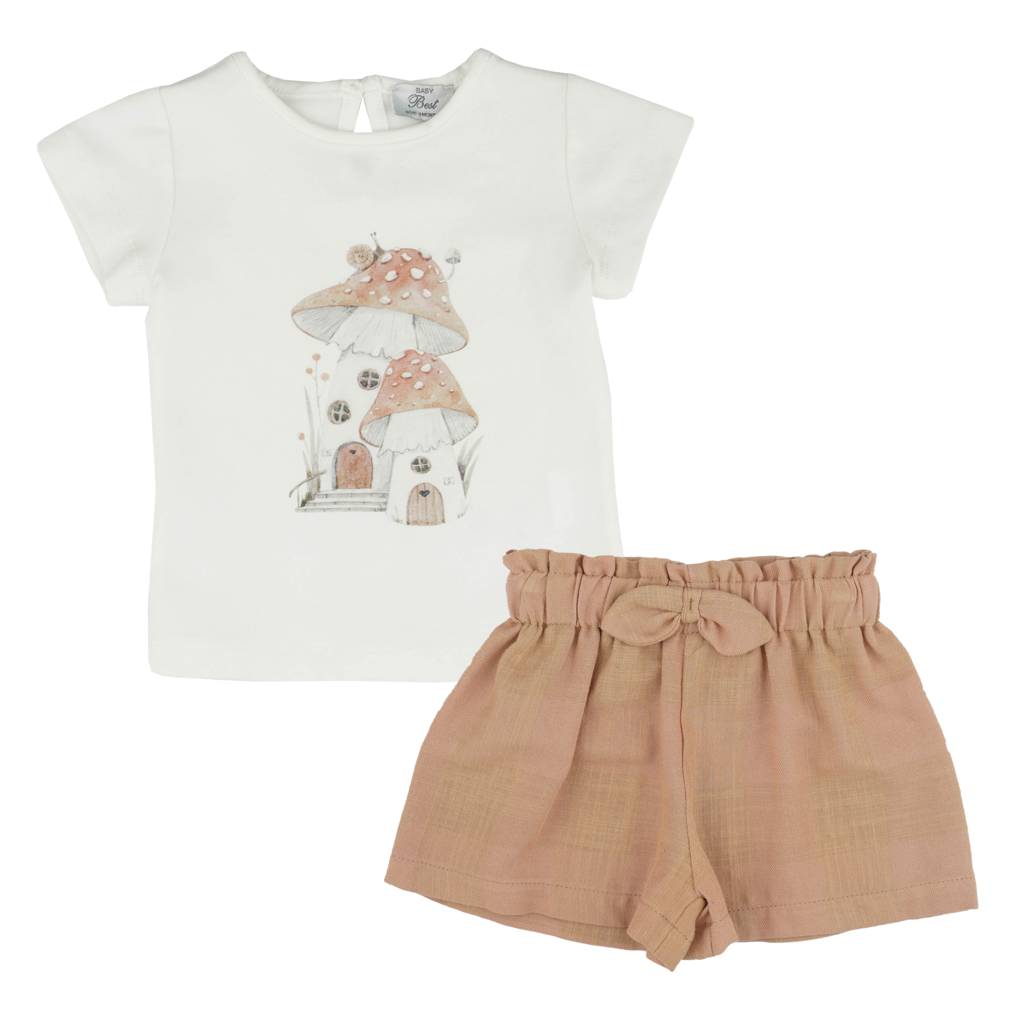 Parfait ensemble d'été pour ta petite princesse comprenant un chandail en coton doux avec des short leger et tres style (60% viscose / 40% coton).