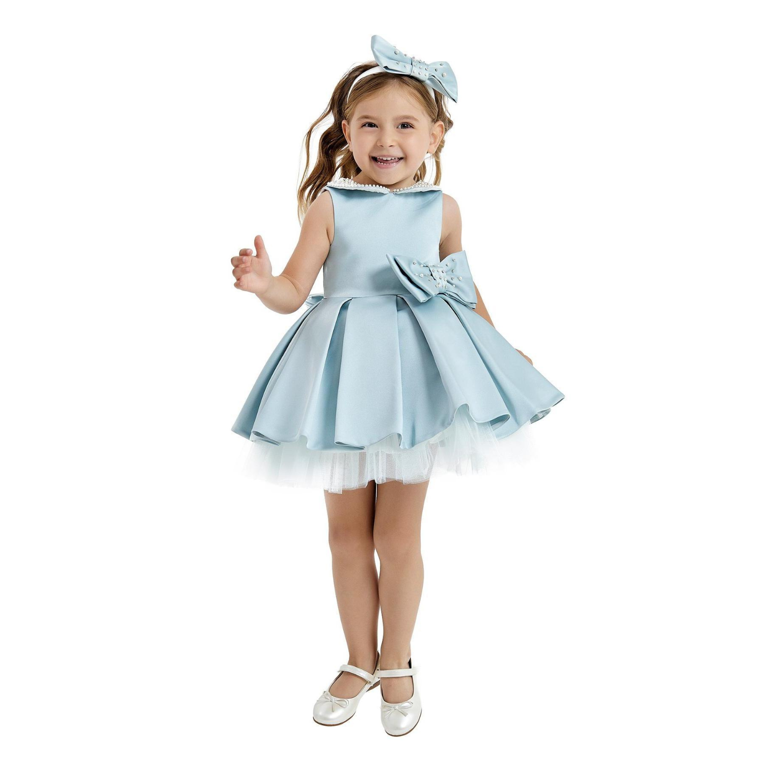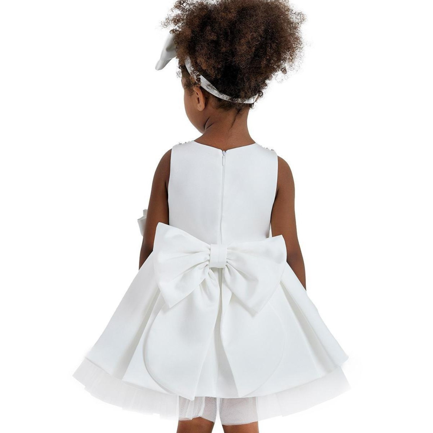 Robe sans manches en satin doux vraiment originale et magnifique pleine de perles et de strass sur son col anglais fait à la main. La robe a de jolis nœuds sur le devant et un amovible dans le dos et est doublée de coton doux pour un fit confortable. Encore une création exclusive de JuniorKids Luxury!