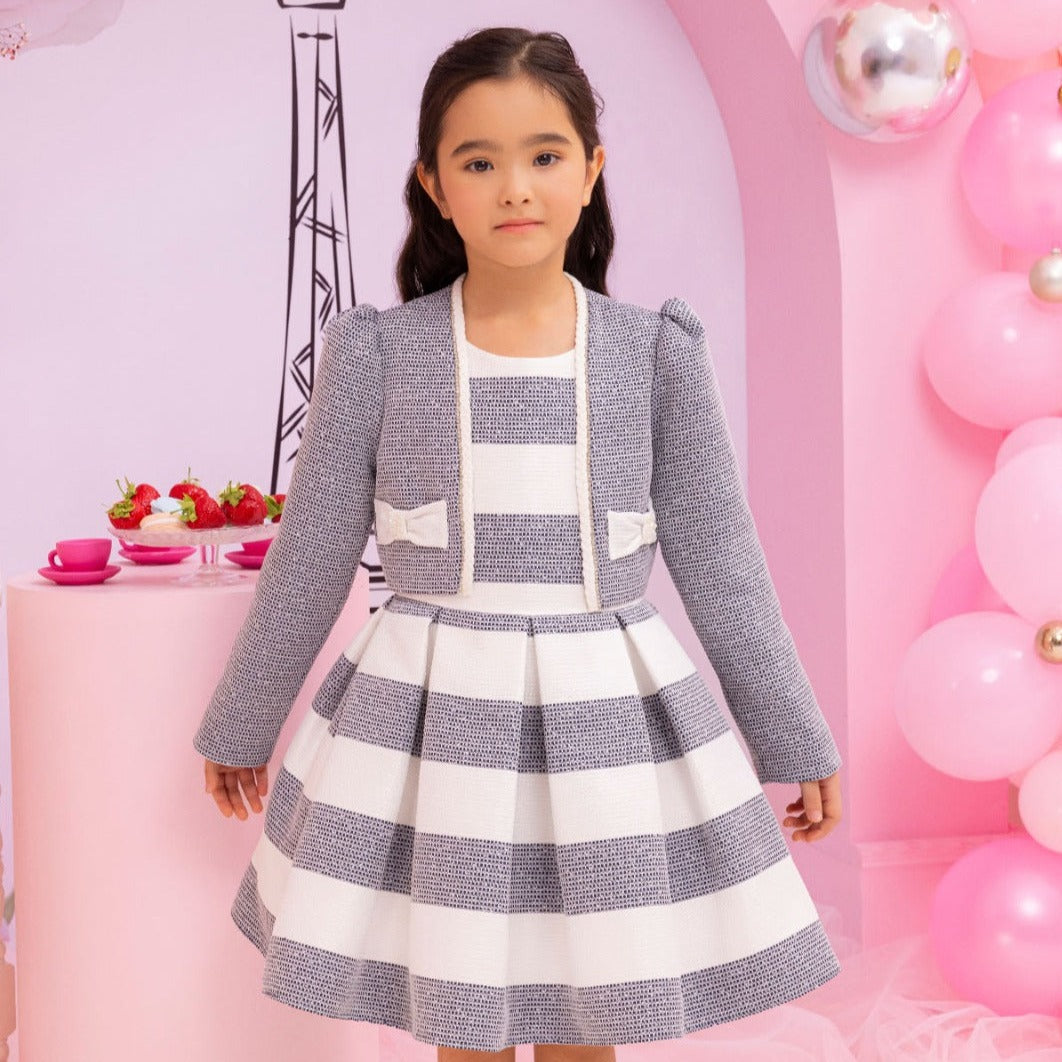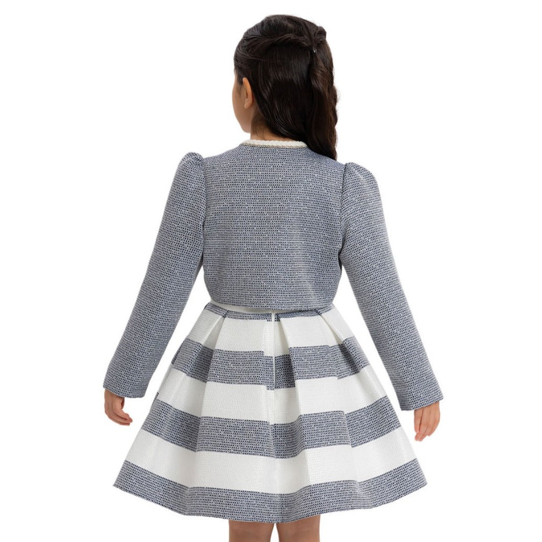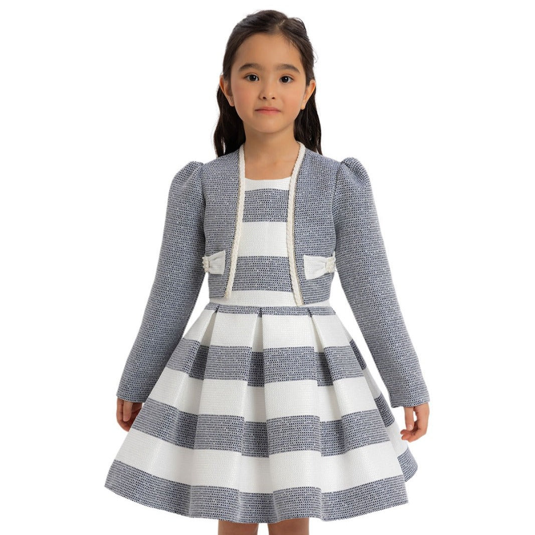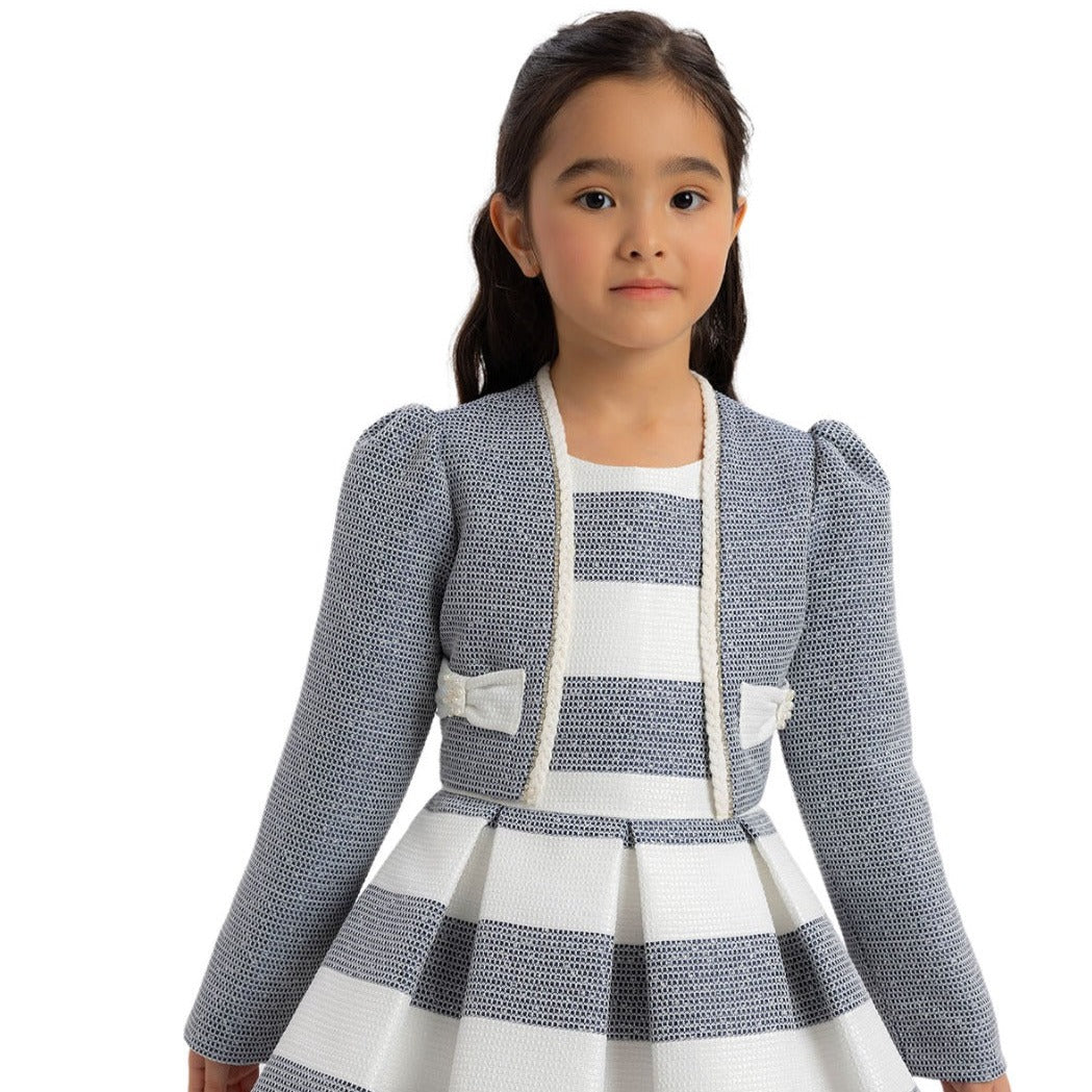 Dress your little one in style with this adorable girls' ensemble! This sleeveless short dress is made with cotton lining for a comfortable fit and comes with a matching blazer, creating the perfect outfit for any special occasion. The charming design and coordinated accessories make it a delightful choice for your fashionable princess. Attend any special occasion in style, thanks to JuniorKids!
