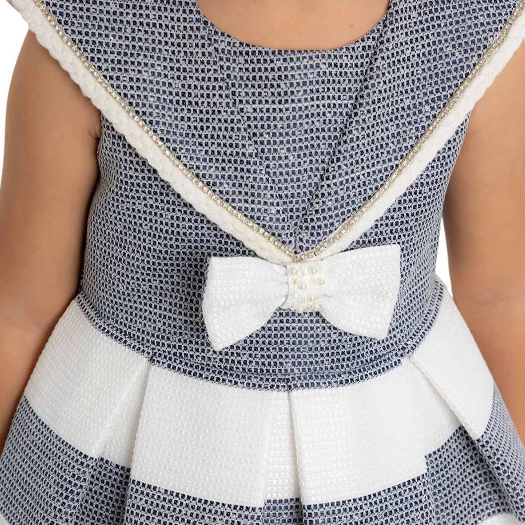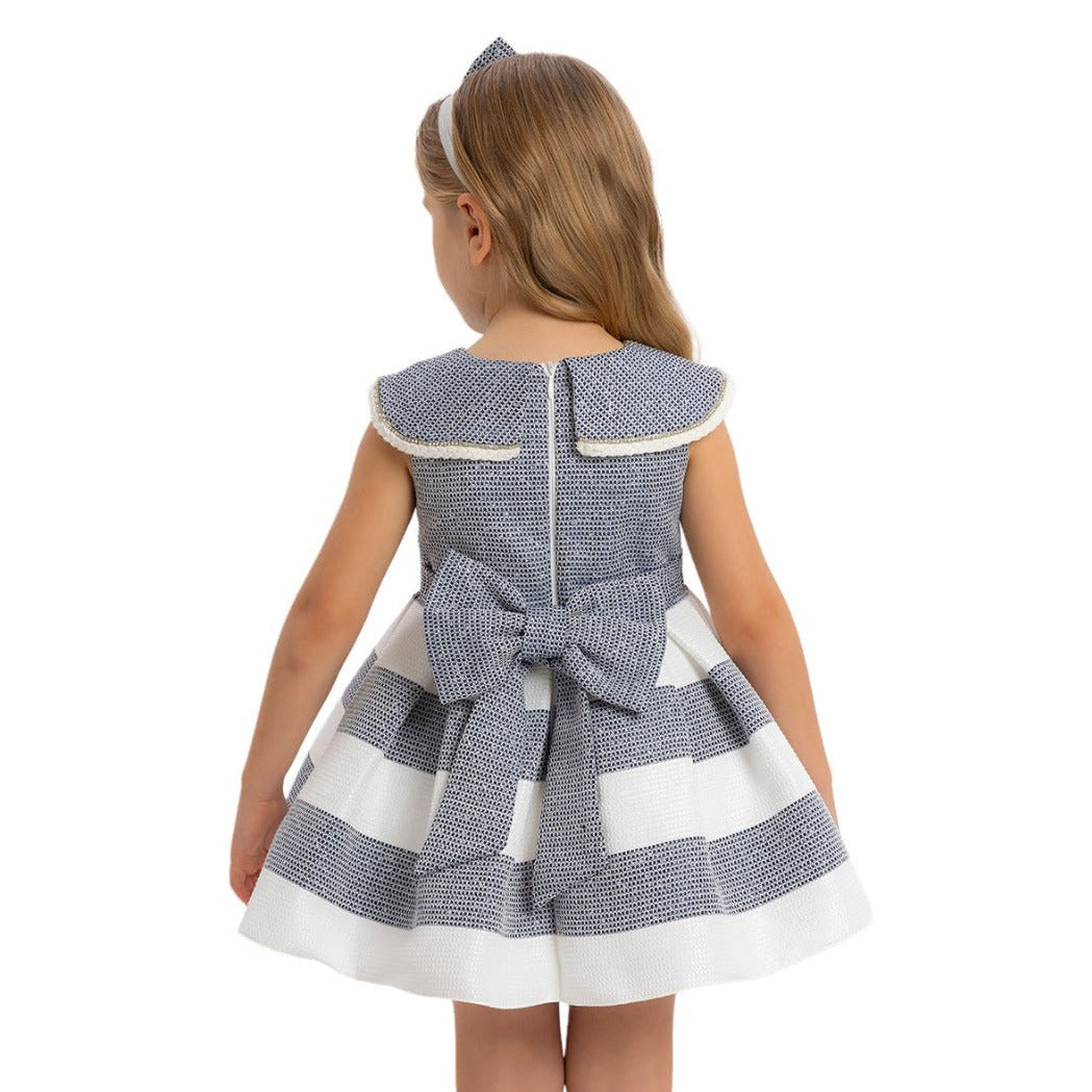 Transform your little one's look with our stunning A-line dress. This sleeveless gem showcases a lovely matching bow on the front, bringing a touch of charm to the outfit. And for the perfect finish, there's a matching bow on the back to add a delightful flair. With soft cotton lining and jacquard fabric, this dress exudes elegance and grace.