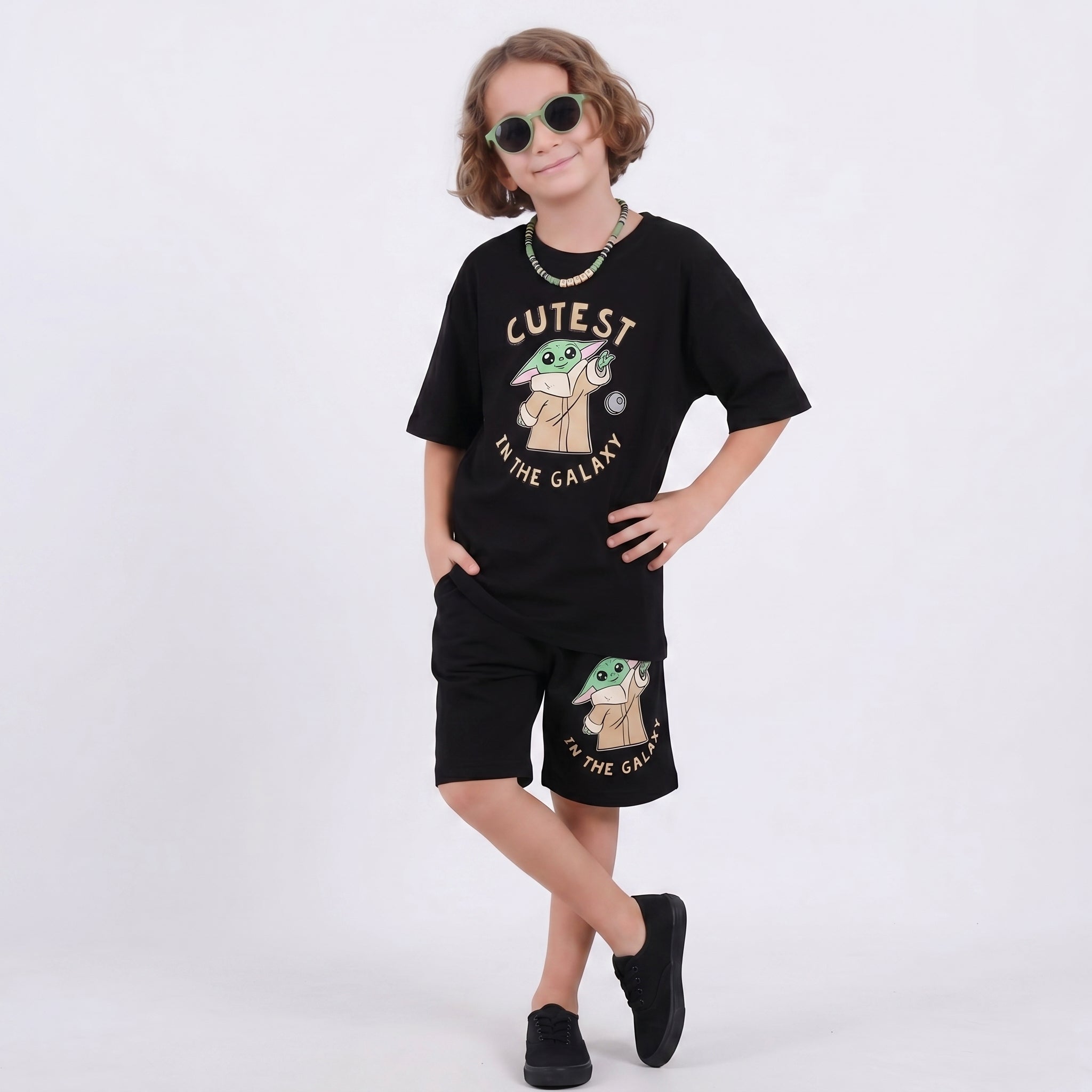 This 4-piece boys’ outfit set delivers a stylish layered look that’s perfect for both casual days and special occasions. It includes a printed T-shirt, a button-down shirt, a varsity-style cardigan, and a pair of classic jeans. Each piece can be worn together for a polished outfit or mixed and matched for versatile everyday styling.