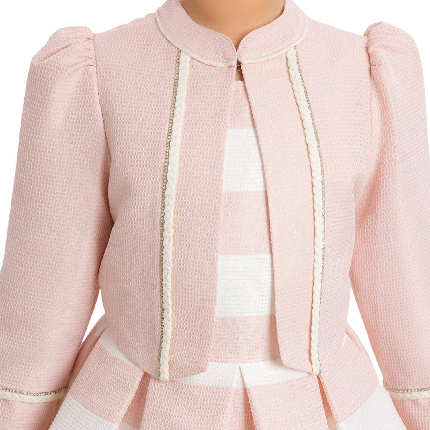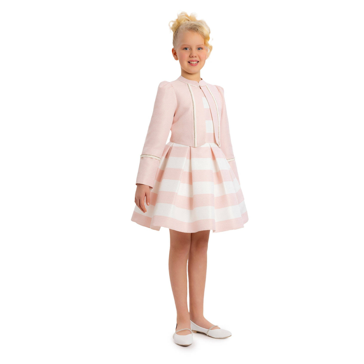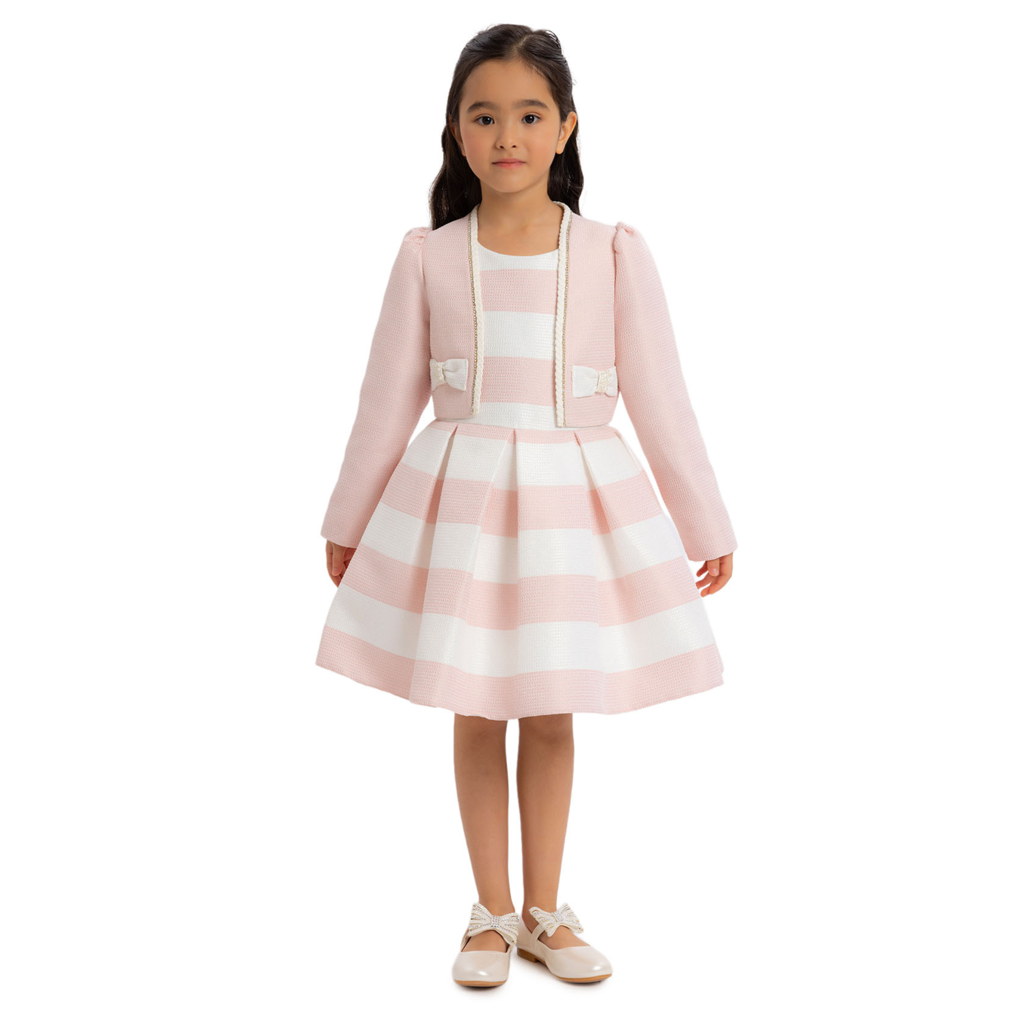 This charming girls' short dress with a matching bolero is the perfect blend of style and sophistication. The dress features a classic striped pattern that adds a modern touch, while the fitted bodice and flared skirt create a timeless silhouette. The bolero jacket provides an extra layer of elegance, making it ideal for special occasions, family gatherings, or celebrations. Crafted from high-quality materials, this dress ensures comfort and style, allowing your little one to shine with confidence.