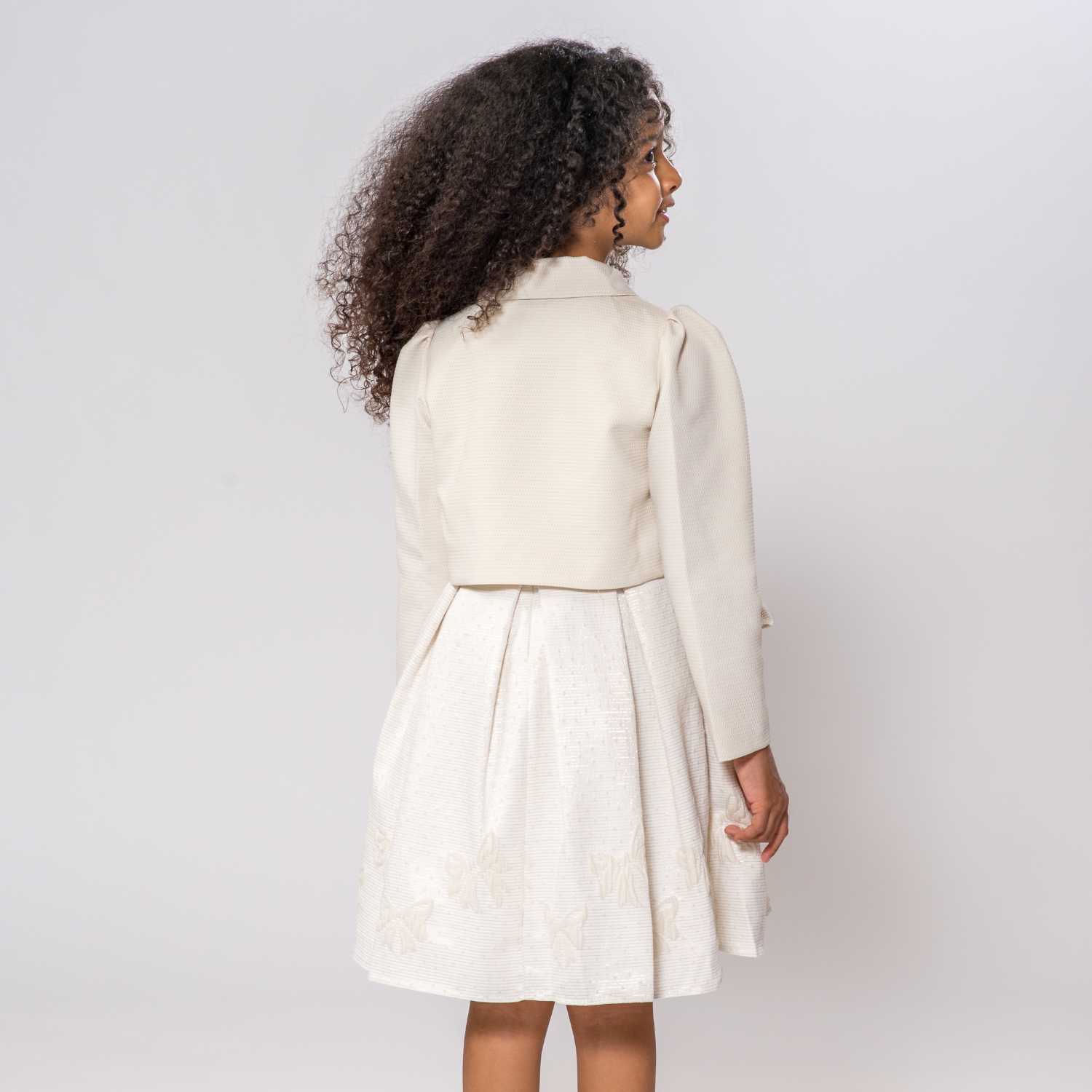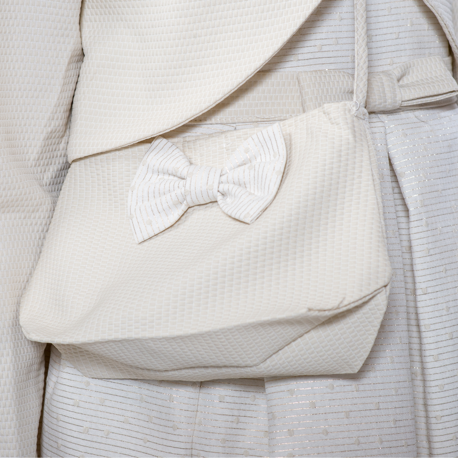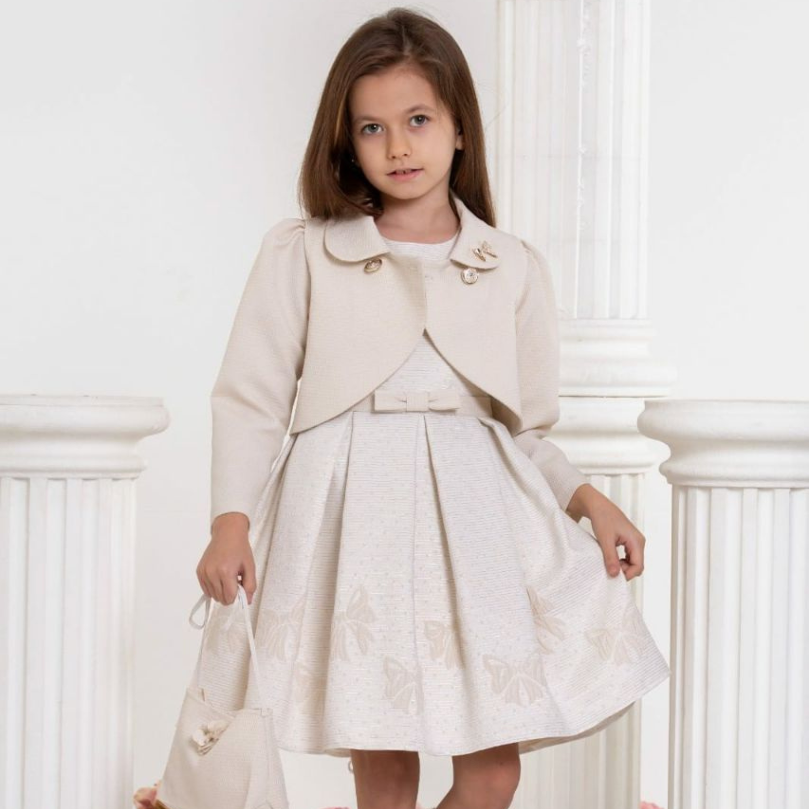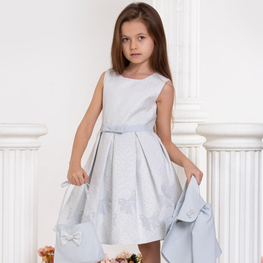 Dress your little girl in fashion with this lovely dress for girls! The dress is short and sleeveless, accompanied by a matching cross-cardigan and purse, making it perfect for any special event. The jacquard fabric and soft cotton lining provide a luxurious appearance and cozy feel.