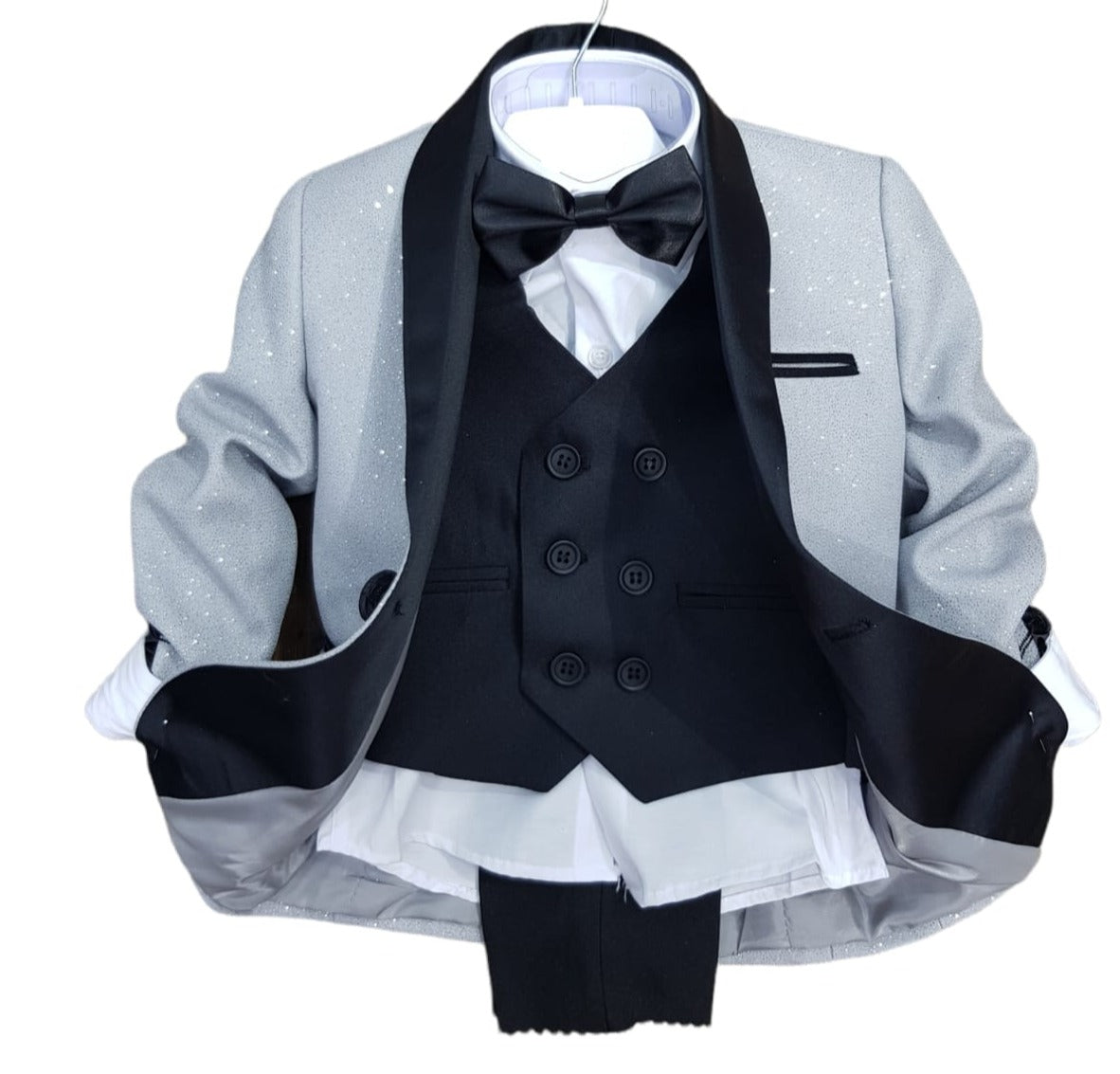Classic Bowtie: A bowtie is the ultimate finishing touch to any tuxedo, and this one adds a refined, traditional element to the look. It’s the perfect complement to the rest of the ensemble, ensuring your child is dressed to impress.