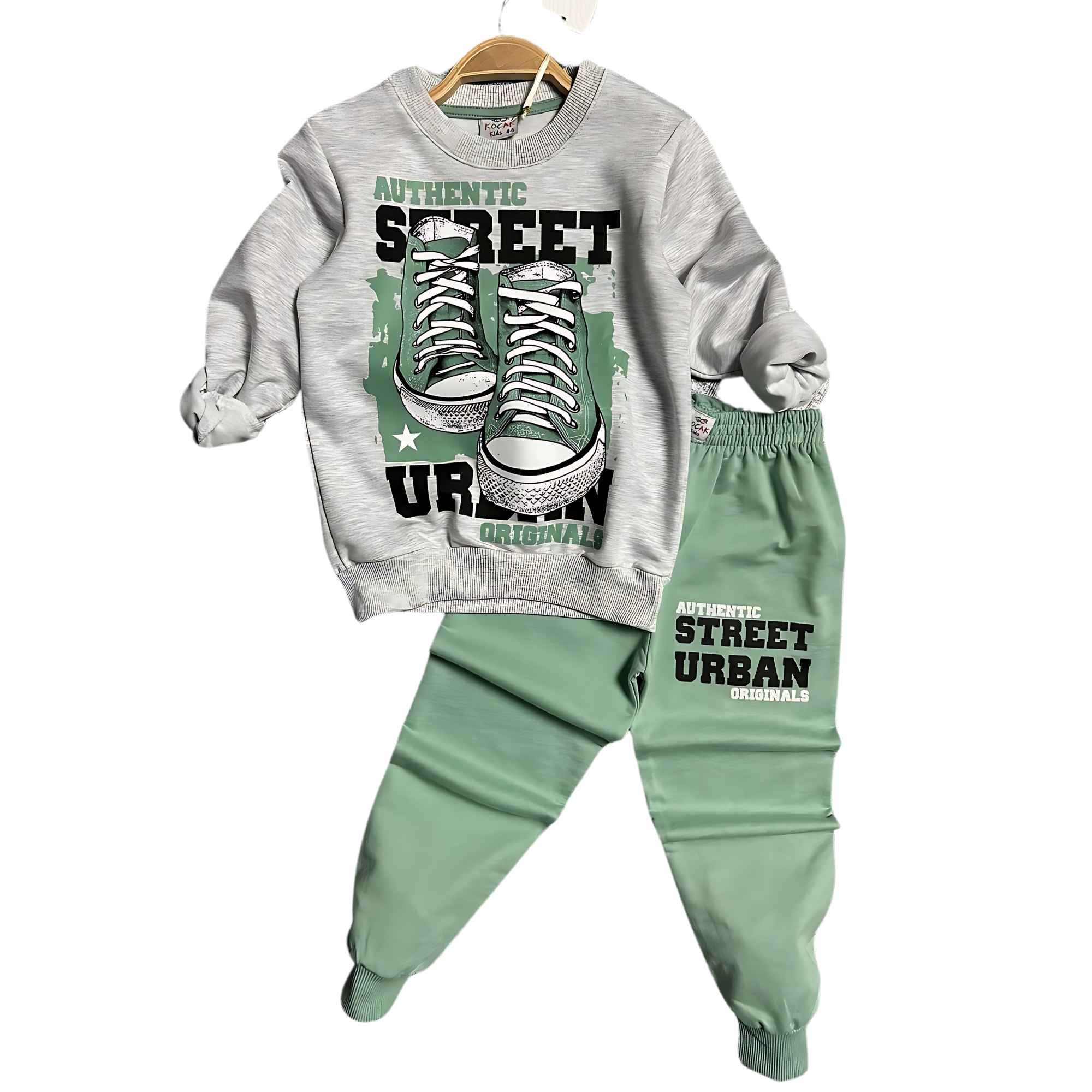 Get cozy and stylish with this boys' set of 100% soft cotton sweater and matching joggers! Perfect for everyday wear, this set offers both comfort and fun for your little one.