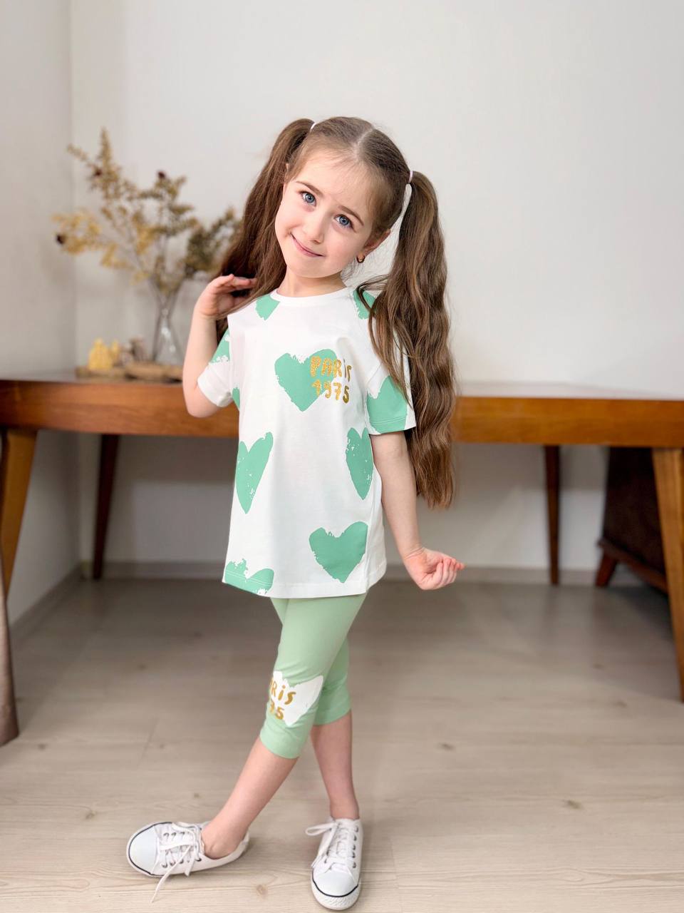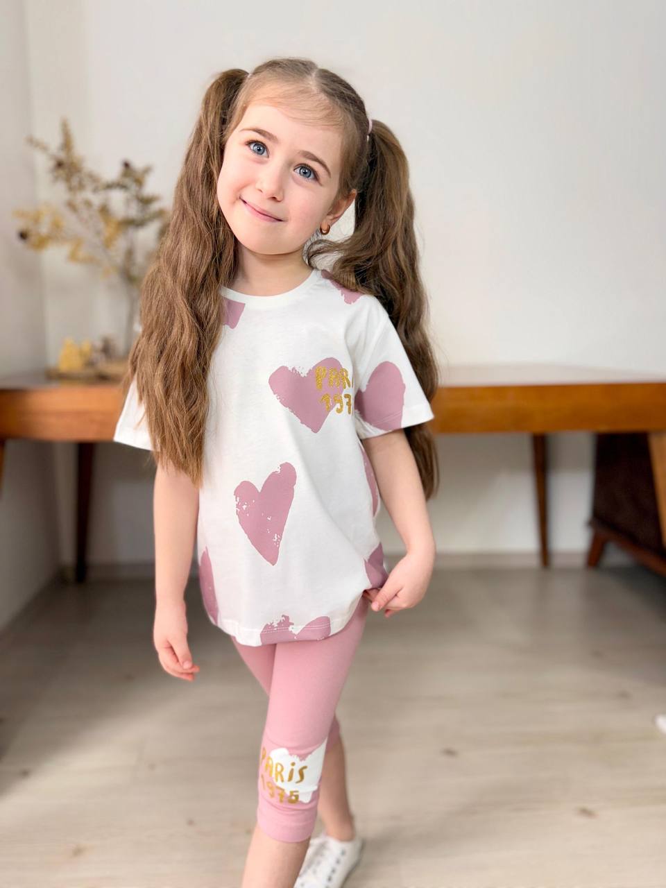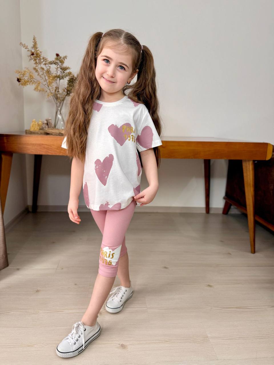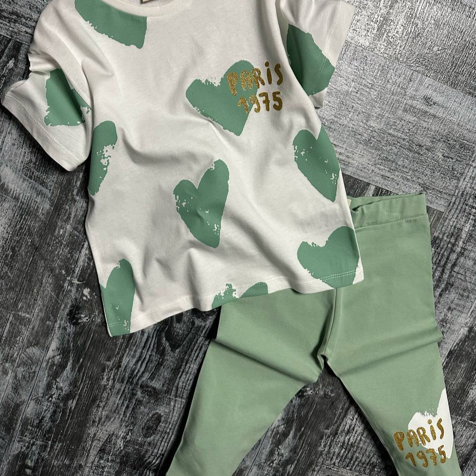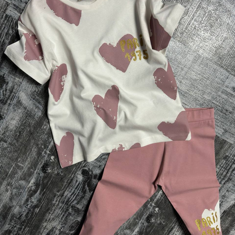 Experience the ultimate outdoor adventure with this stylish summer set, featuring a soft cotton hearts-printed top (100% Cotton) and cool cotton leggings (100% Cotton)! Perfect for all your fun in the sun activities!