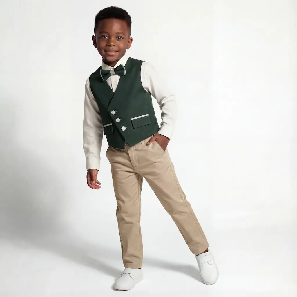 Comfortable and Durable Materials: With a blend of 68% polyester and 32% viscose, the fabric offers a durable, smooth finish that resists wrinkles, ensuring your child looks immaculate throughout the event. The 80% cotton / 20% polyester shirt is breathable and comfortable, perfect for long hours of wear.