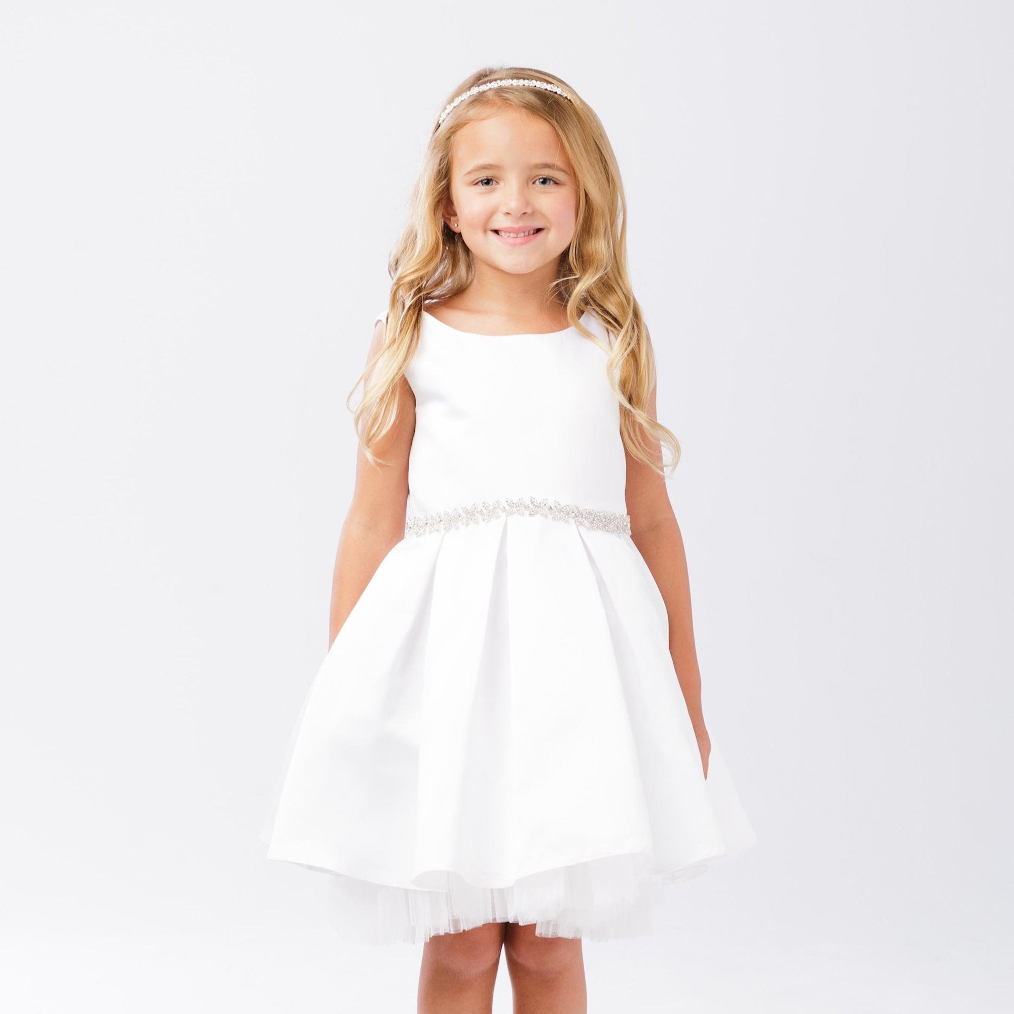 Elevate her style with this stunning satin dress, designed for elegance and comfort. Featuring a beautifully pleated skirt with a delicate tulle hem, this dress offers a timeless, graceful silhouette. The sparkling rhinestone star sash adds a touch of glamour, making it perfect for any special occasion. And the best part? It comes with pockets—because style should always meet practicality. Whether for a celebration, a party, or a cherished moment, this dress is sure to make her shine!